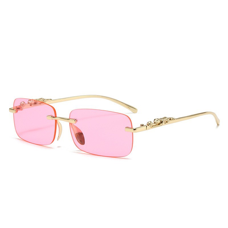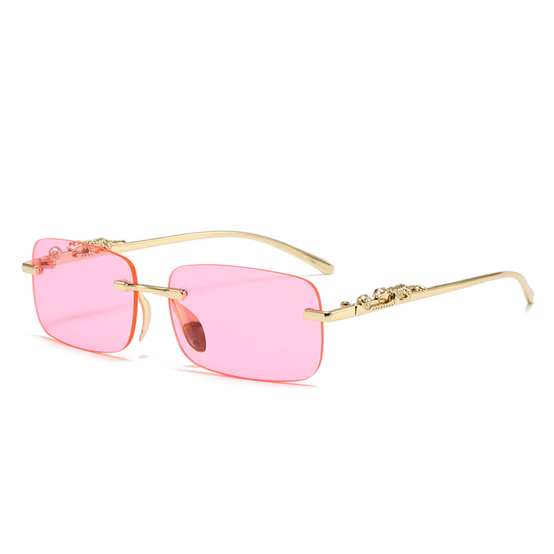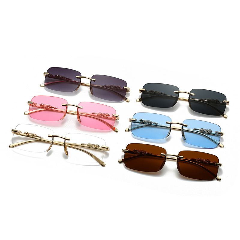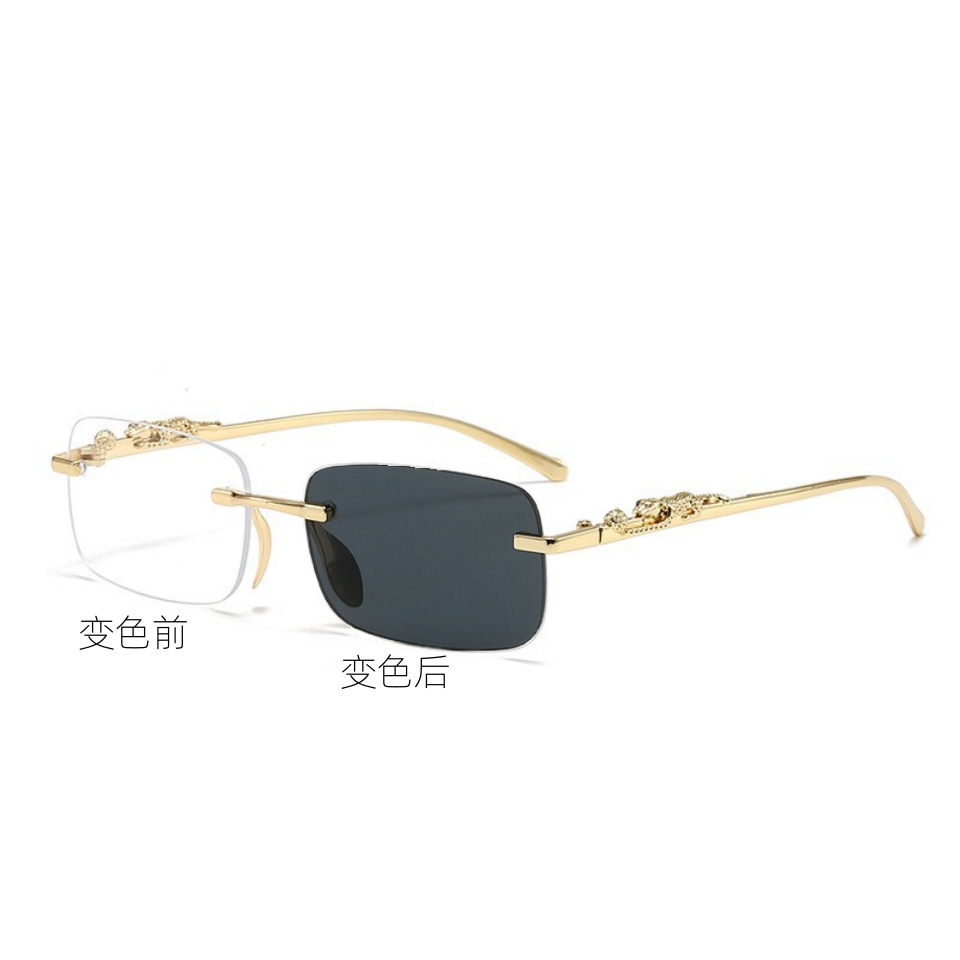 금속 림리스 안경 맞춤형 치타 트림 선글라스 컬러 렌즈 레트로 선글라스 색상 변경 선글라스