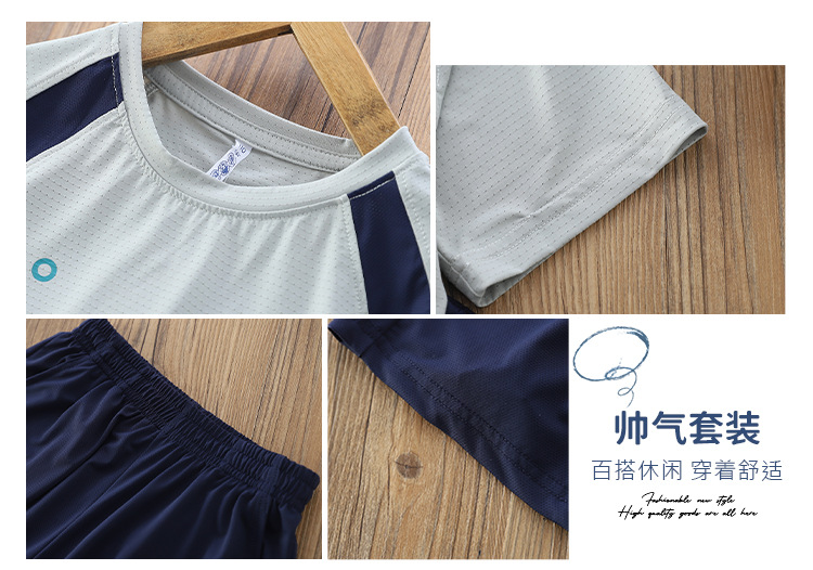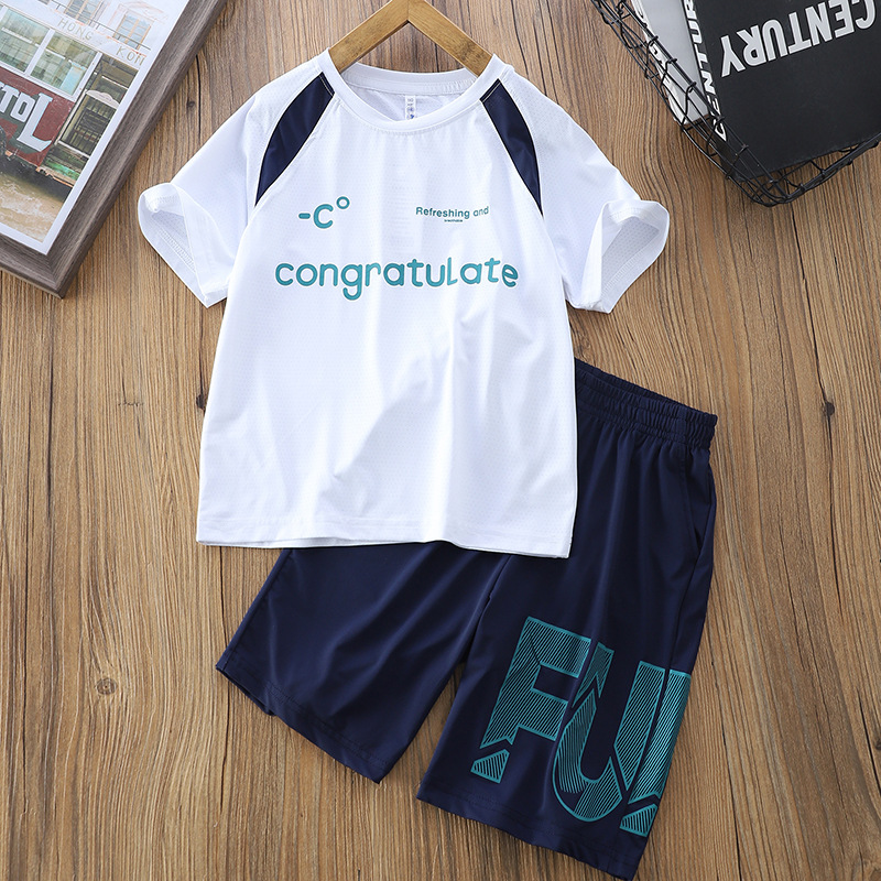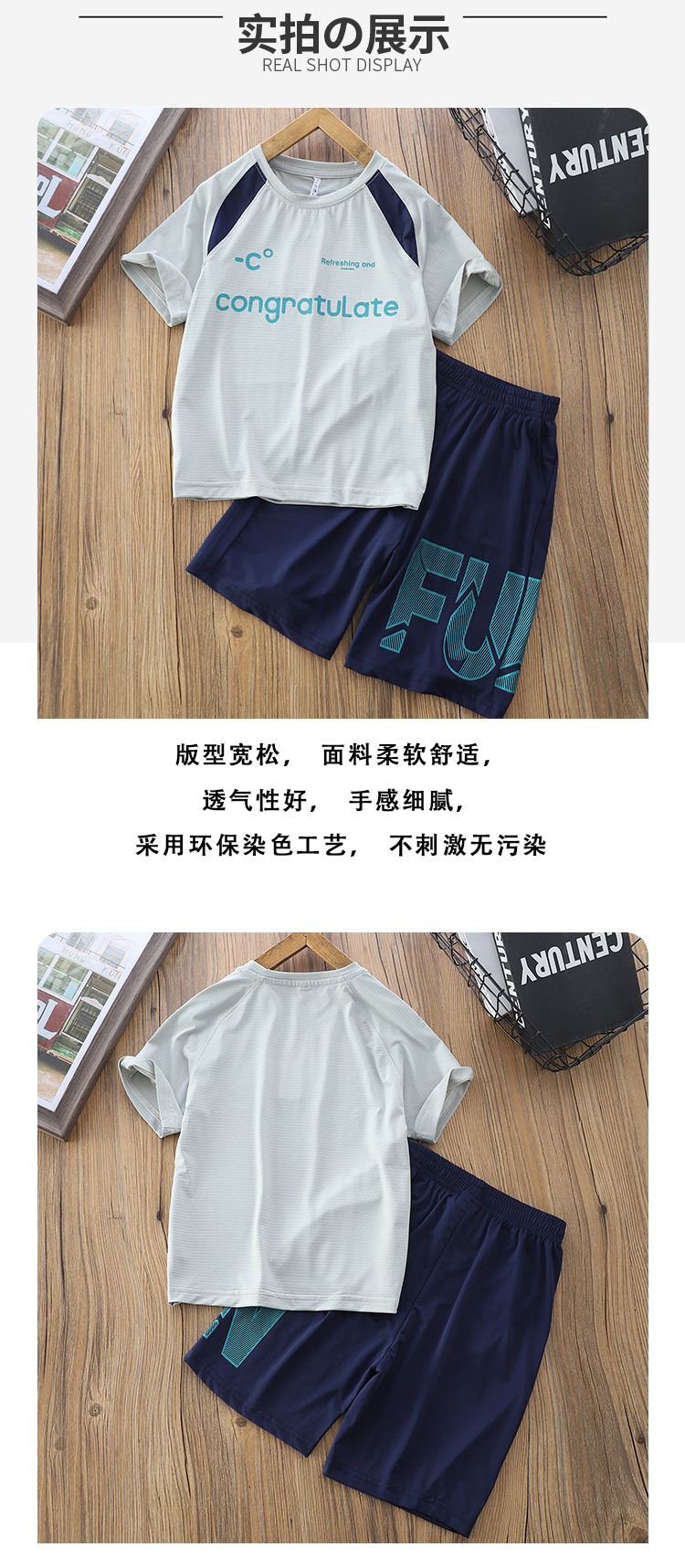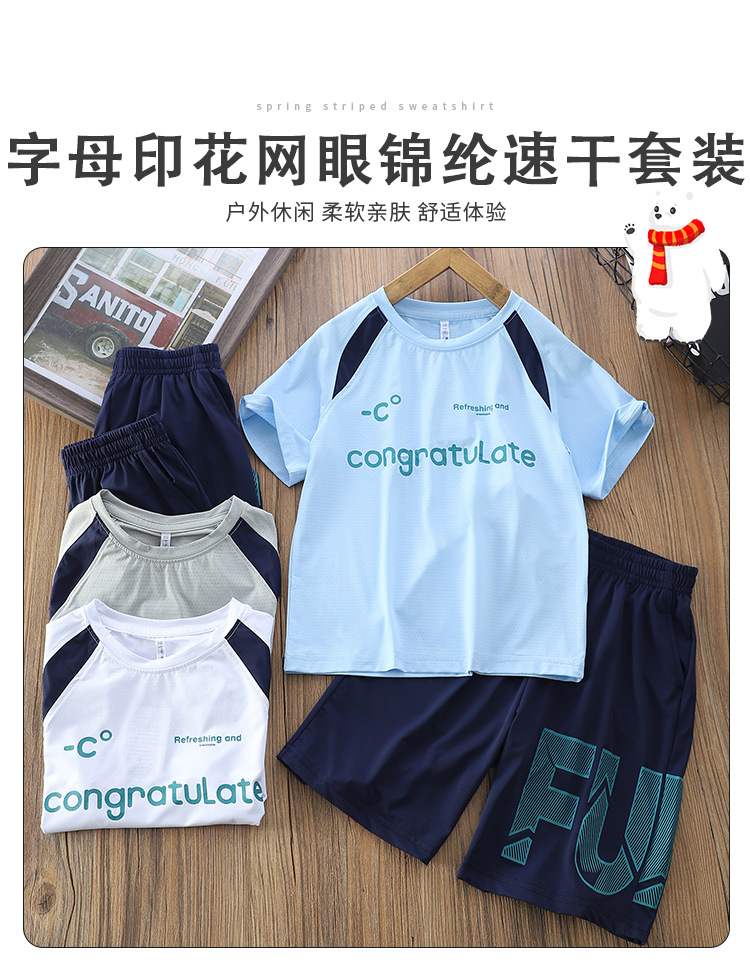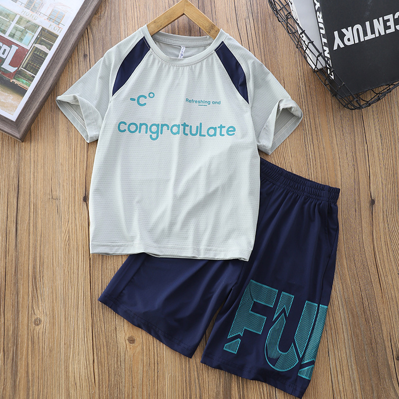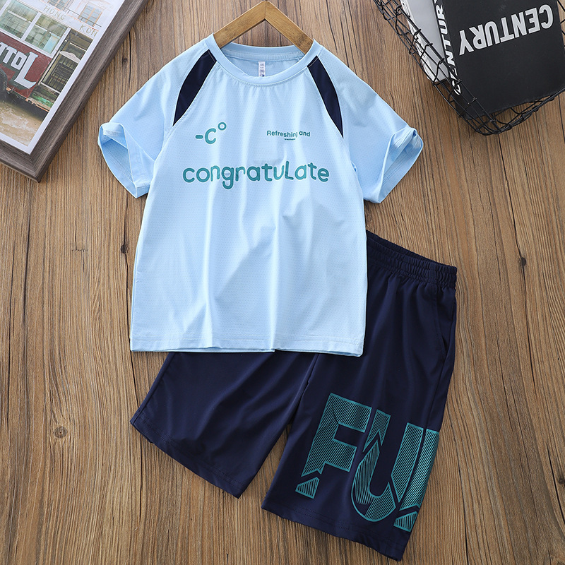 어린이 속건성 정장 2025 여름 새 소년 얼음 실크 반팔 반바지 투피스 세트 유행 스포츠 정장 유행스토어 가기