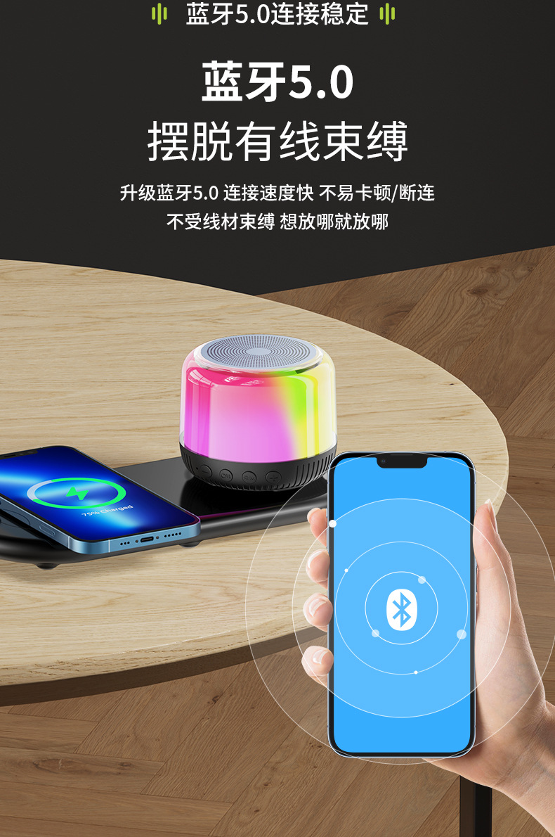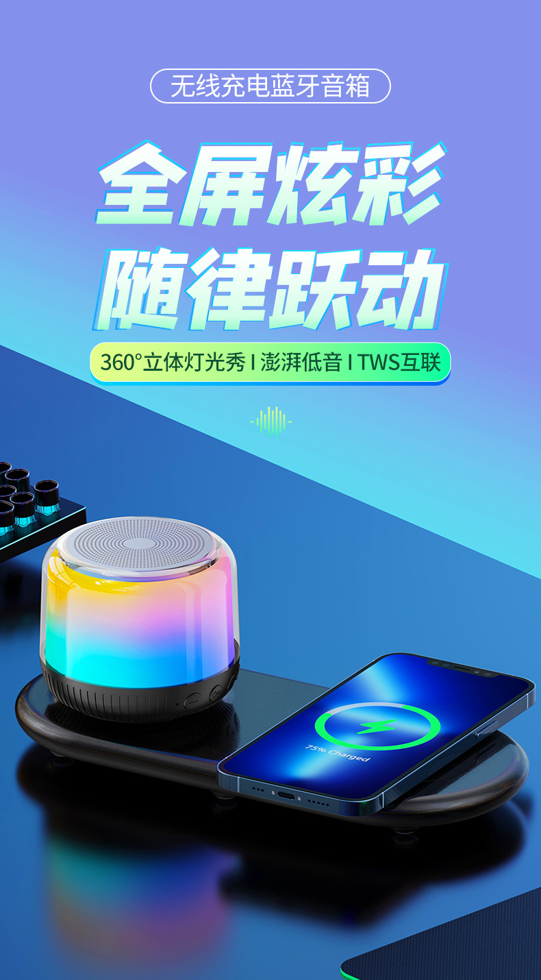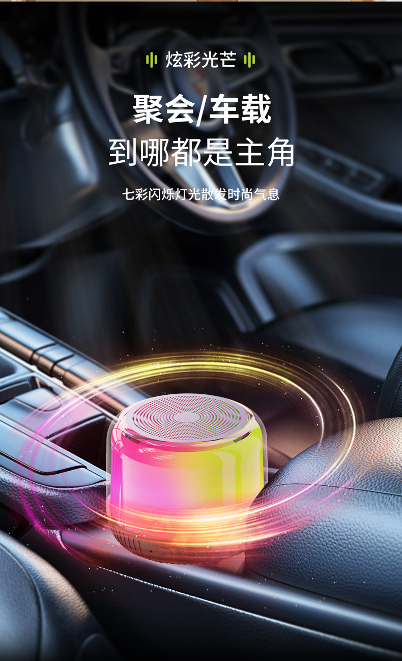 새로운 다기능 블루투스 스피커, 창의적인 선물, 화려한 분위기 조명, 무선 충전, 카드 삽입, 가정 및 차량용 오디오스토어 가기