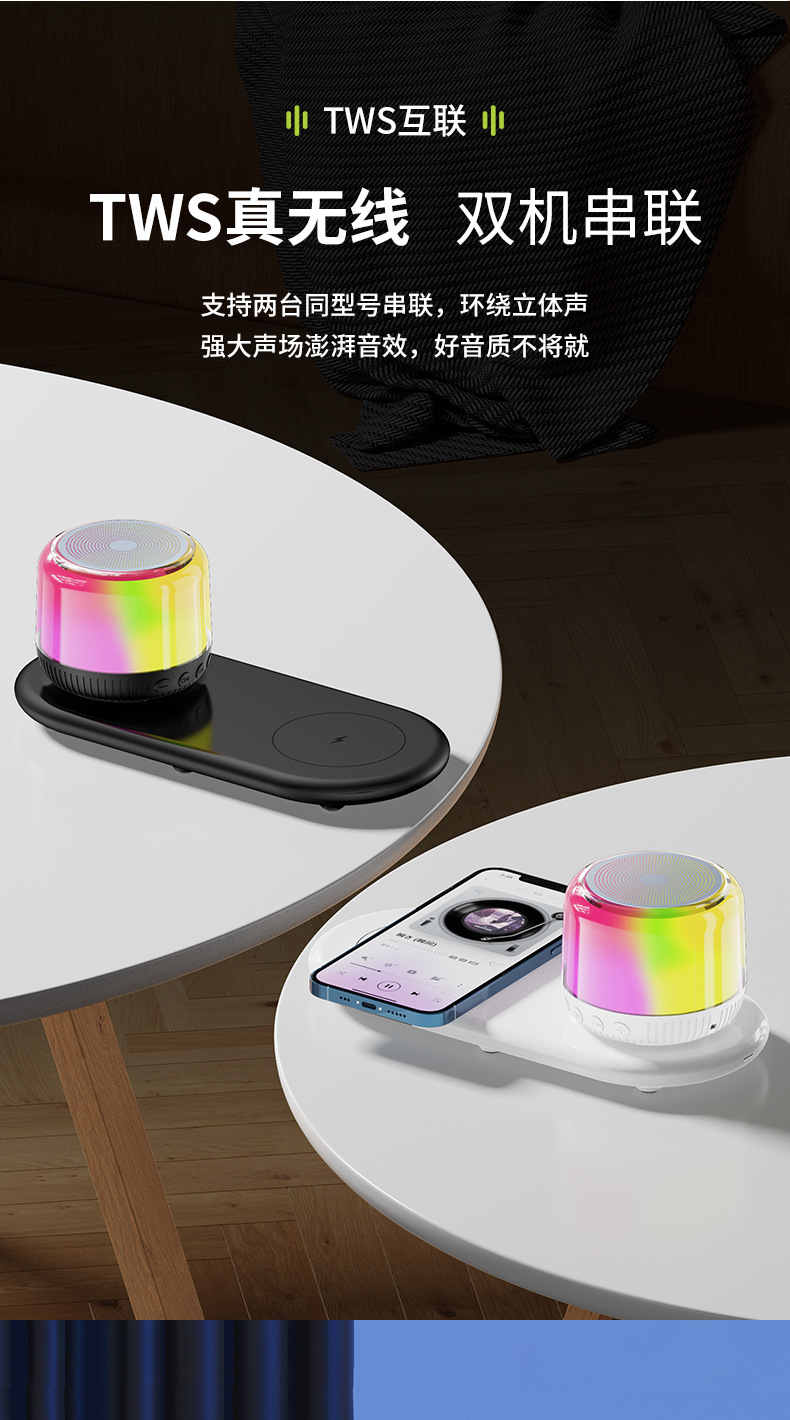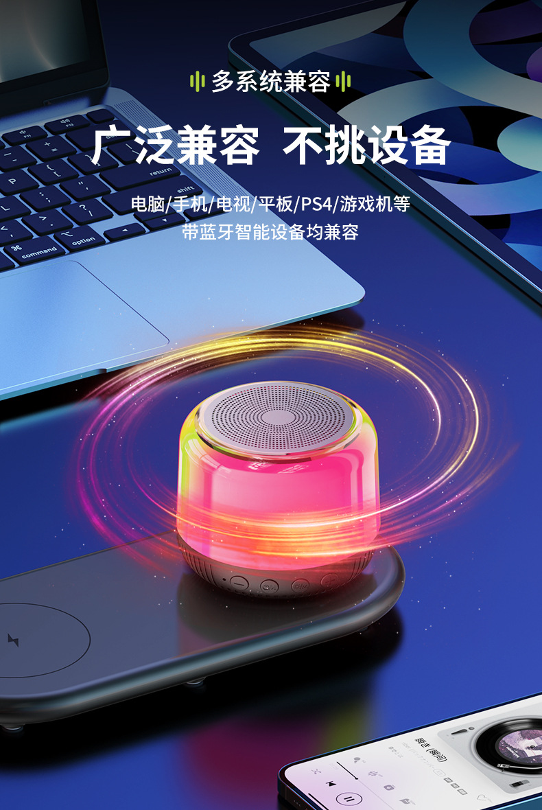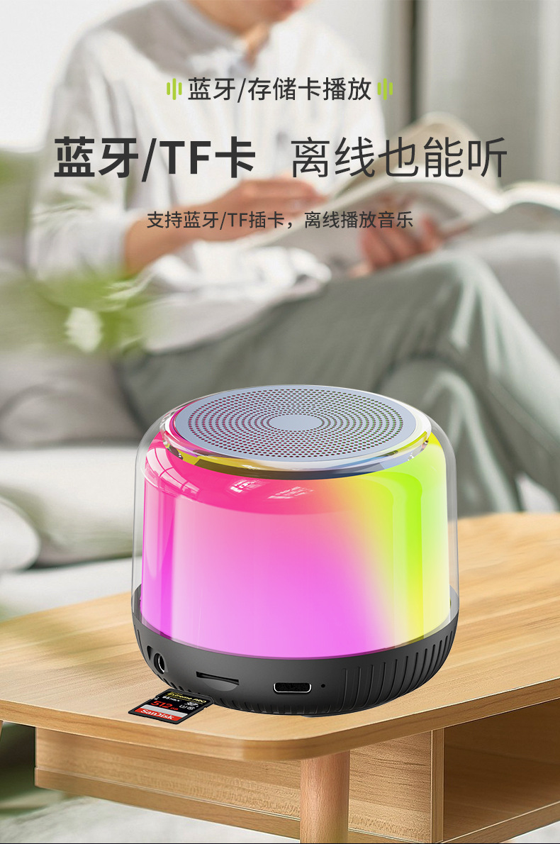 새로운 다기능 블루투스 스피커, 창의적인 선물, 화려한 분위기 조명, 무선 충전, 카드 삽입, 가정 및 차량용 오디오