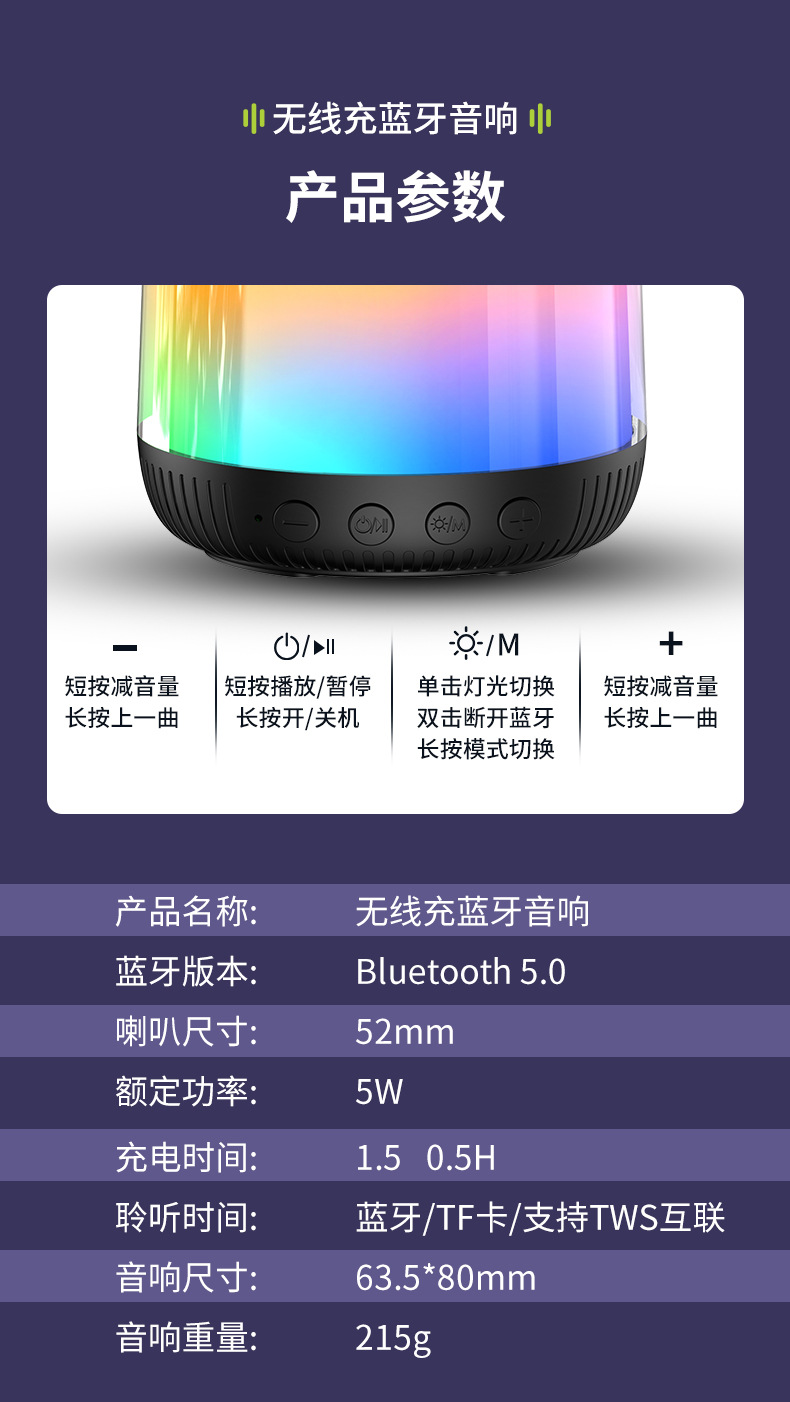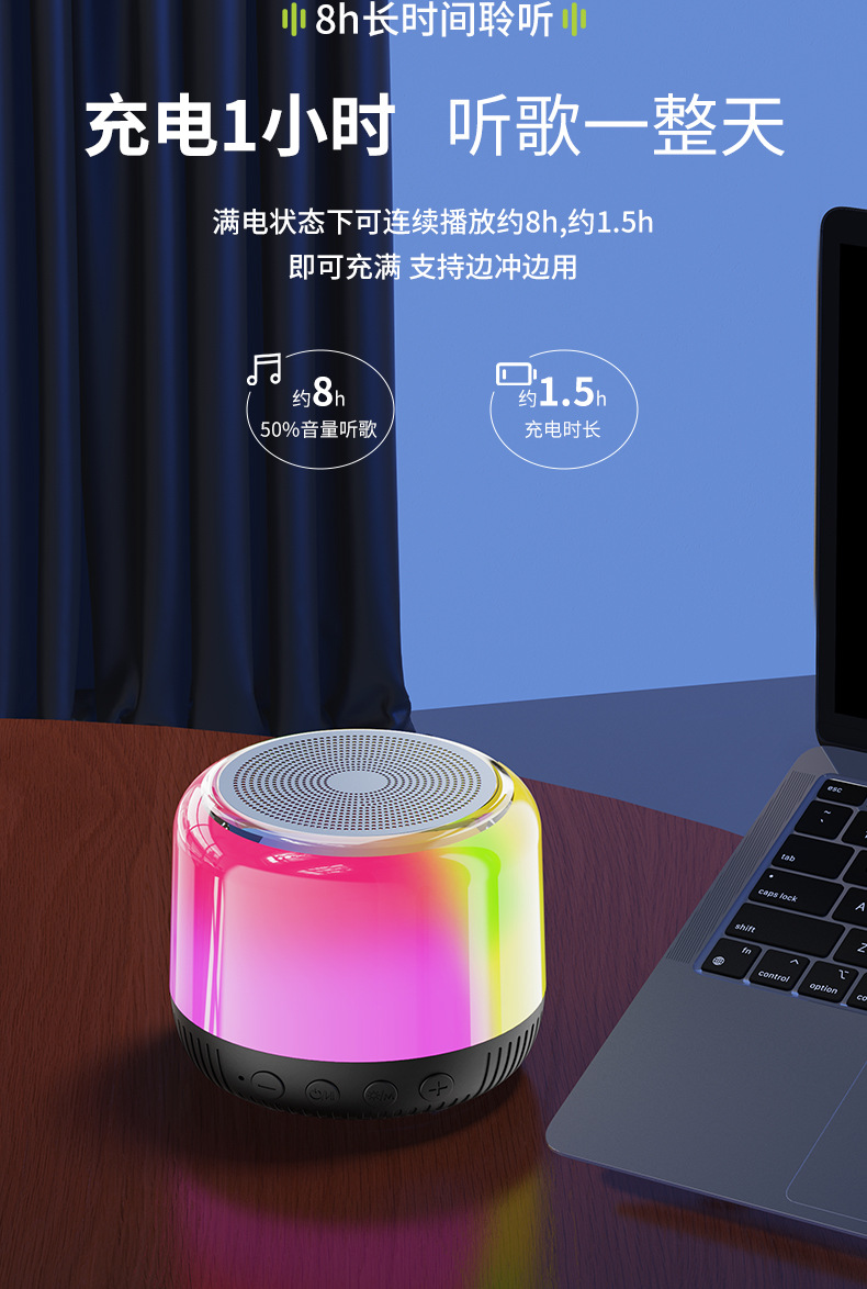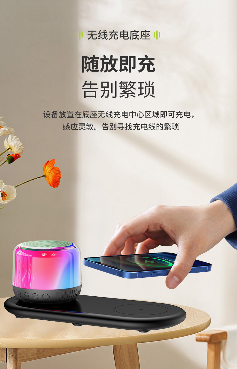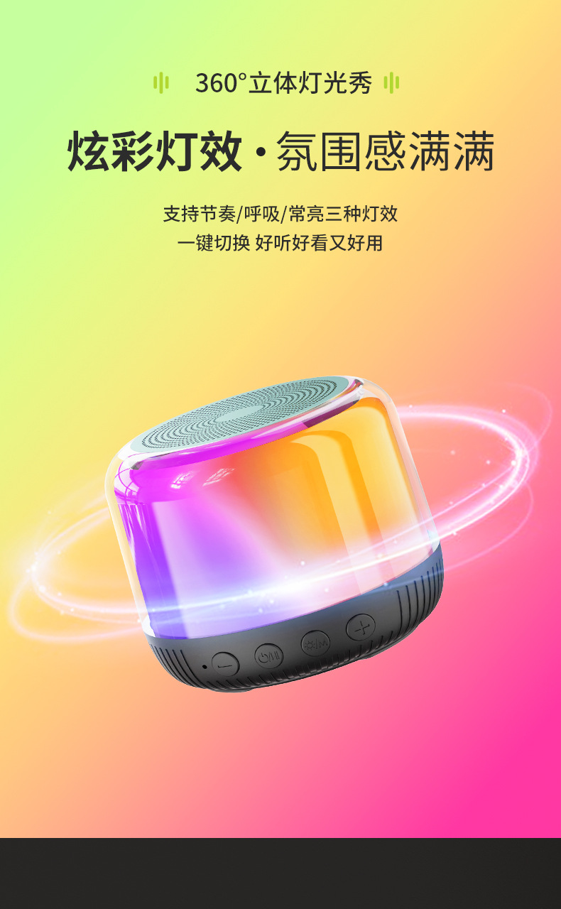 새로운 다기능 블루투스 스피커, 창의적인 선물, 화려한 분위기 조명, 무선 충전, 카드 삽입, 가정 및 차량용 오디오