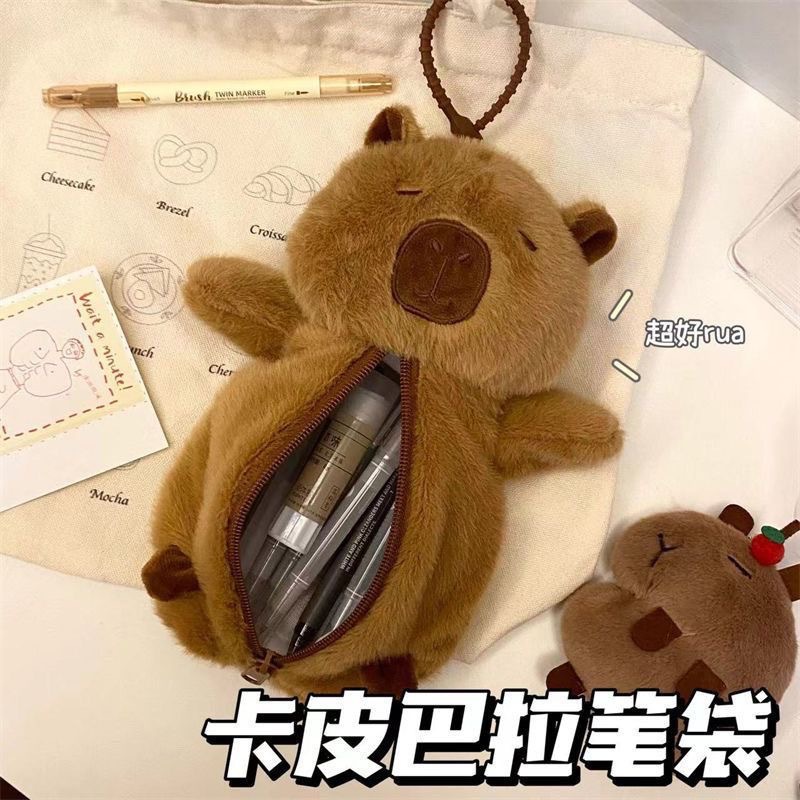 귀여운 만화 Capibala 플러시 연필 가방 작은 Capybara 인형 학생 데스크탑 스토리지 연필 가방 생일 선물
