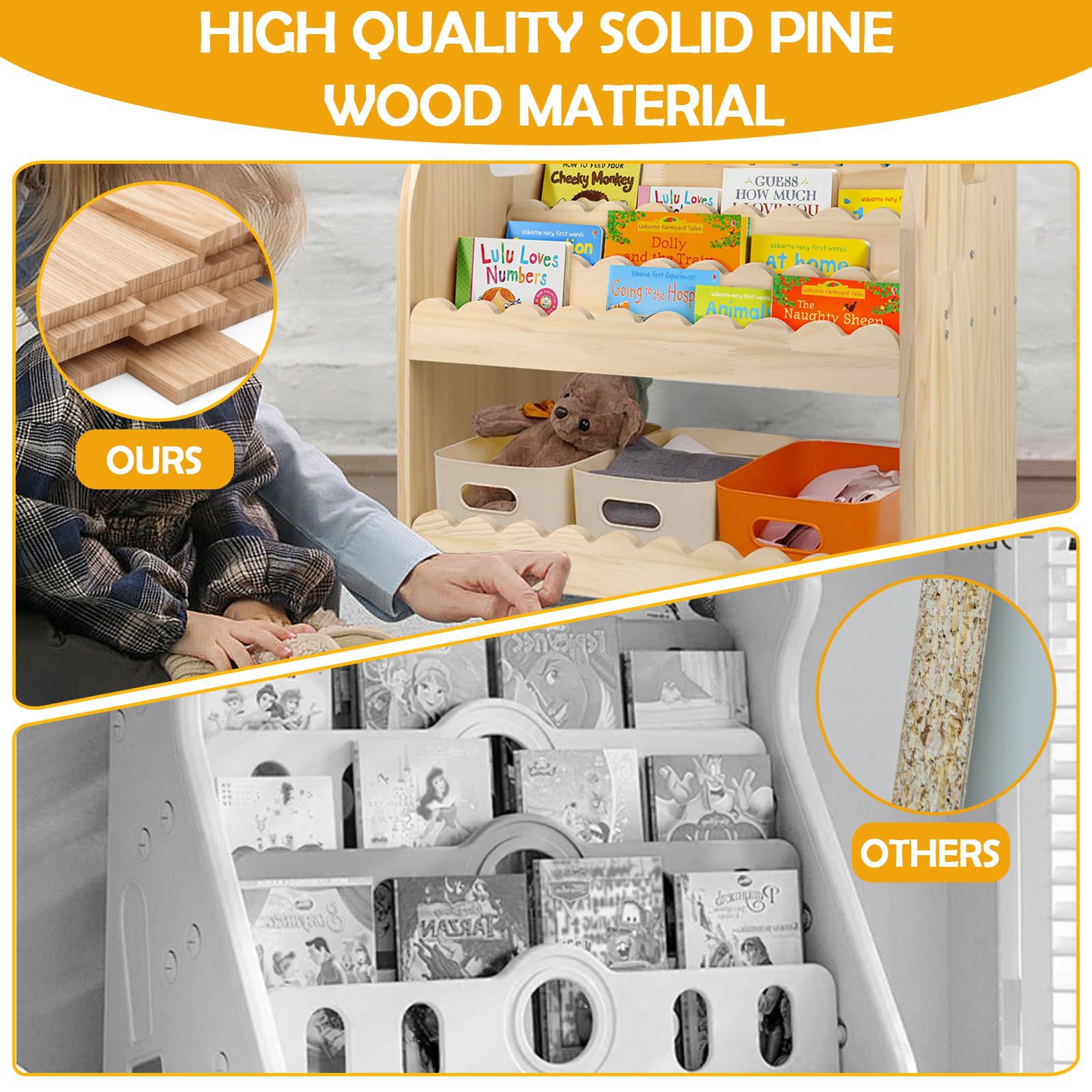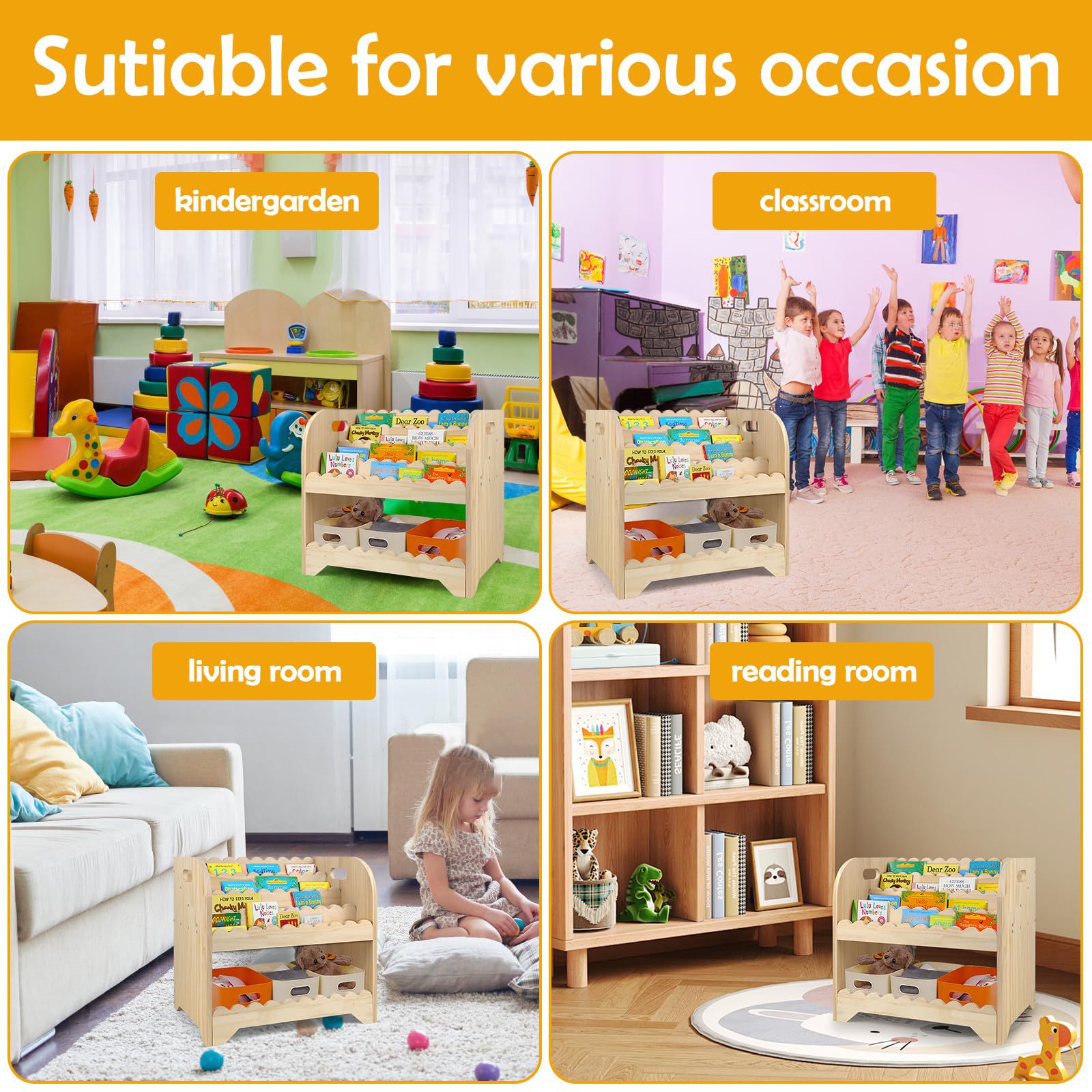 나무 아기 장난감 도서 보관함 바닥에 서 있는 어린이 집 그림책 선반 독서 공간 신문 및 잡지 책장