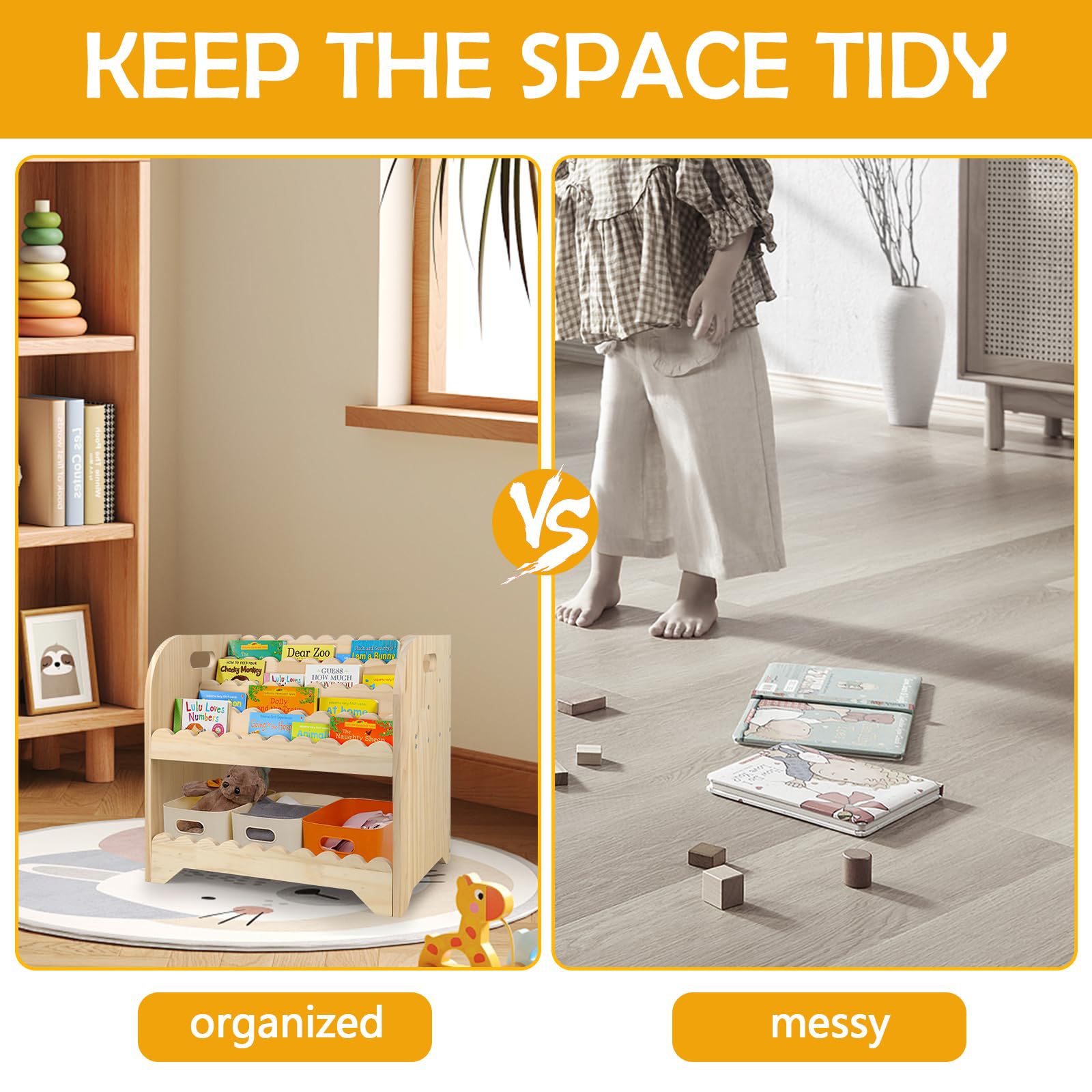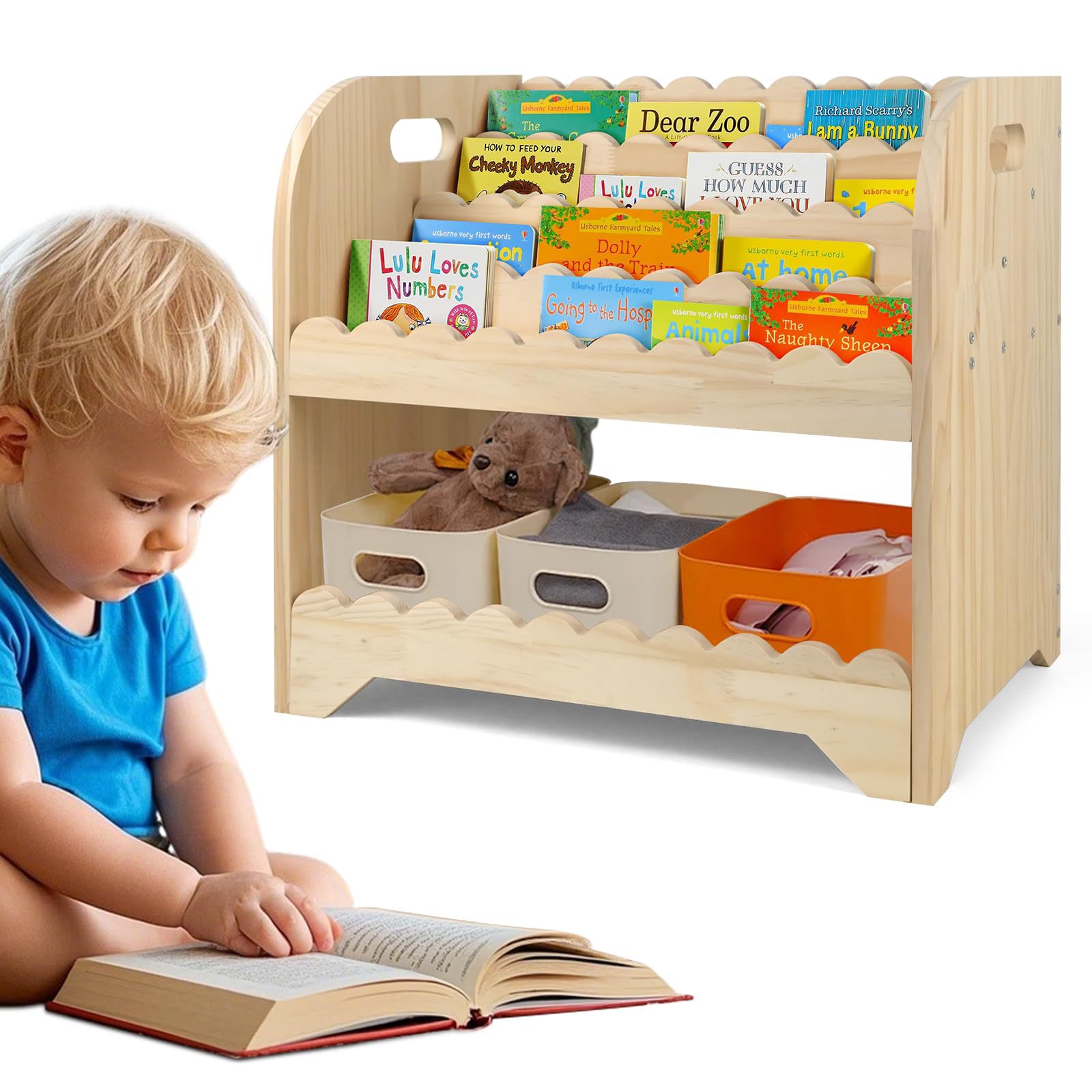나무 아기 장난감 도서 보관함 바닥에 서 있는 어린이 집 그림책 선반 독서 공간 신문 및 잡지 책장스토어 가기