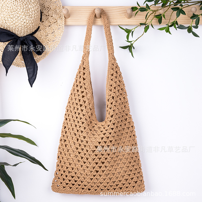 새로운 스타일의 중공 면사 짠 가방, 트렌디한 크로스보더 대용량 숄더 밀짚 가방, 여행용 다용도 해변 겨드랑이 가방