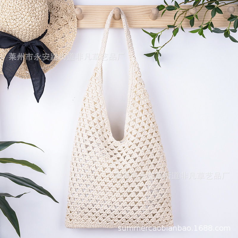 새로운 스타일의 중공 면사 짠 가방, 트렌디한 크로스보더 대용량 숄더 밀짚 가방, 여행용 다용도 해변 겨드랑이 가방스토어 가기