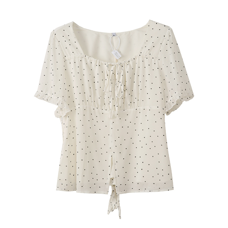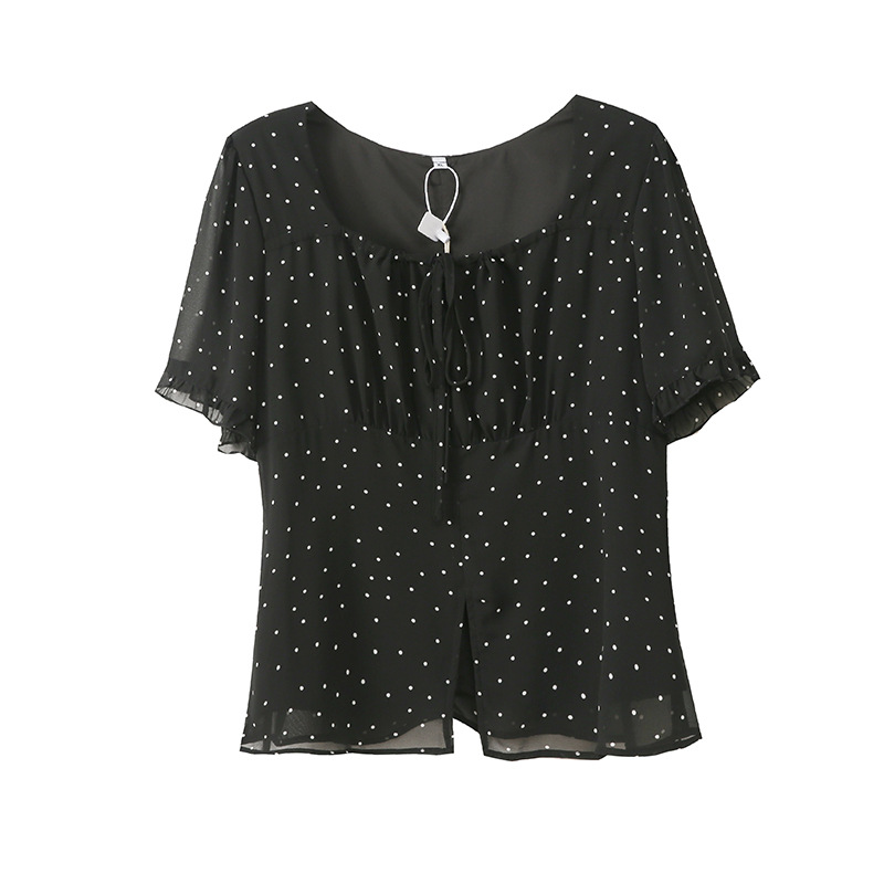 통통녀 달콤한 틈새 디자인 센스 나이 감소 시폰 셔츠 여성의 2025 년 여름 뉴 웨이브 포인트 쿨 탑 242368