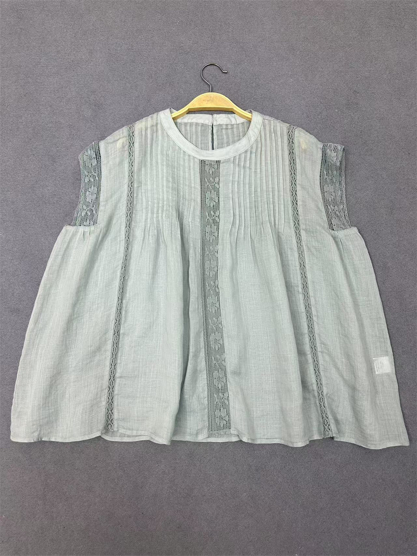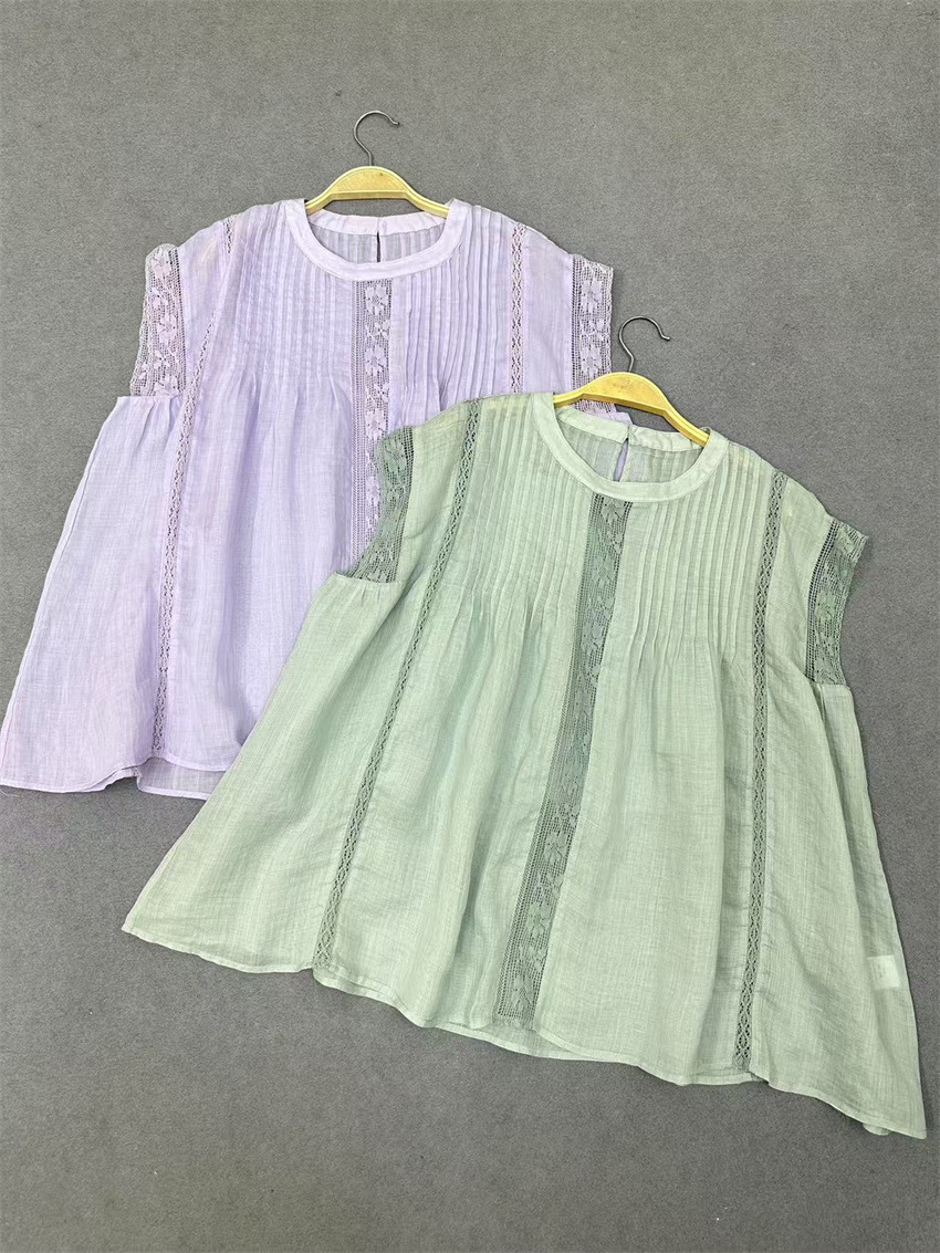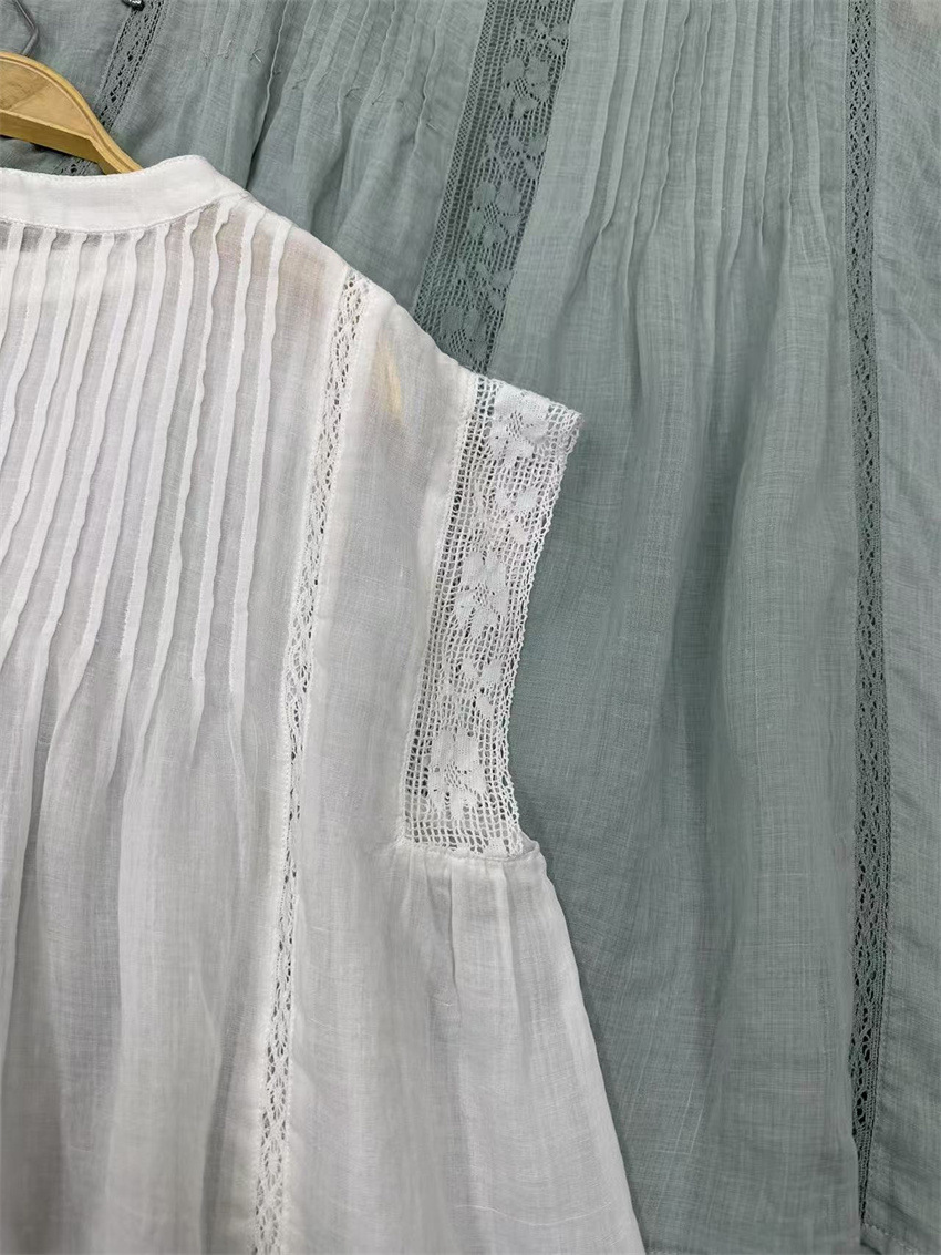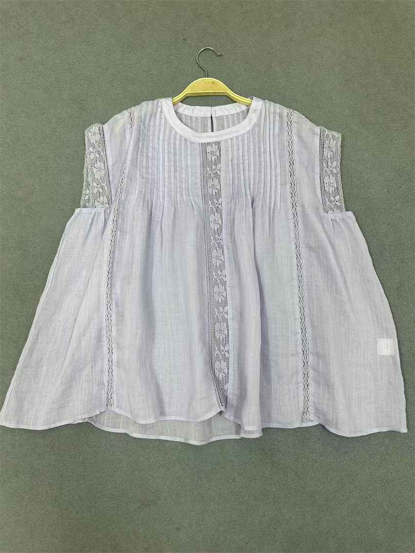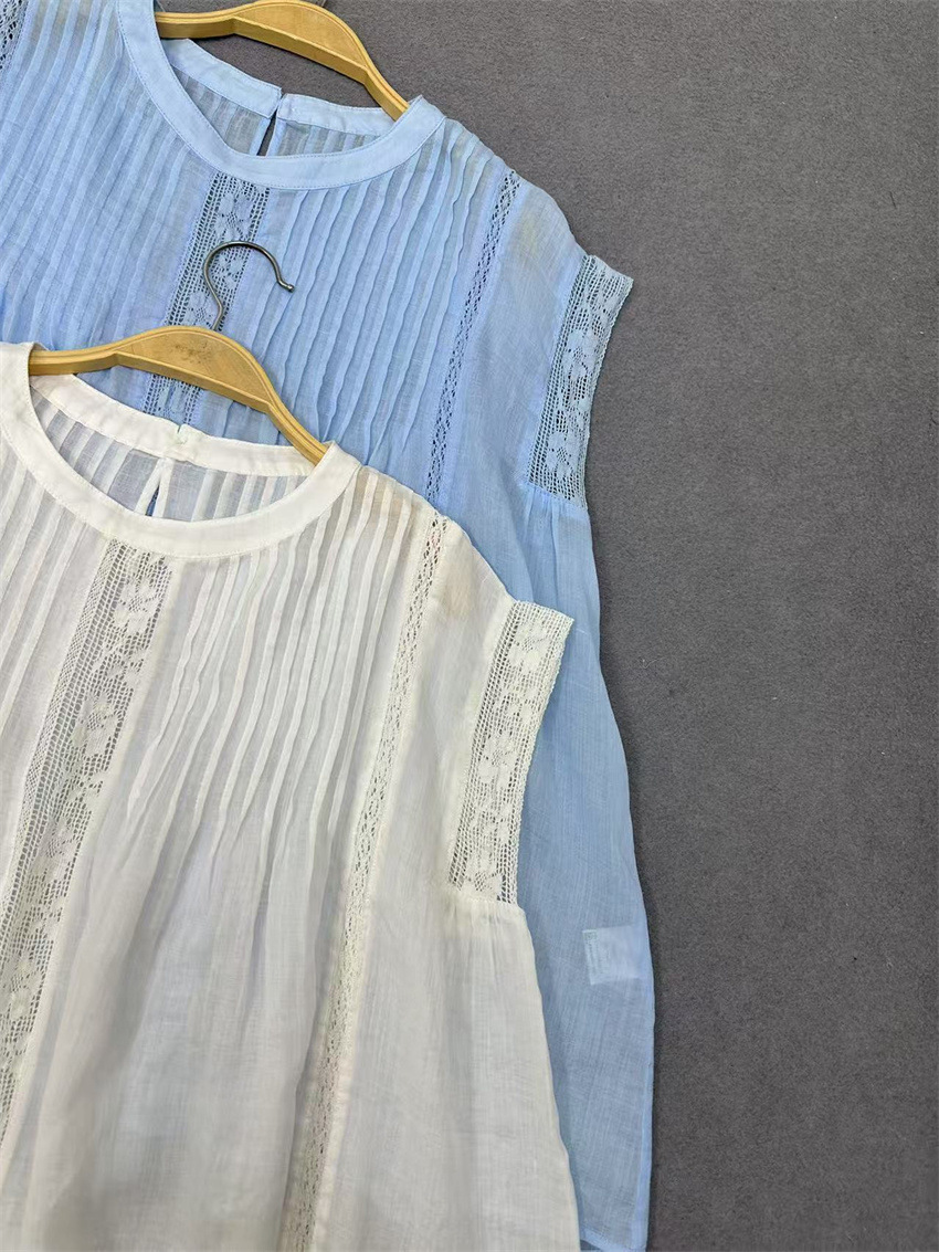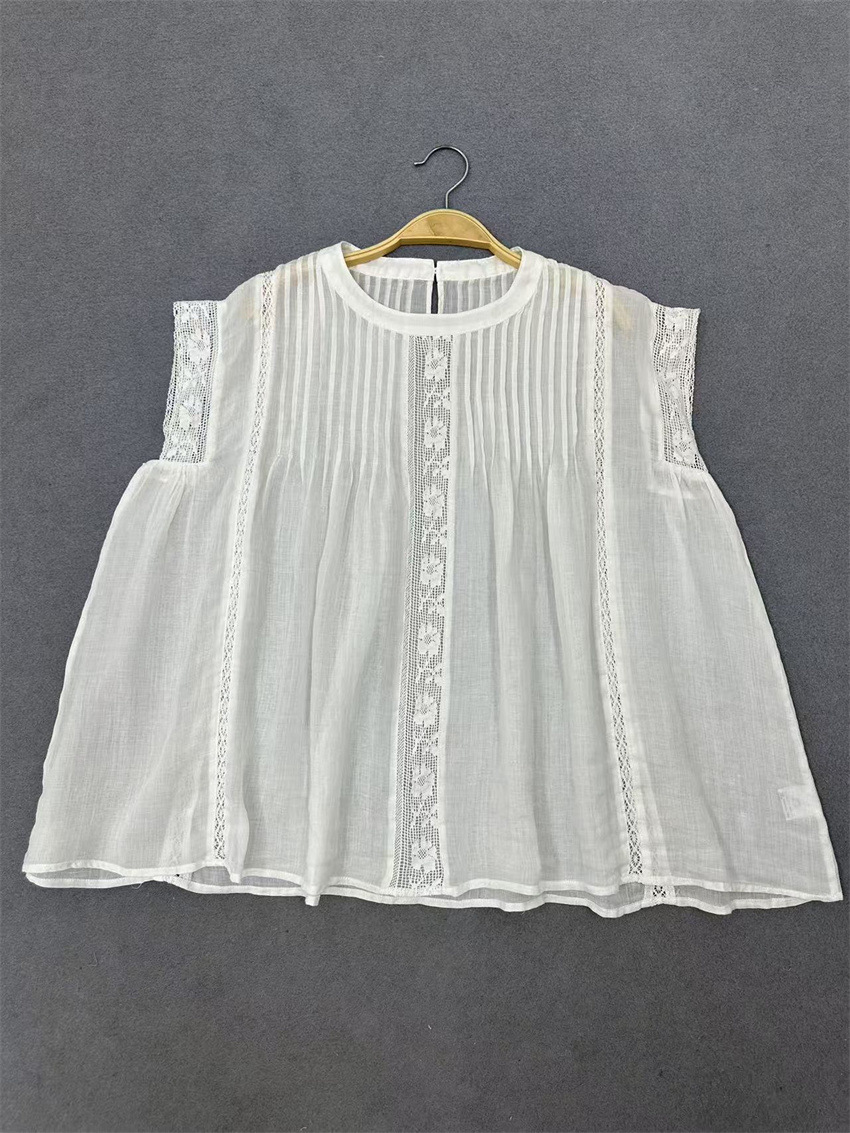 라미 셔츠 2025 여름 새로운 모리 스위트 레이스 민소매 풀오버 슬림 스티칭 할로우 탑 여성