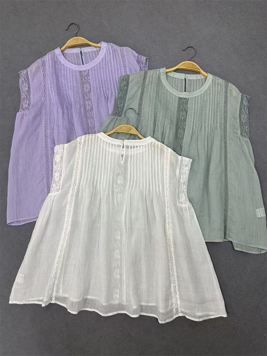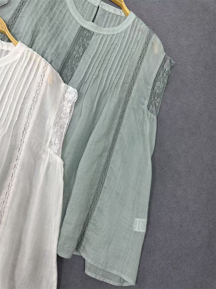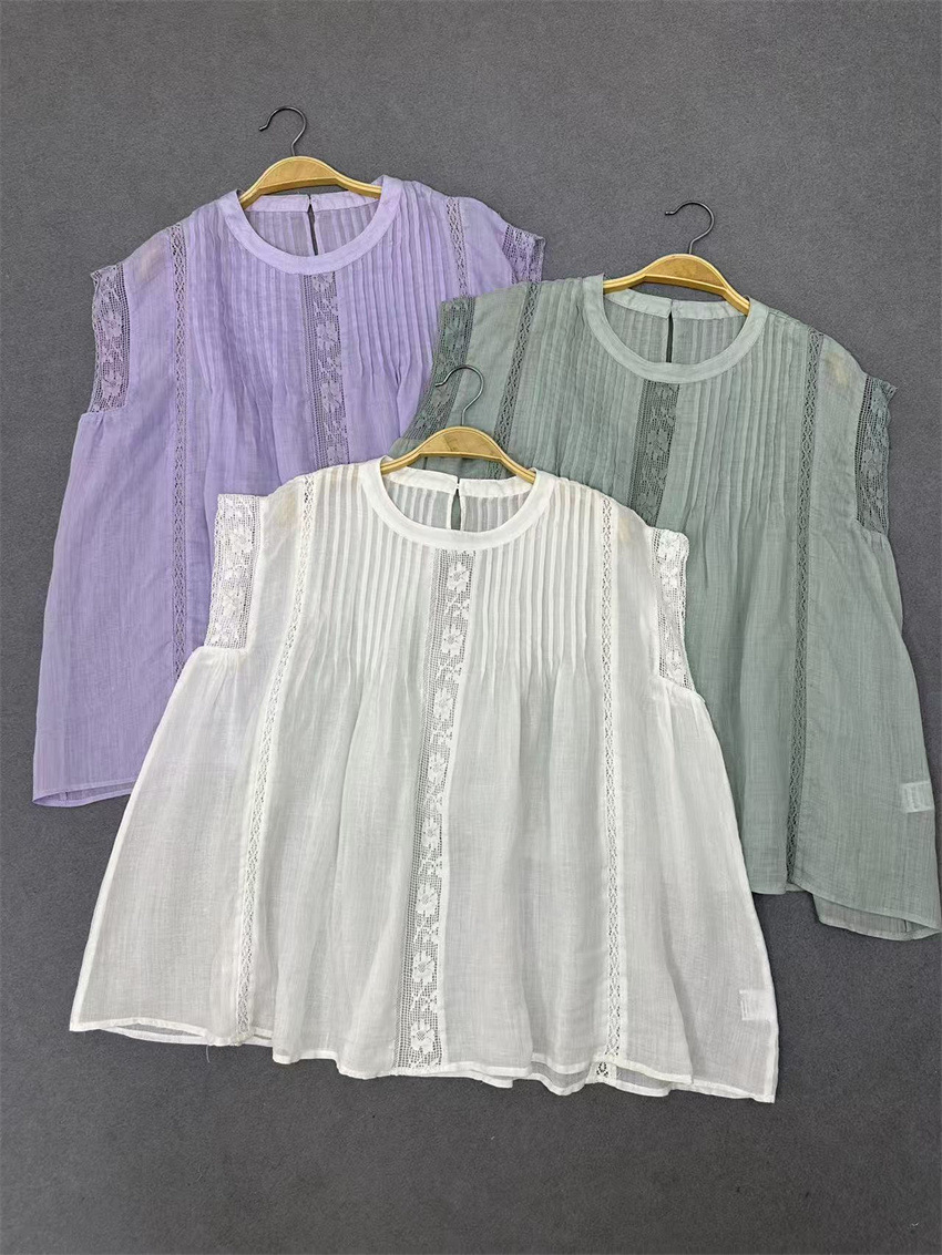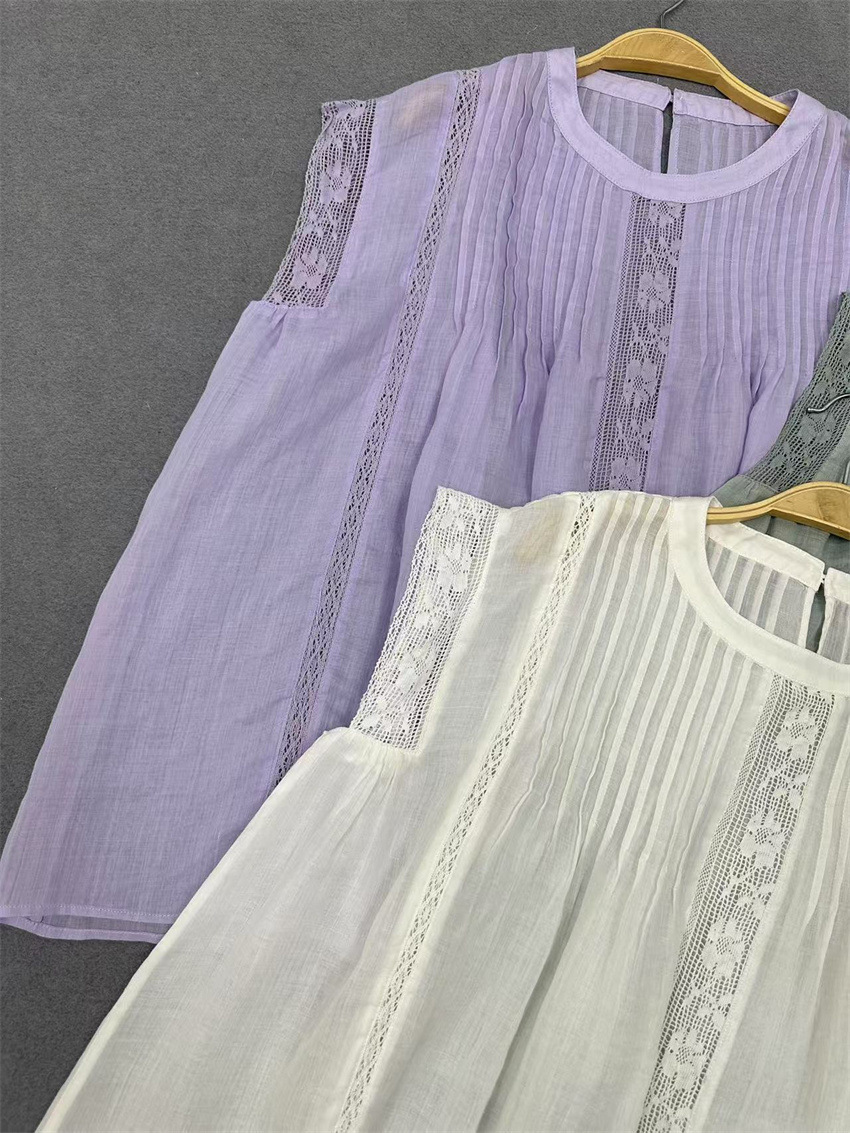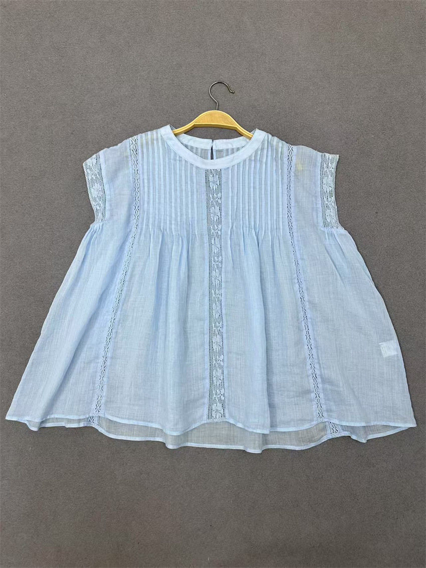 라미 셔츠 2025 여름 새로운 모리 스위트 레이스 민소매 풀오버 슬림 스티칭 할로우 탑 여성