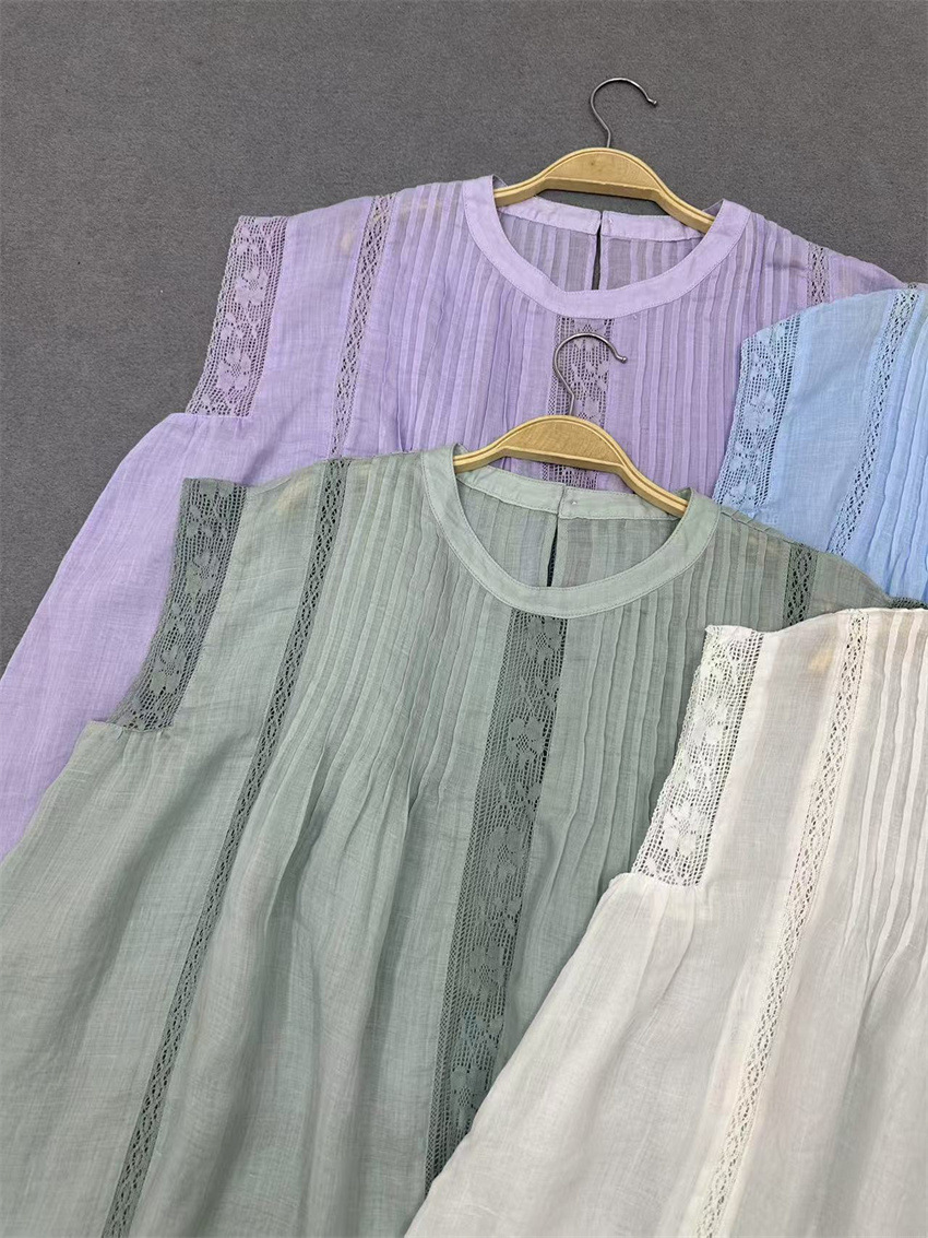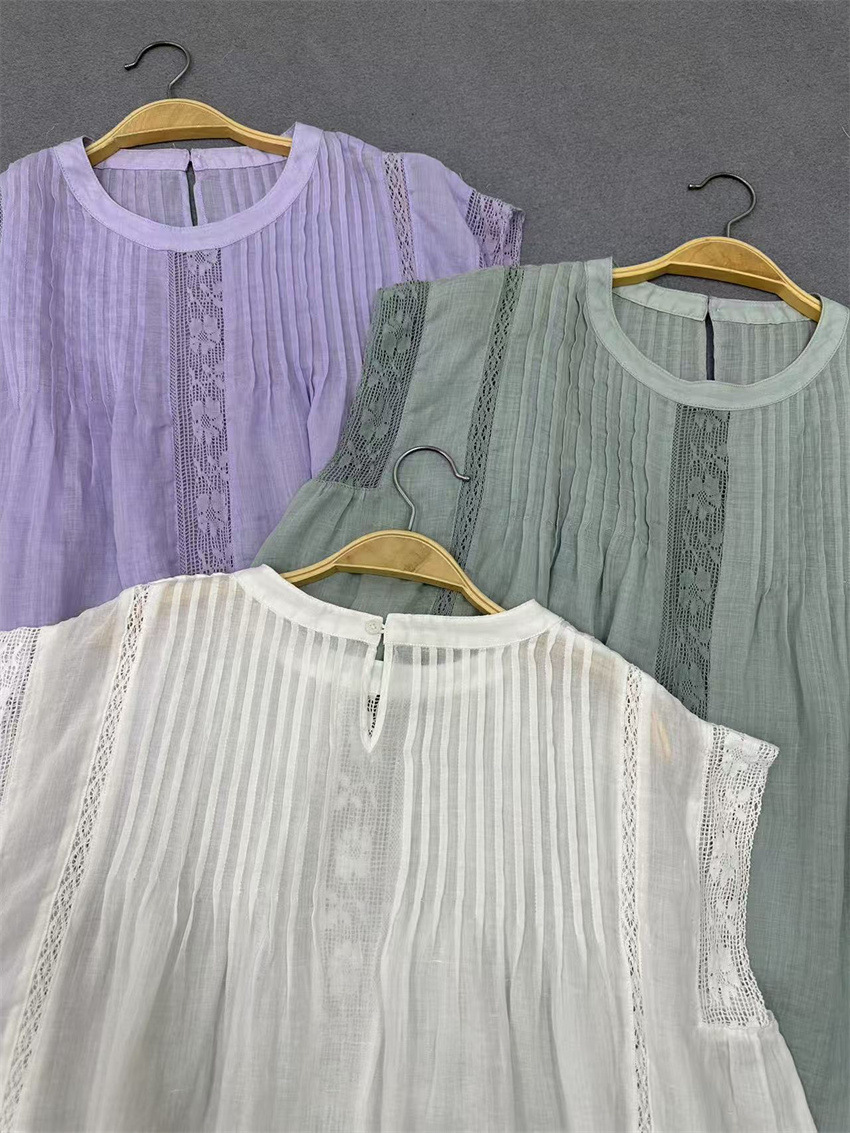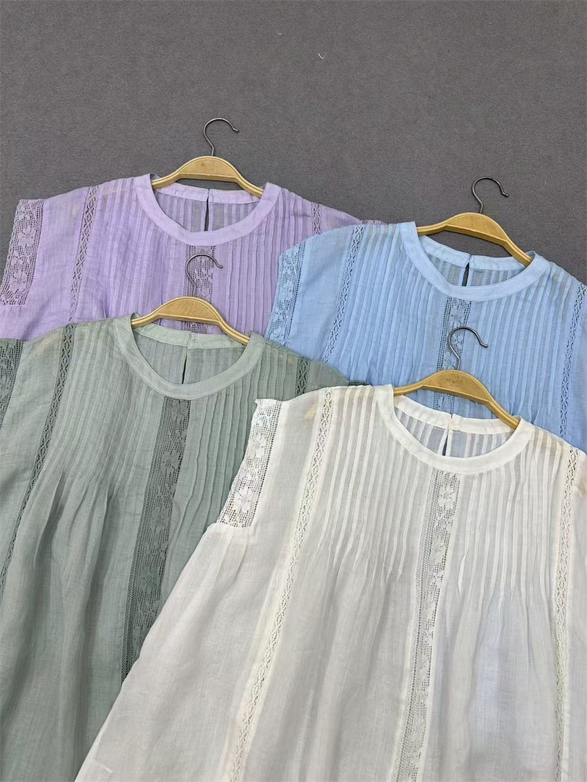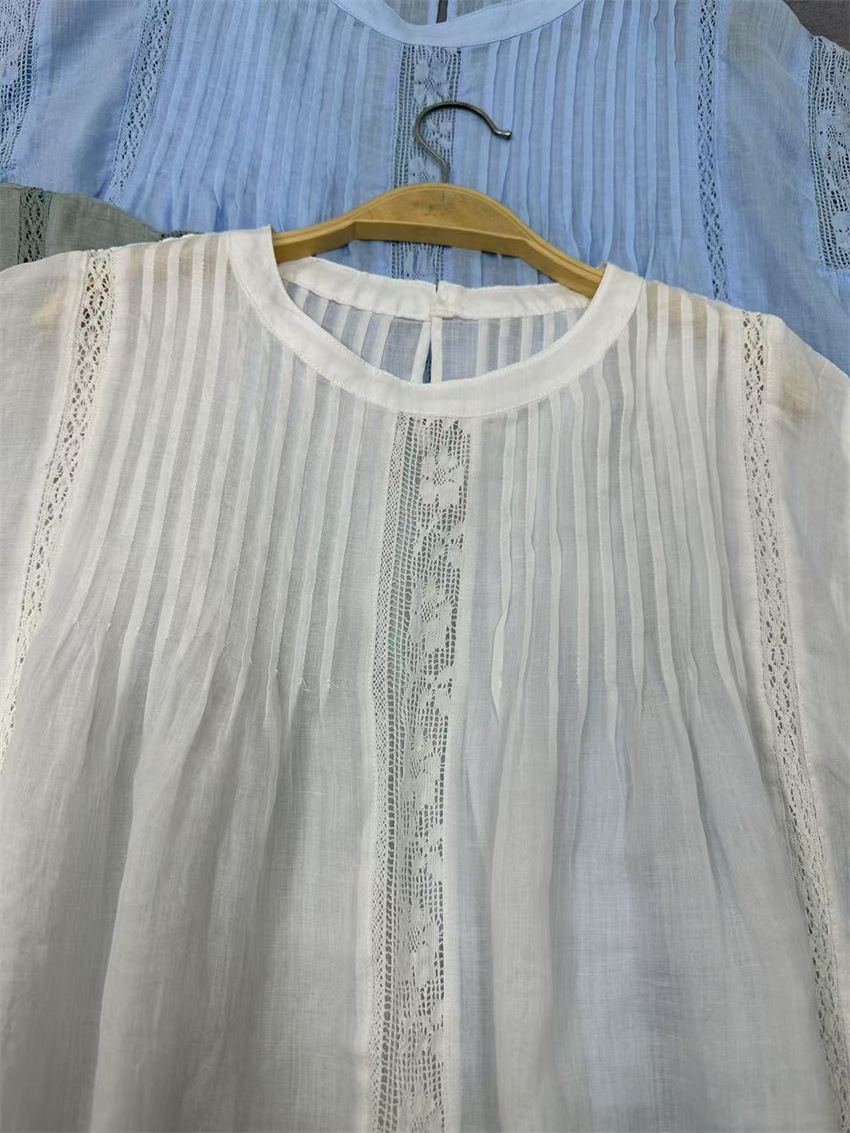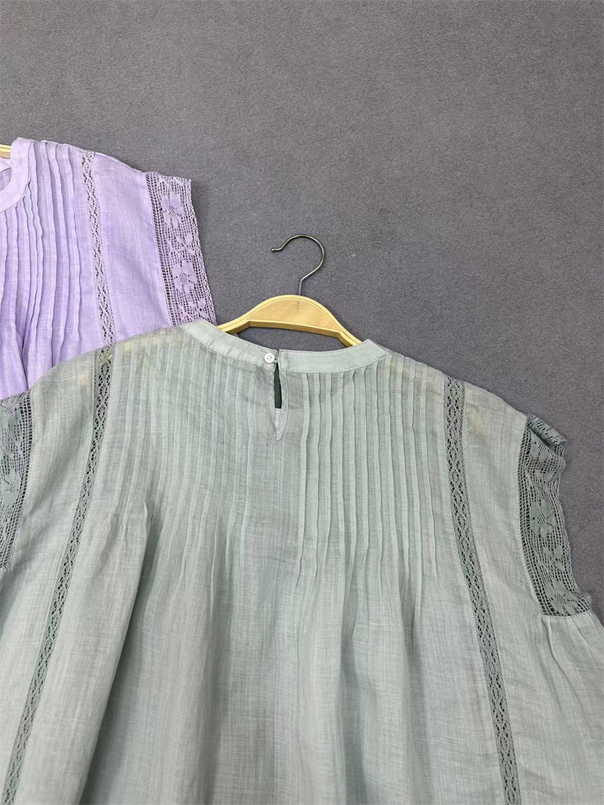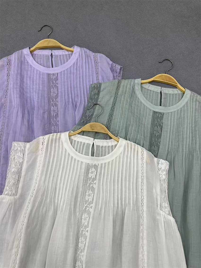 라미 셔츠 2025 여름 새로운 모리 스위트 레이스 민소매 풀오버 슬림 스티칭 할로우 탑 여성