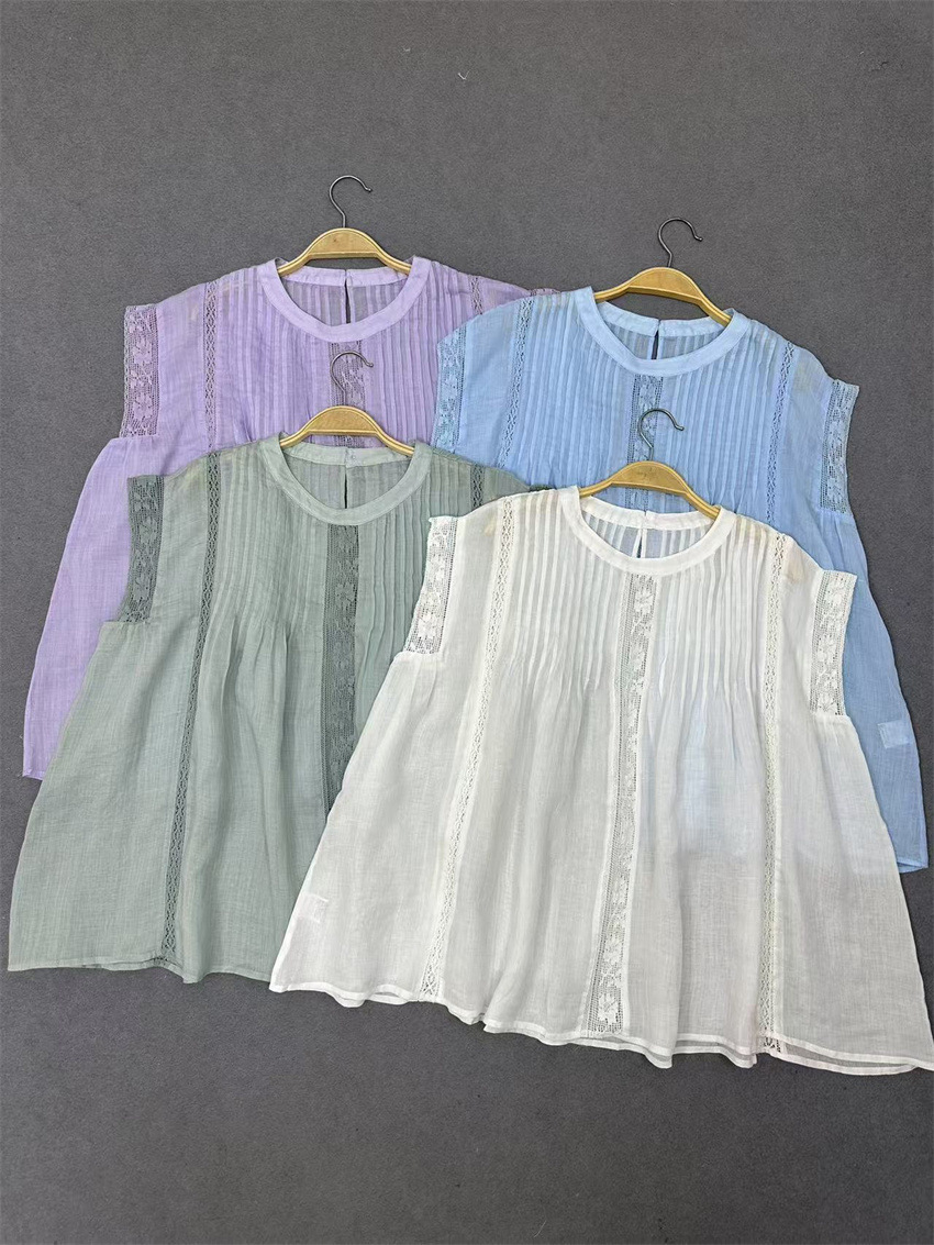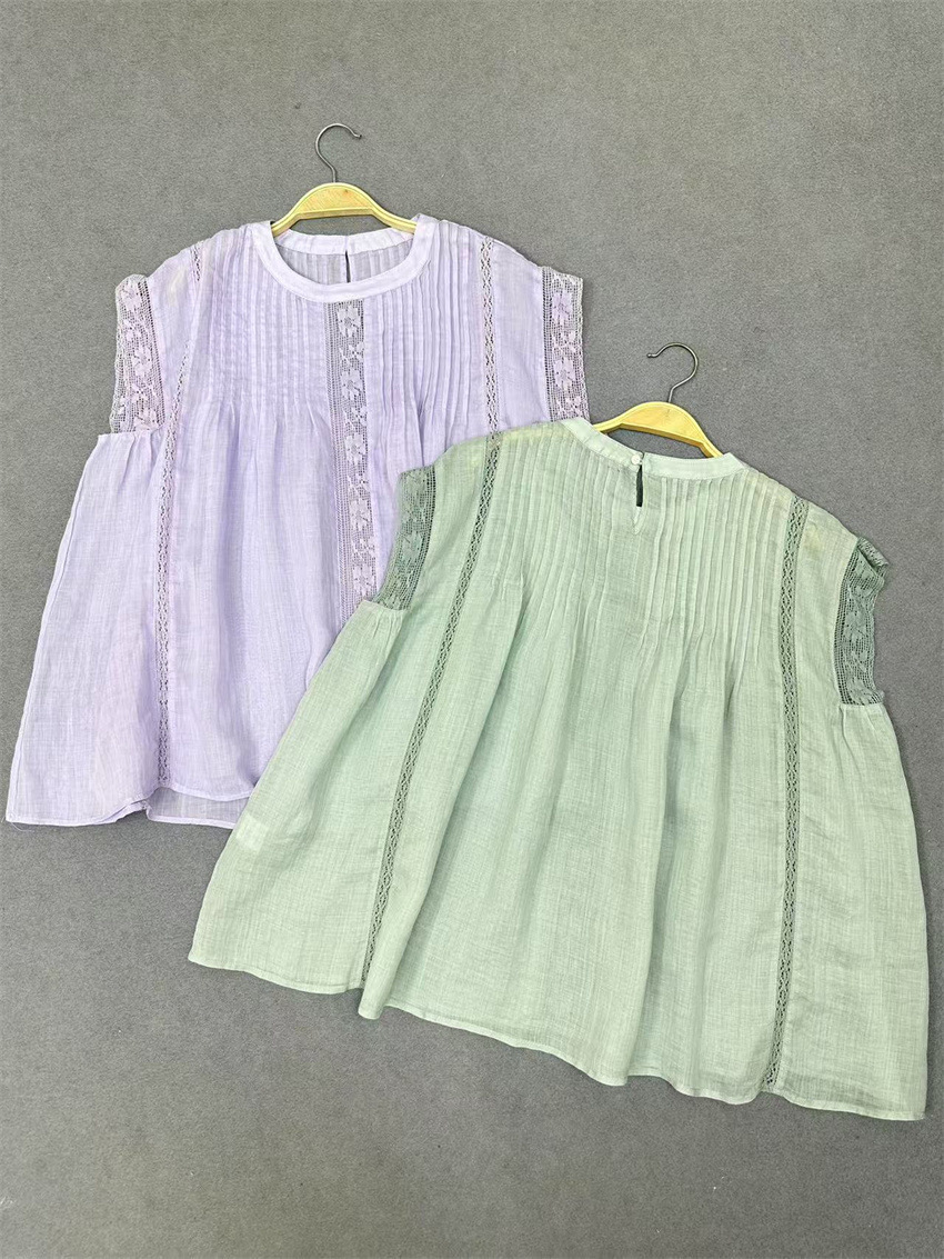 라미 셔츠 2025 여름 새로운 모리 스위트 레이스 민소매 풀오버 슬림 스티칭 할로우 탑 여성스토어 가기