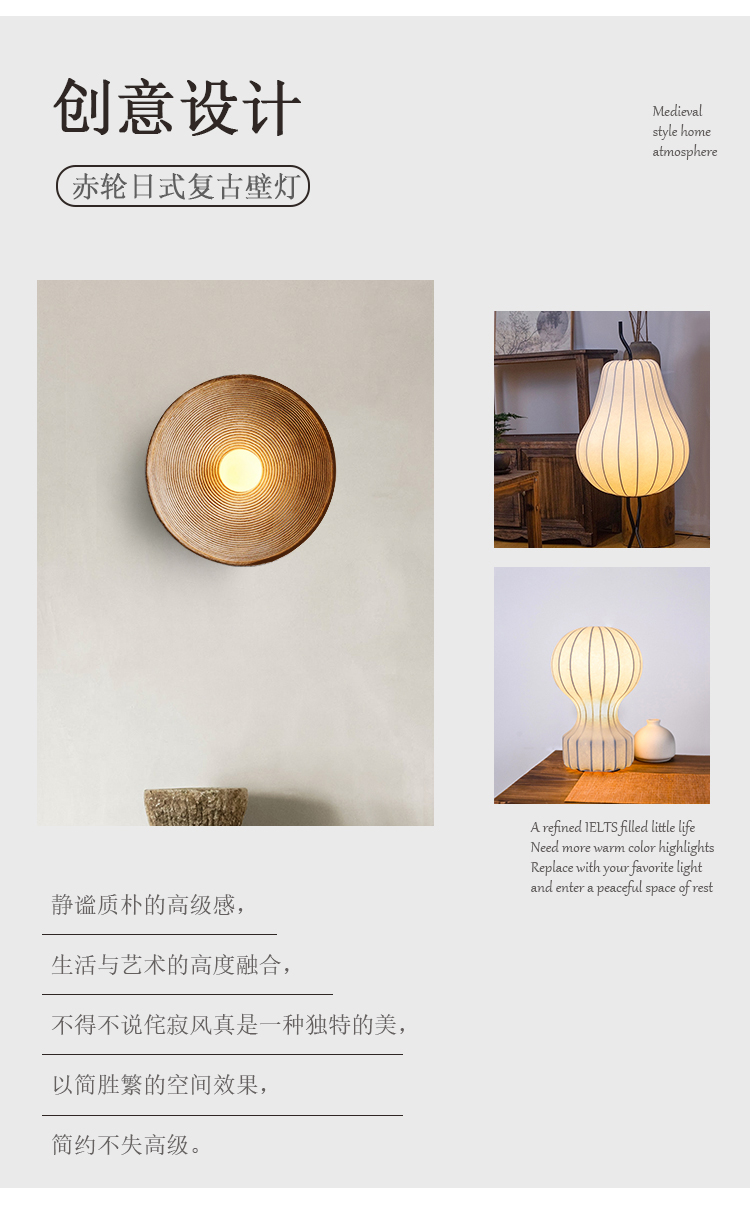 Wabi-sabi 스타일 일본 복고풍 벽 램프 B&B 덴마크 디자이너 거실 배경 벽 침실 머리맡 장식 벽 램프