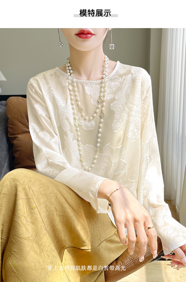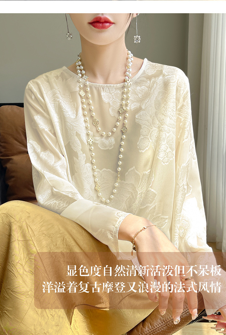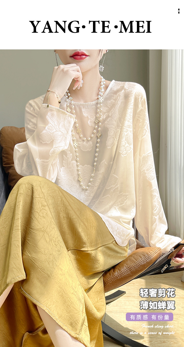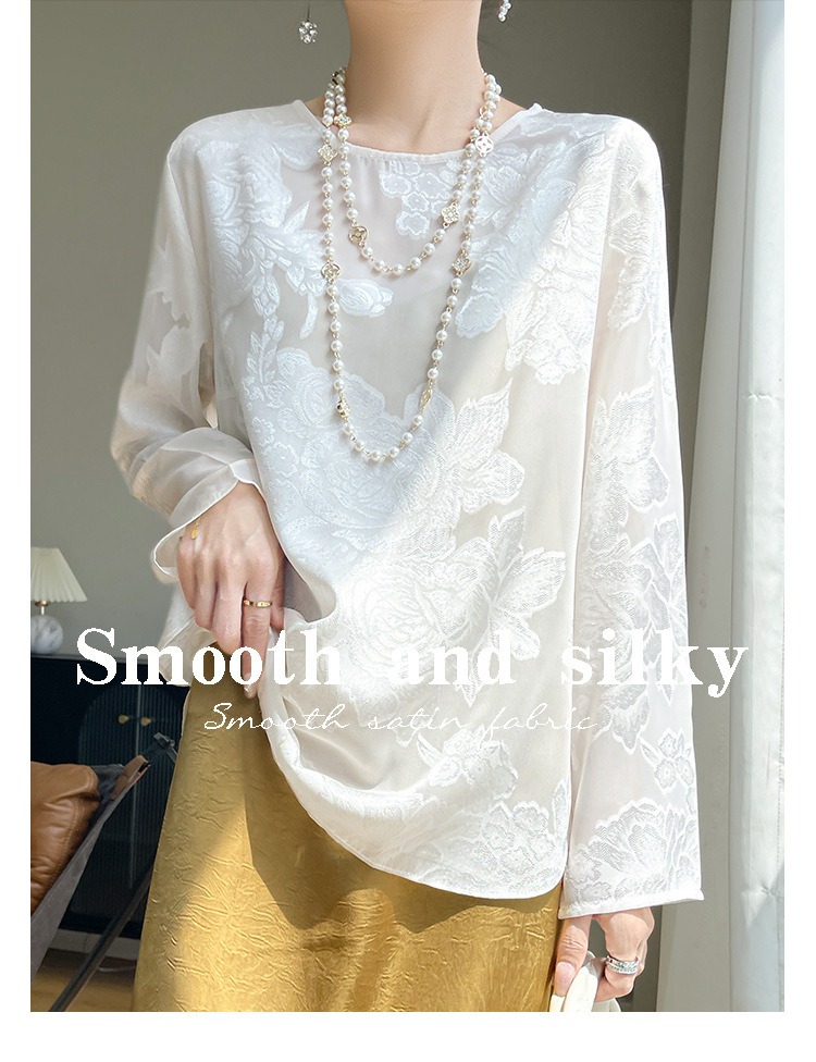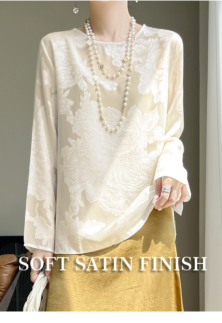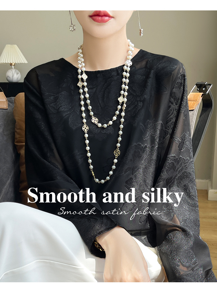 실크 새틴 셔츠 여성 라운드 넥 샴페인 긴팔 새로운 루즈 디자인 탑 봄 여름 라이트 럭셔리 바닥 셔츠스토어 가기
