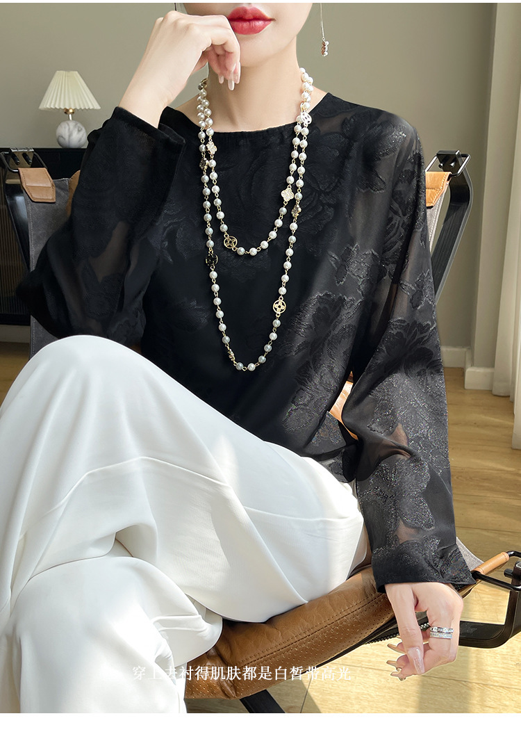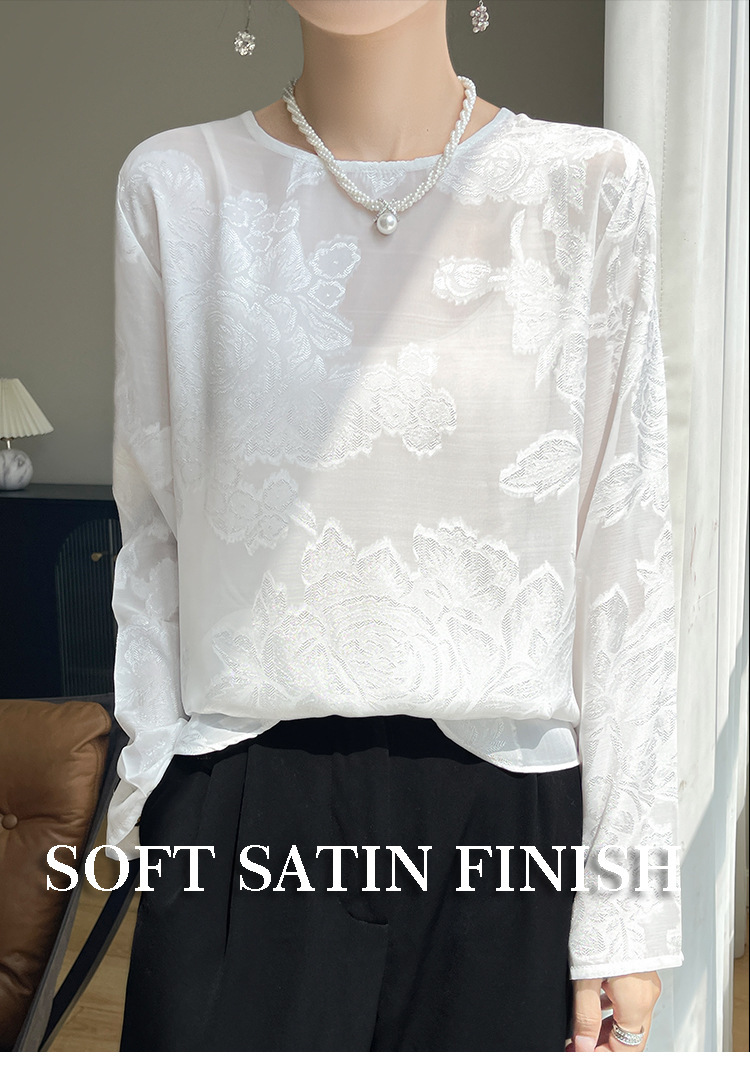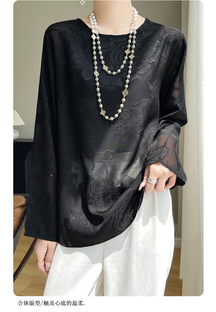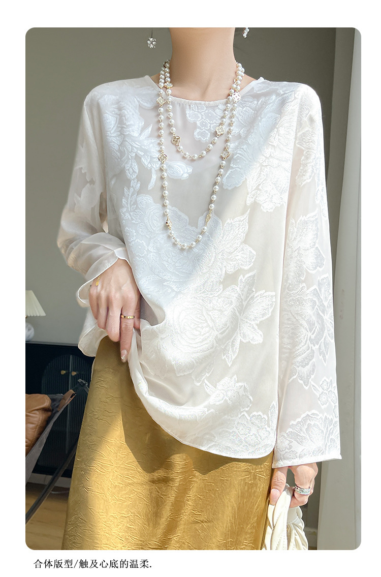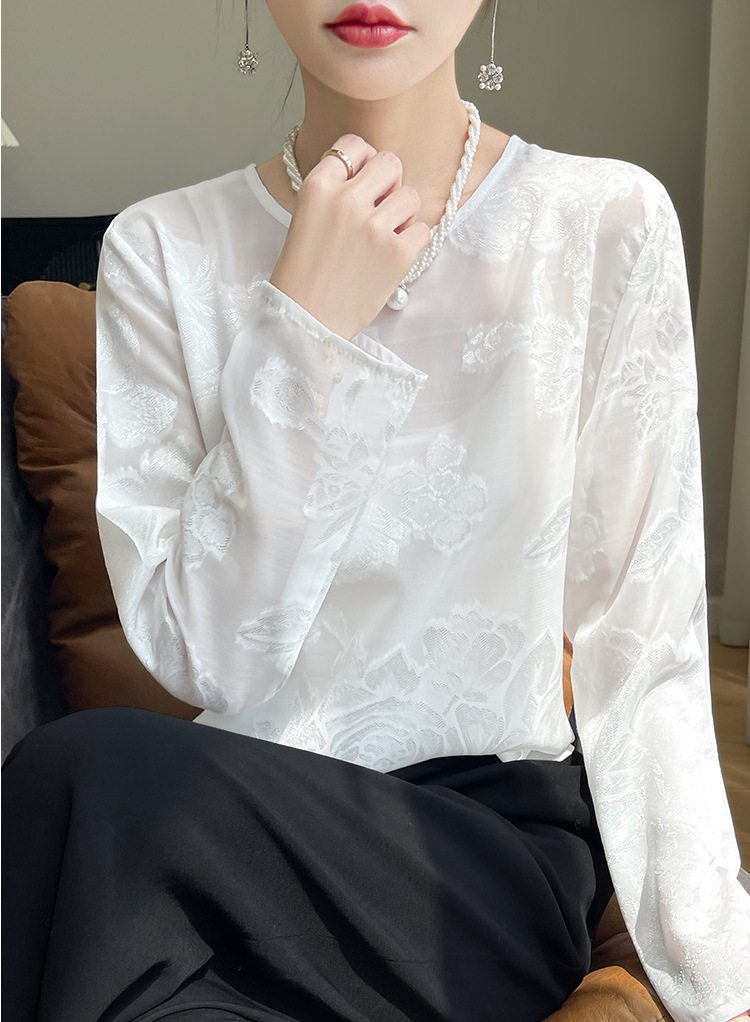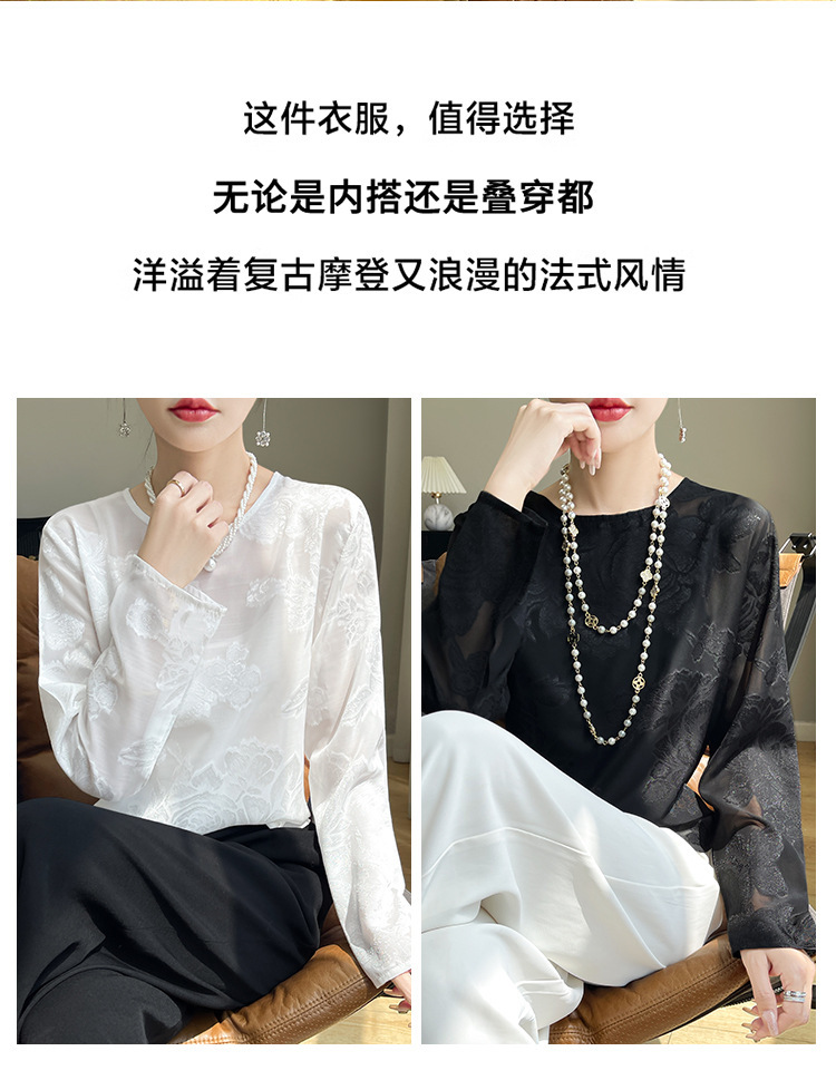 실크 새틴 셔츠 여성 라운드 넥 샴페인 긴팔 새로운 루즈 디자인 탑 봄 여름 라이트 럭셔리 바닥 셔츠스토어 가기