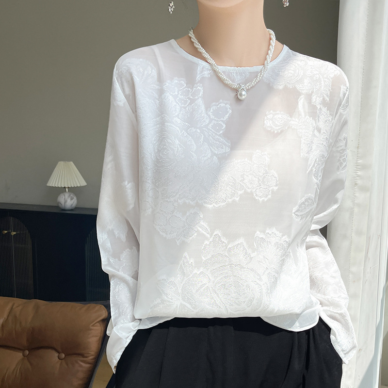 실크 새틴 셔츠 여성 라운드 넥 샴페인 긴팔 새로운 루즈 디자인 탑 봄 여름 라이트 럭셔리 바닥 셔츠