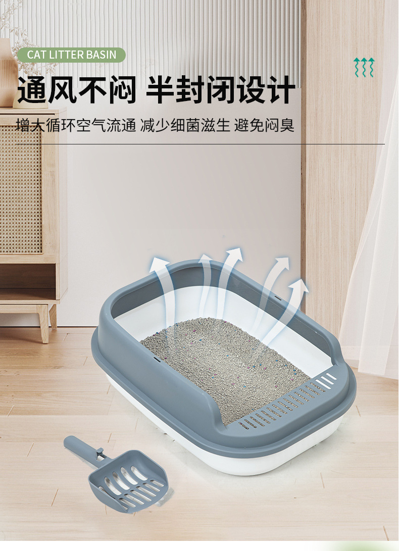 고양이 쓰레기통 대형 반밀폐형 고양이 화장실 새끼 고양이 용품 가정용 고양이 쓰레기통