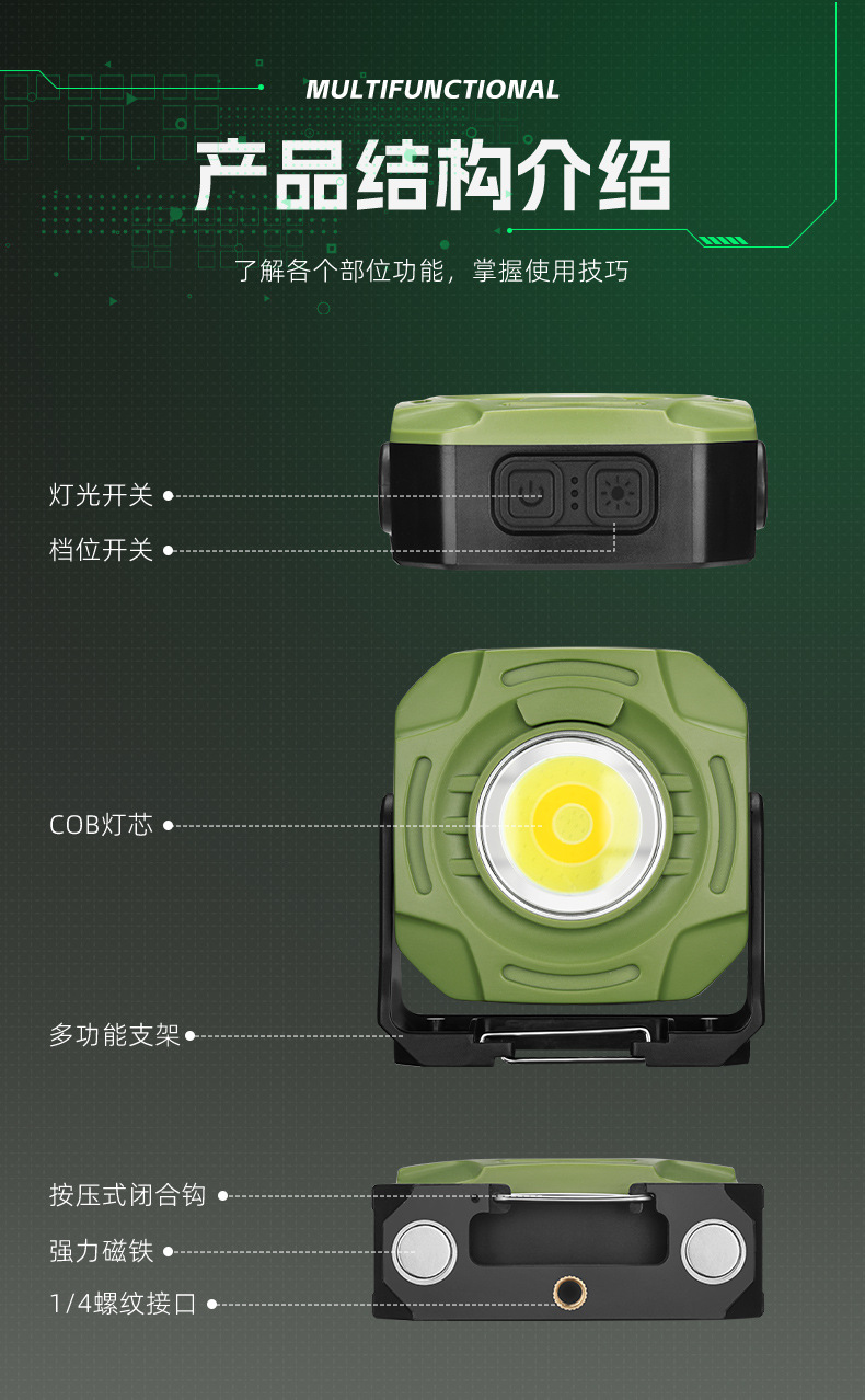 다기능 야외 키 체인 빛 휴대용 미니 캠핑 램프 COB 작업 빛 강력한 자기 검사 빛 손전등