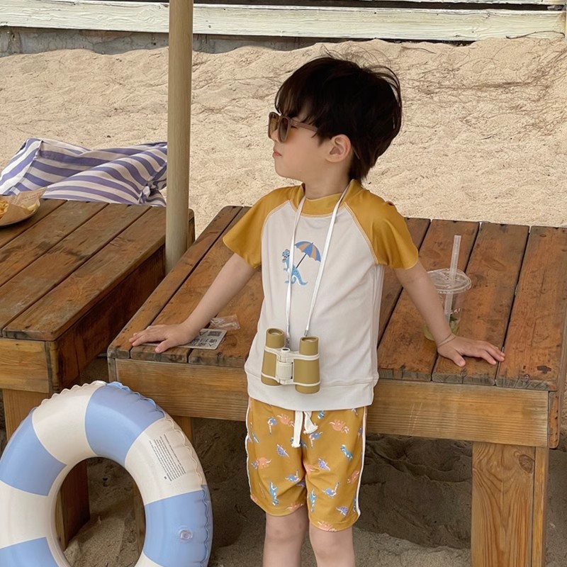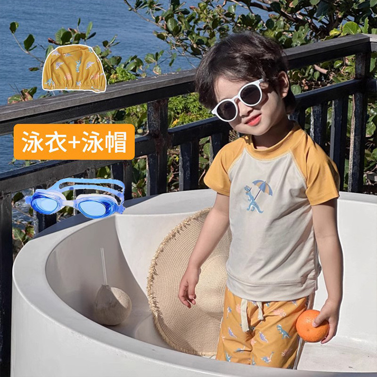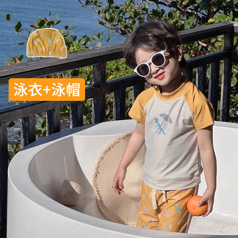 새로운 소년 수영복 어린이 분할 귀여운 공룡 수영복 수영 트렁크 어린이 아기 반팔 속건성 양복