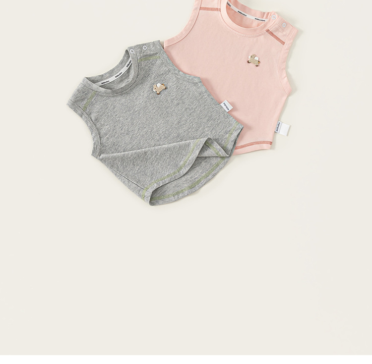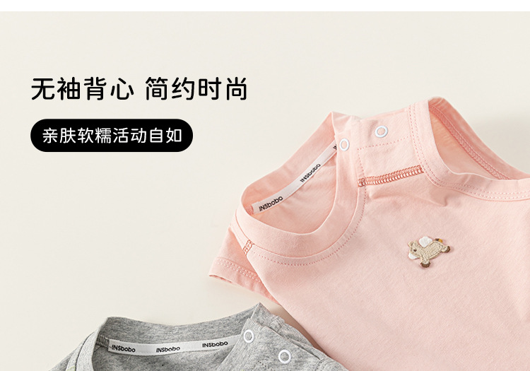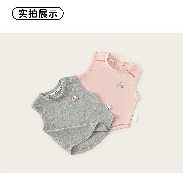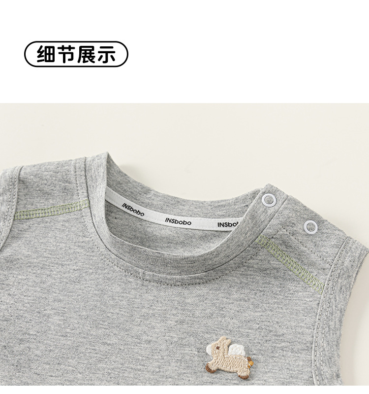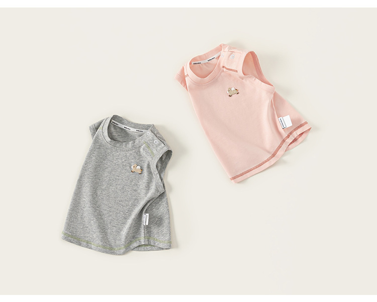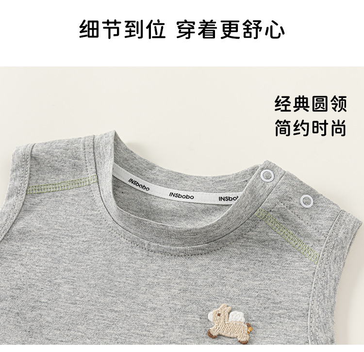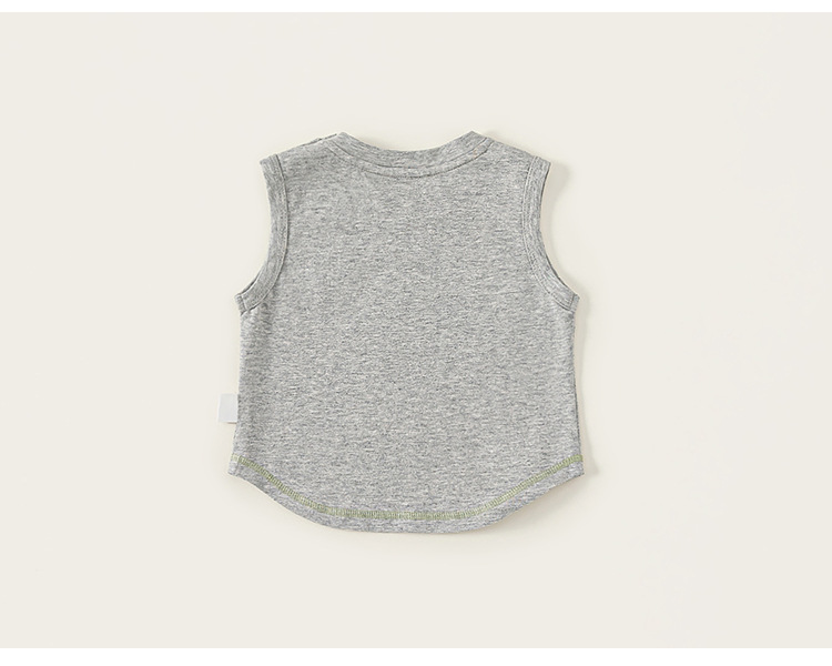 봉 셀렉트 어린이 여름 새 얇은 톱 소년 크루 넥 자수 티셔츠 소년 아기의 단색 민소매 조끼