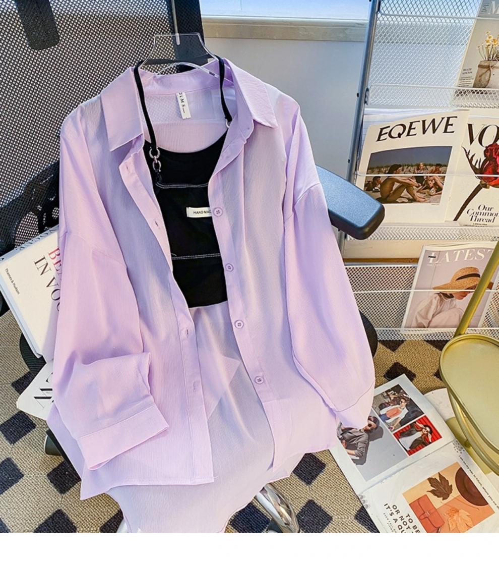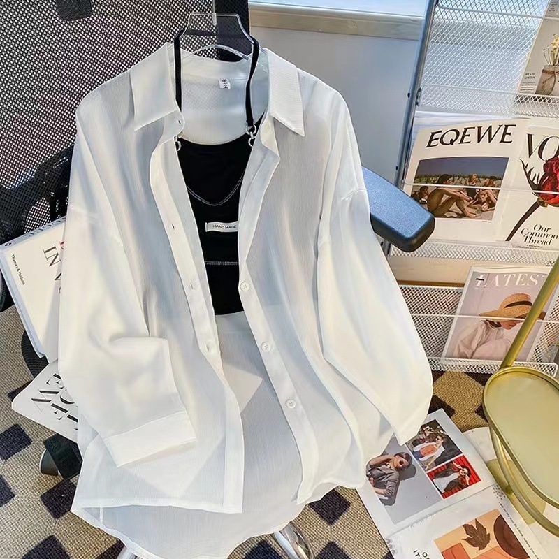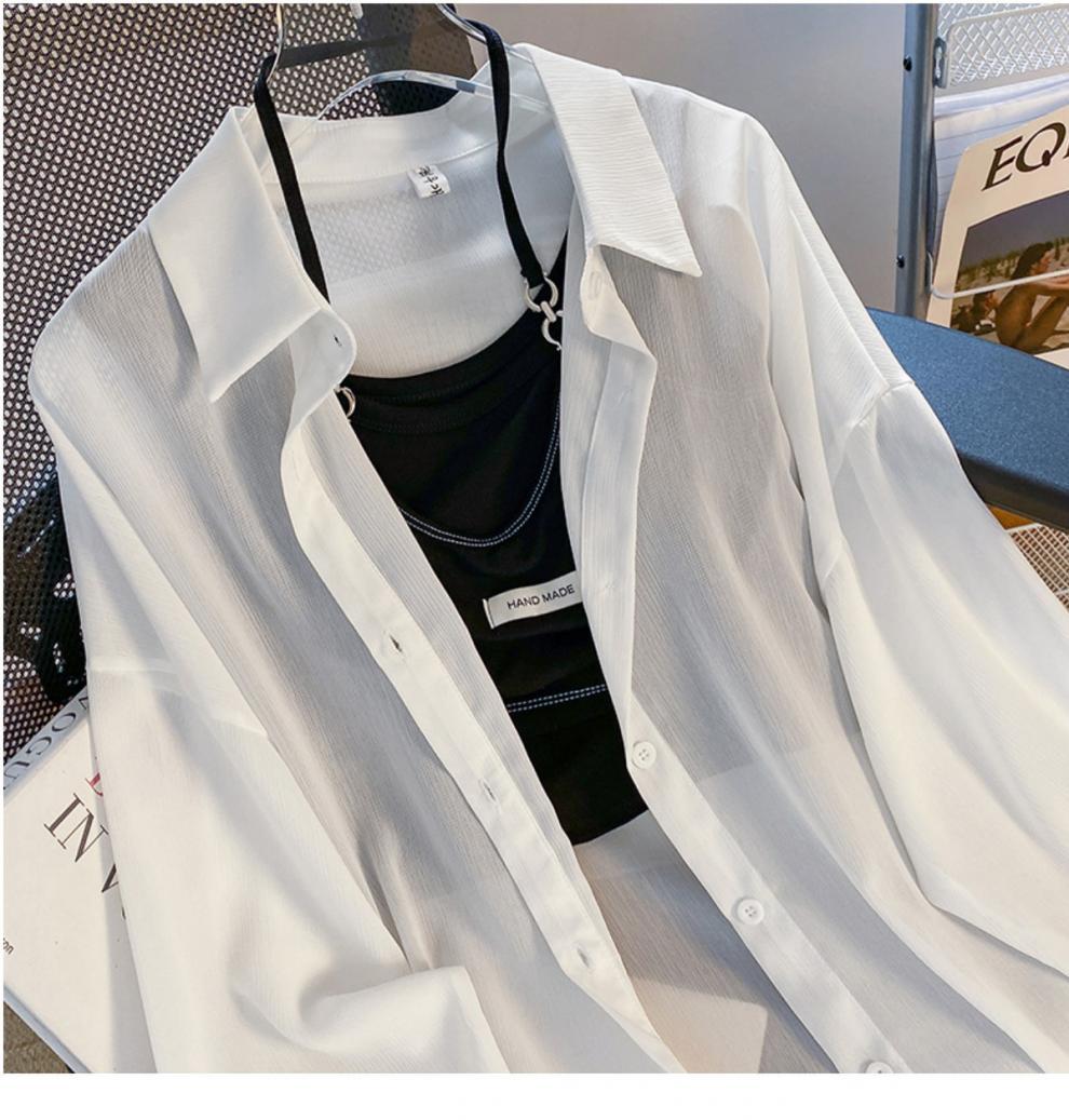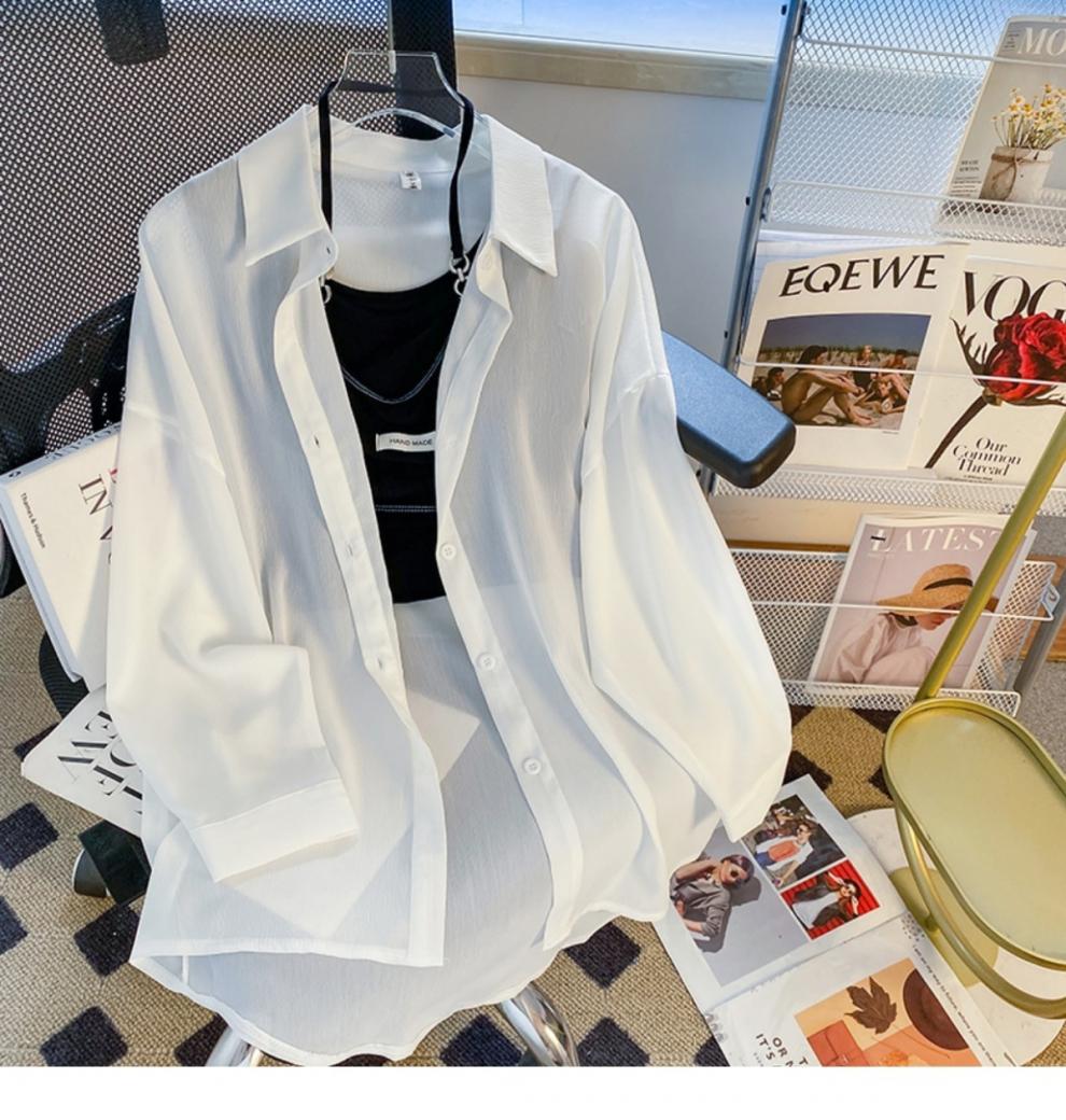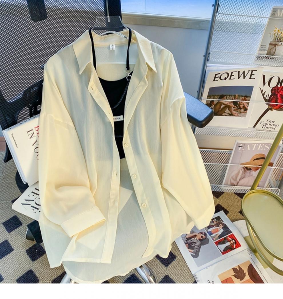 여름 신작 쉬폰 자외선 차단 셔츠 여성 긴팔 한국식 루즈 중간 길이 자외선 차단