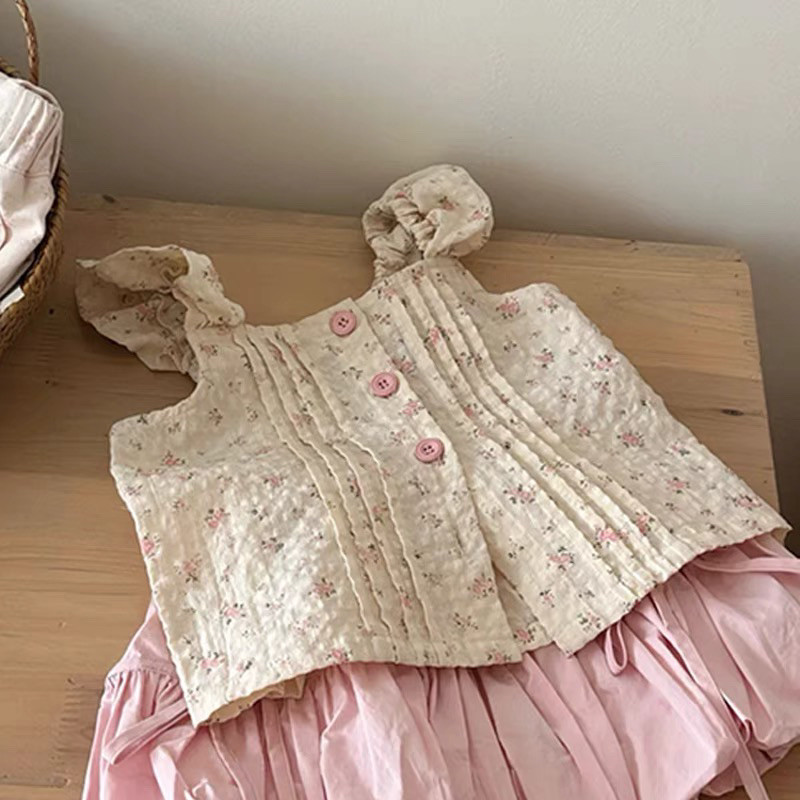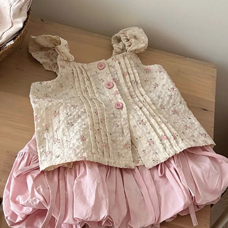 아기 소녀 투피스 소녀 정장 새로운 꽃 조끼 한국 스타일 달콤한 민소매 탑 꽃 버드 반바지