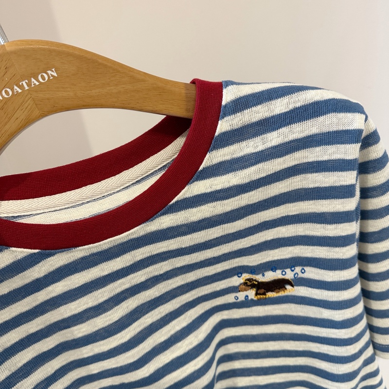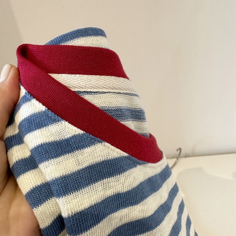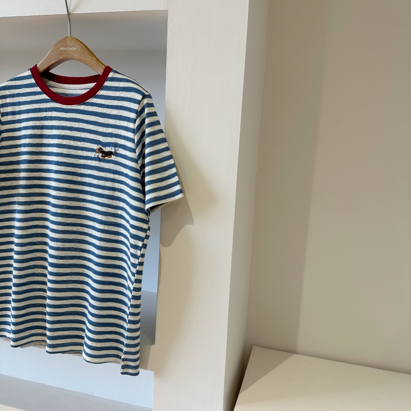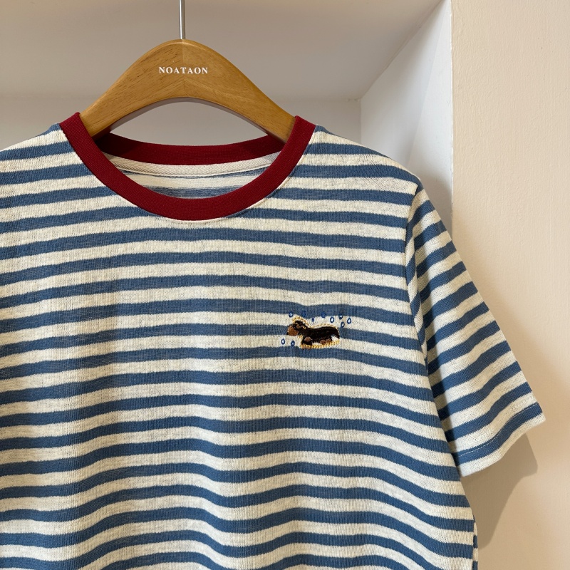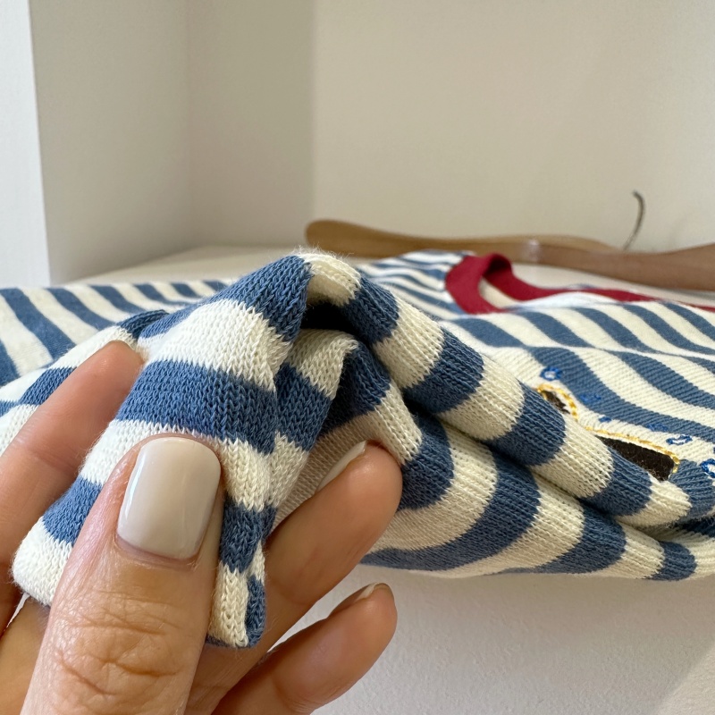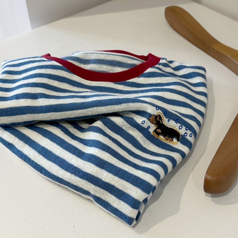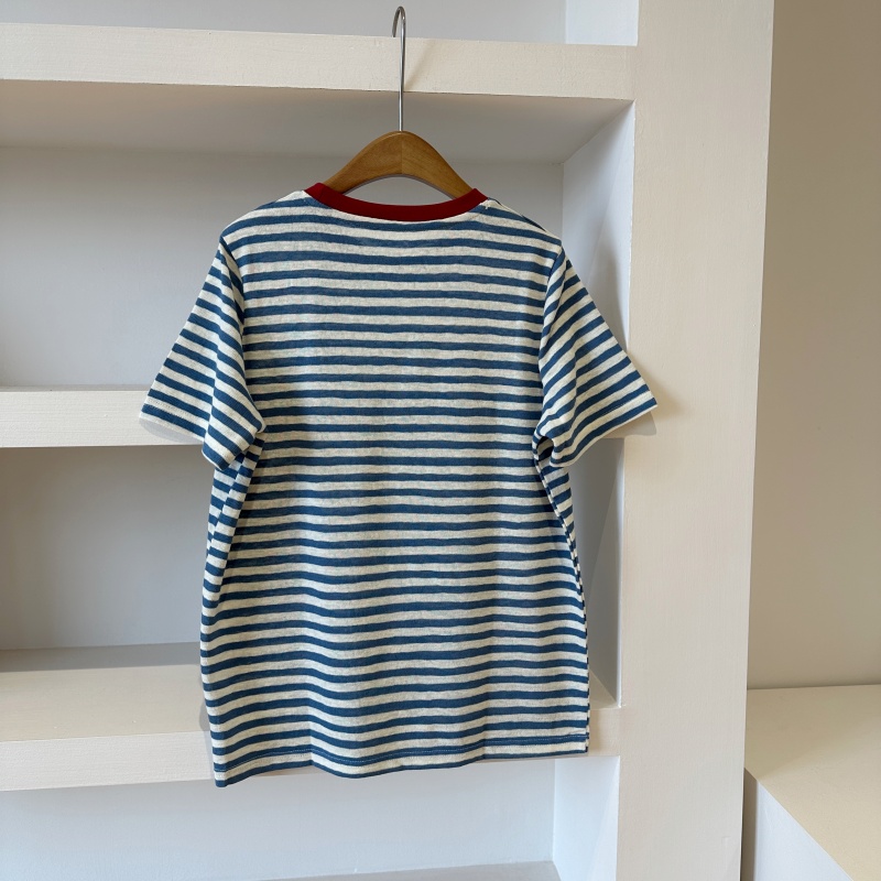 2025 년 여름 얇은 신선한 대비 색상 연령 감소 자수 느슨한 둥근 목 반팔 티셔츠 여성베이스 티셔츠스토어 가기