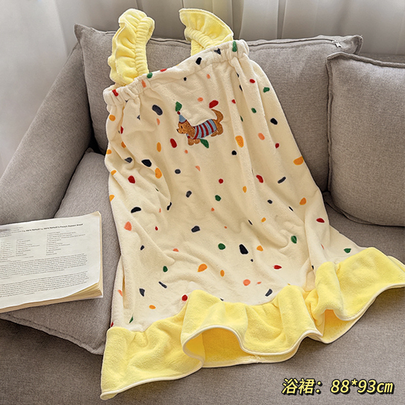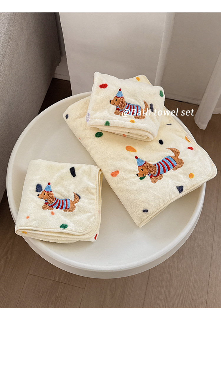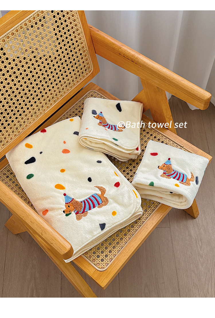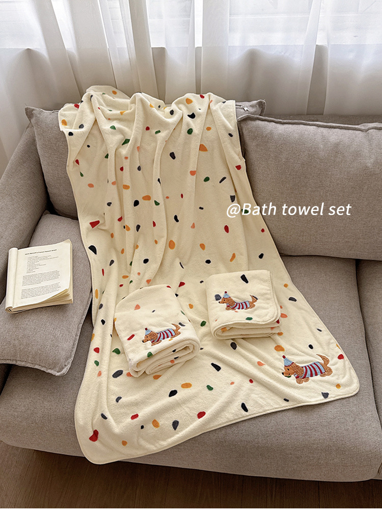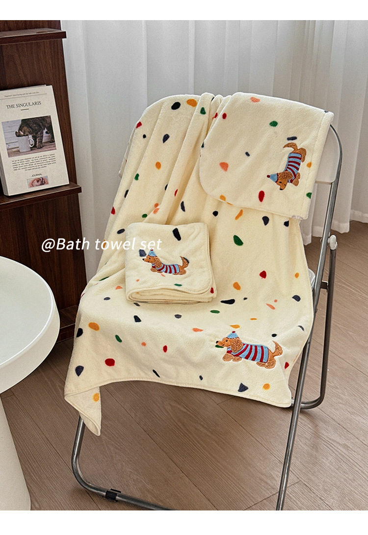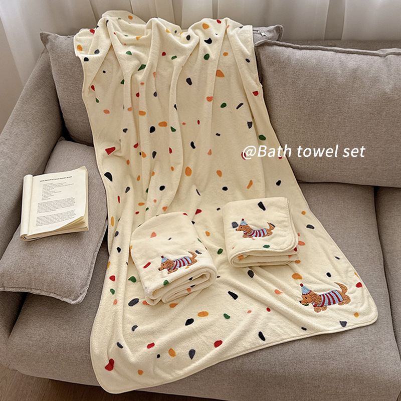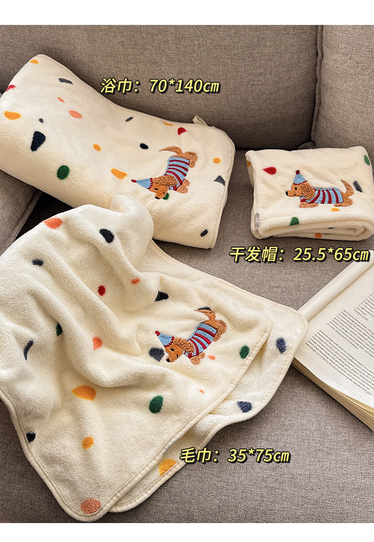 2025 새로운 성인 목욕은 코튼 목욕 타월 여성보다 산호 양털 3 피스 세트 귀여운 강아지를 감쌀 수 있습니다.스토어 가기