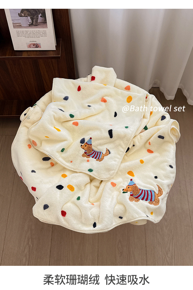 2025 새로운 성인 목욕은 코튼 목욕 타월 여성보다 산호 양털 3 피스 세트 귀여운 강아지를 감쌀 수 있습니다.