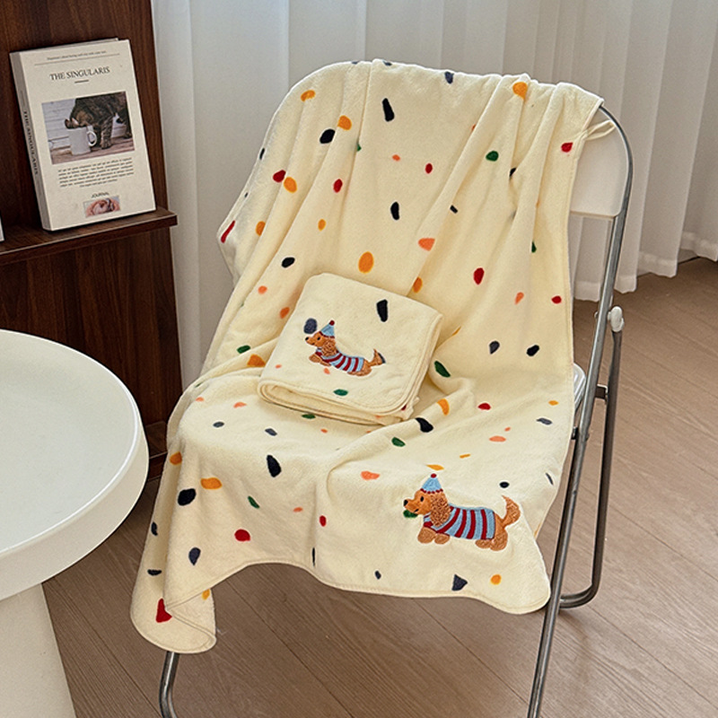 • 컬러풀 강아지 [목욕타올+타월] 투피스 세트