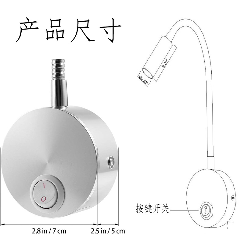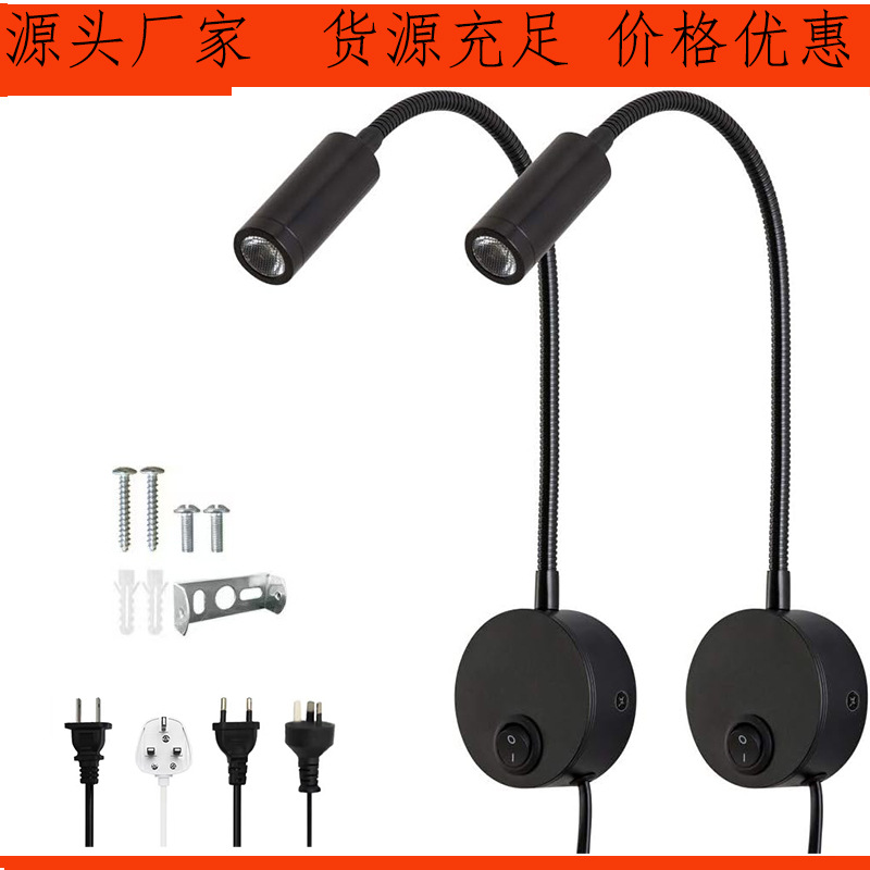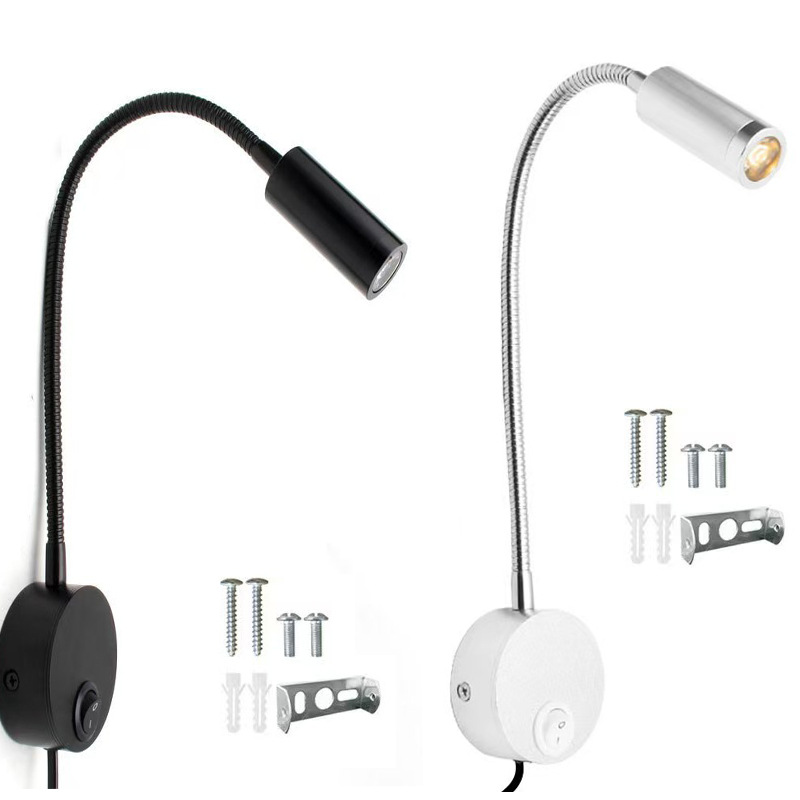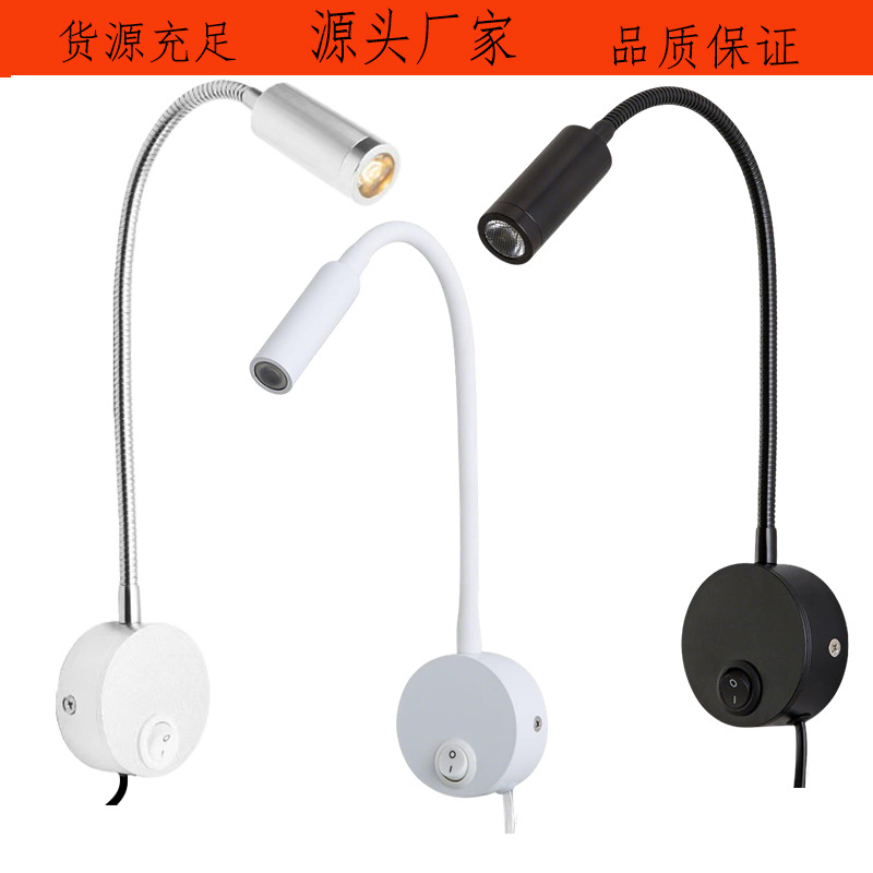 3W 표면 장착형 호텔 침실 머리맡 독서 벽 램프 스포트라이트 LED 호스 벽 램프 거실 연구실 복도 통로 조명