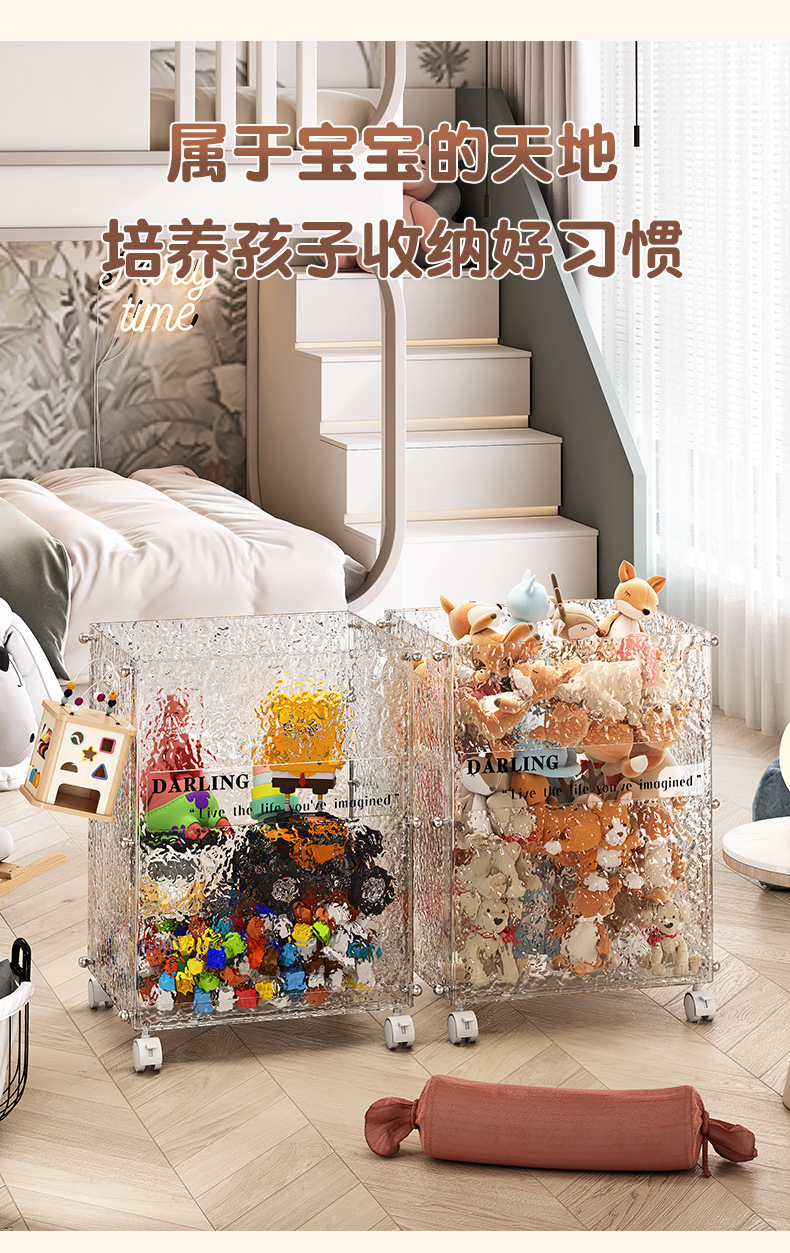 어린이 장난감 보관 상자 대용량 이동식 스낵 보관 상자 투명한 가정용 아기 옷 보관 상자