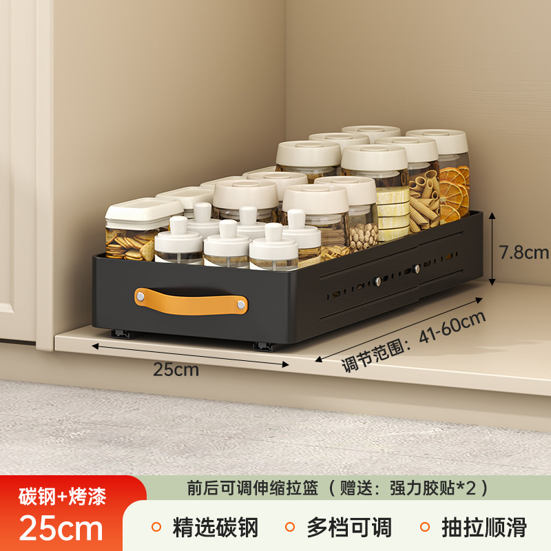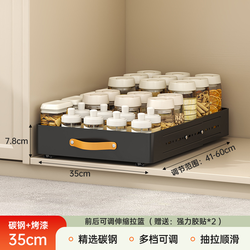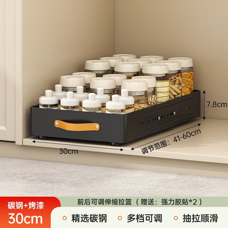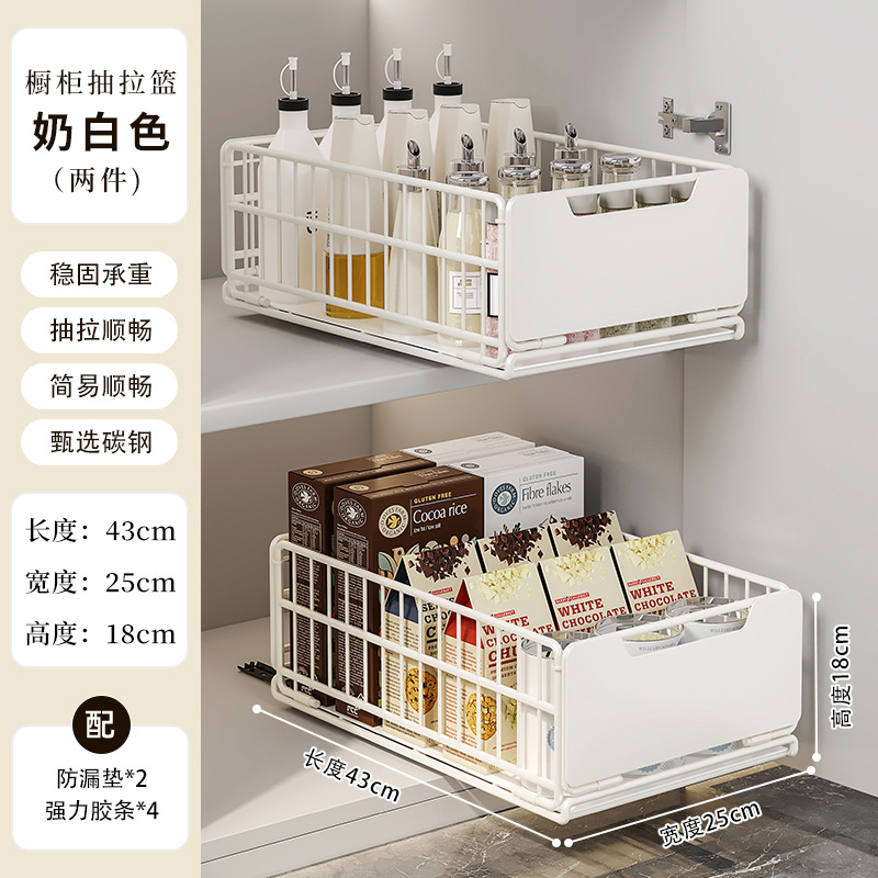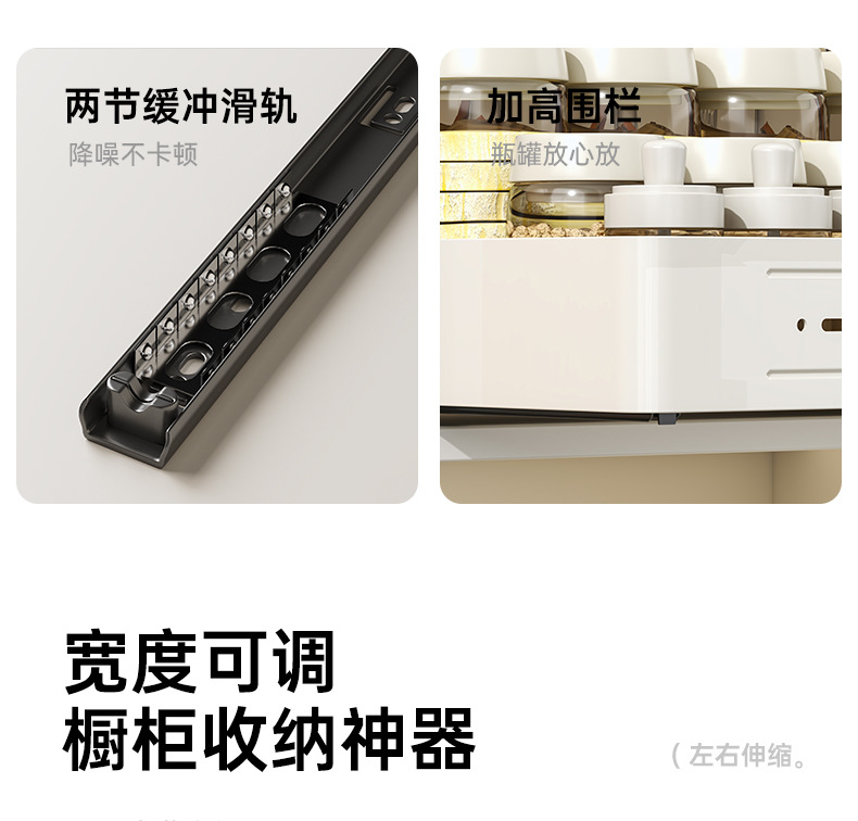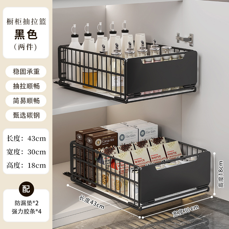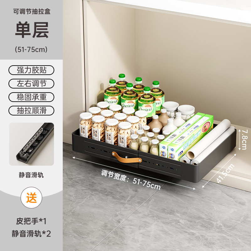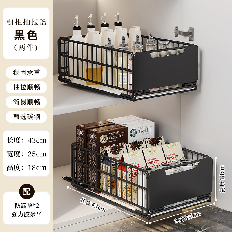 싱크대 아래에 펀치 없는 주방 풀아웃 수납선반, 캐비닛 슬라이드 레일 서랍 수납함, 양념통