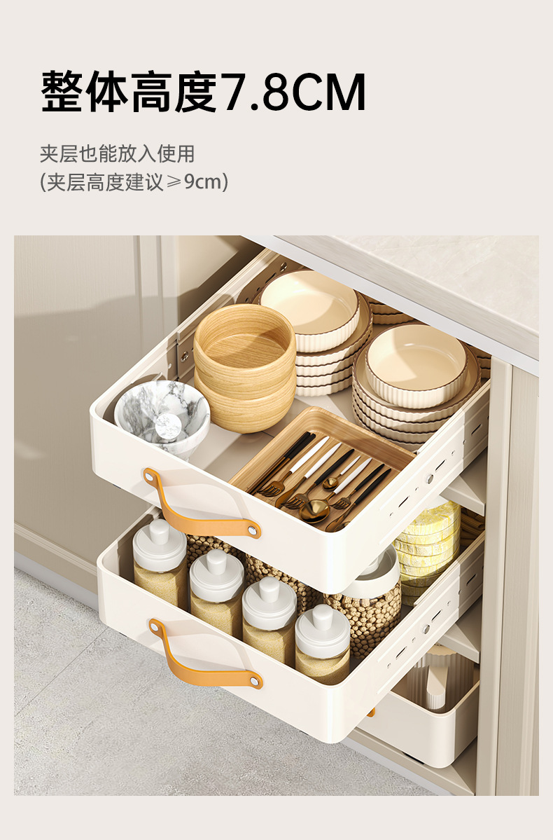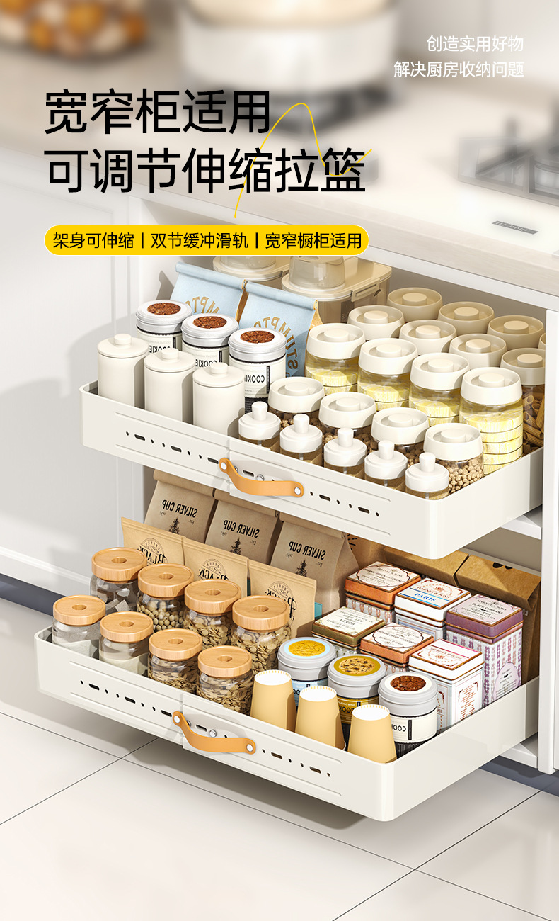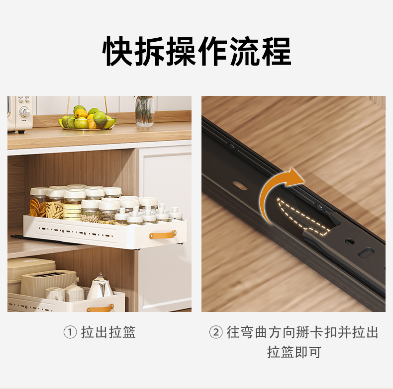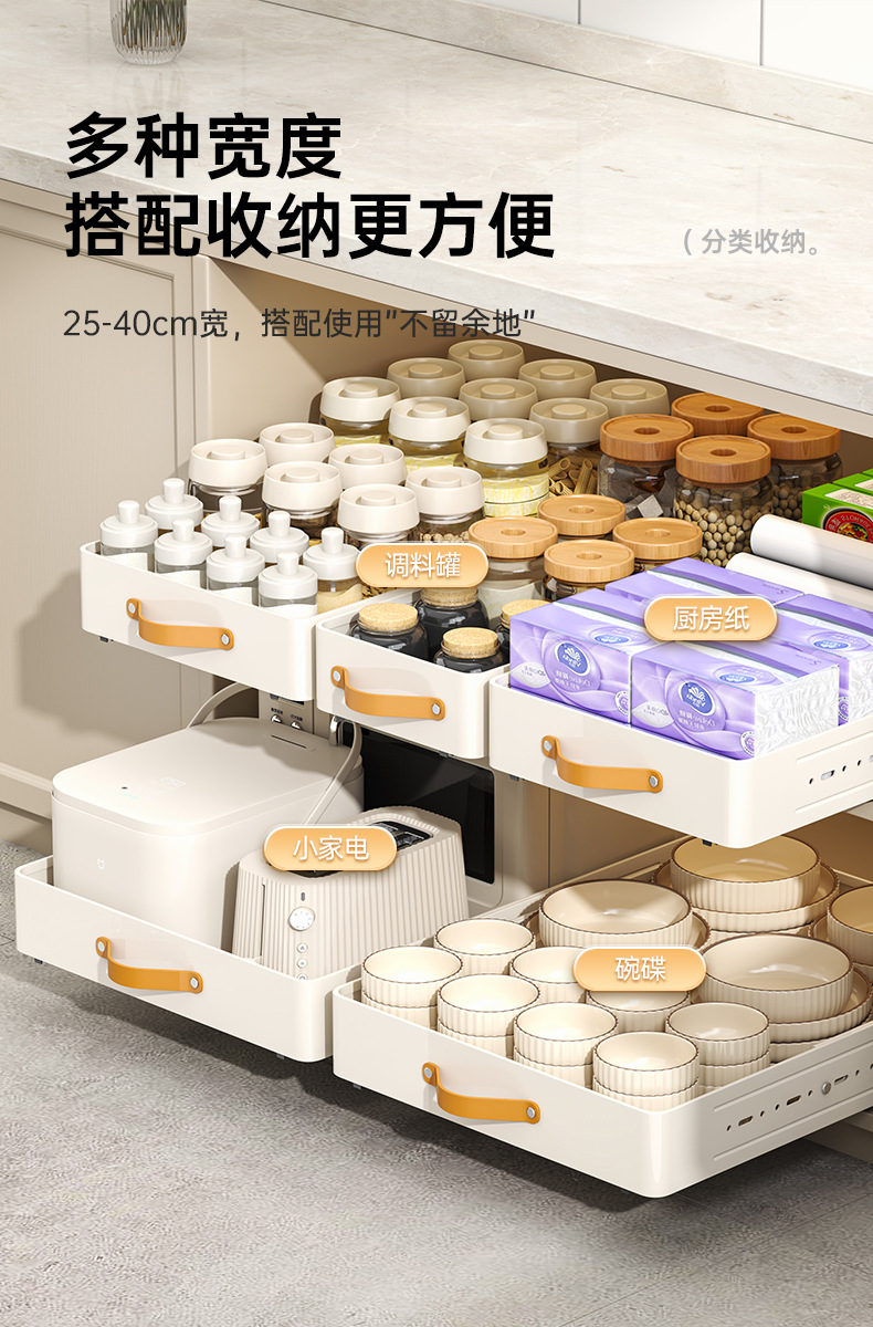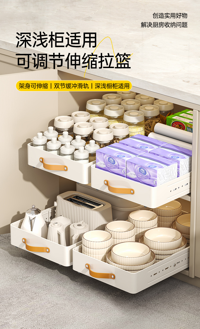 싱크대 아래에 펀치 없는 주방 풀아웃 수납선반, 캐비닛 슬라이드 레일 서랍 수납함, 양념통