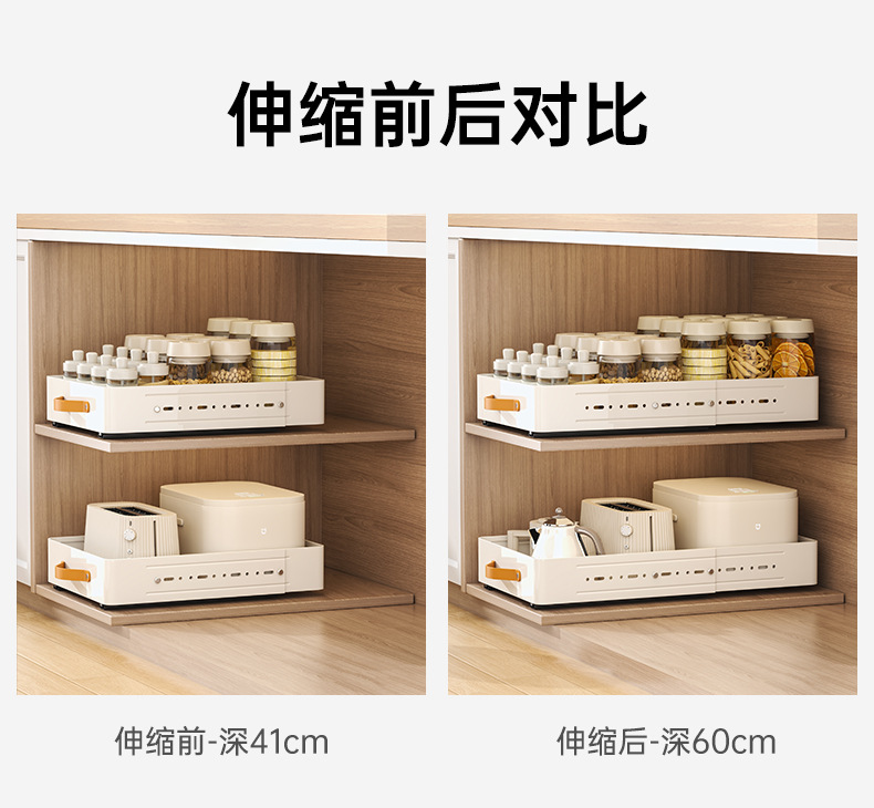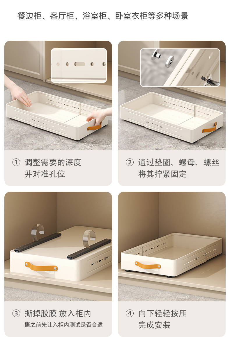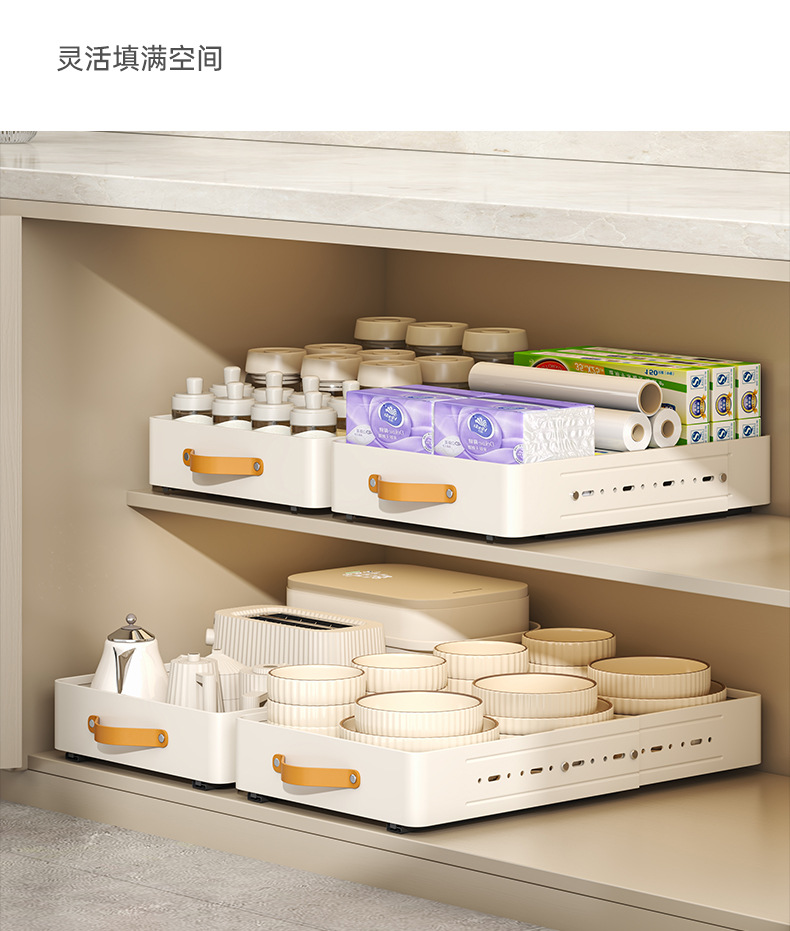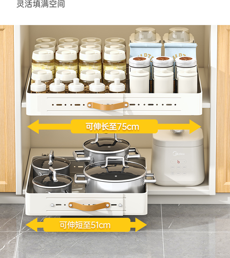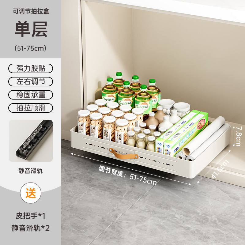 • 좌우 신축형] 유백색 수납함 41.5 깊이 51-75 폭