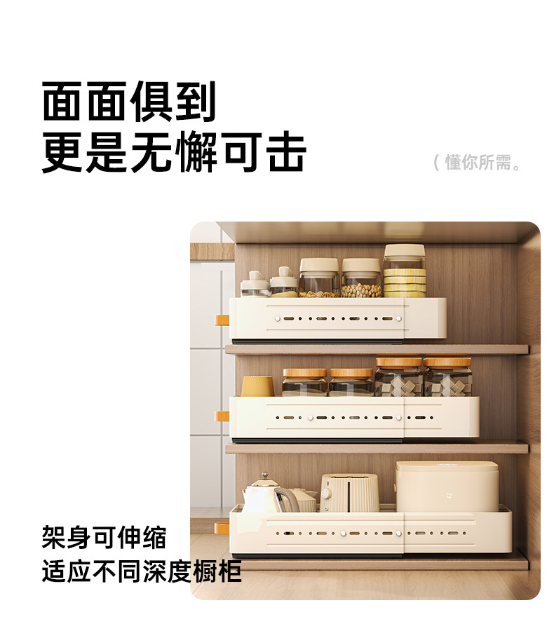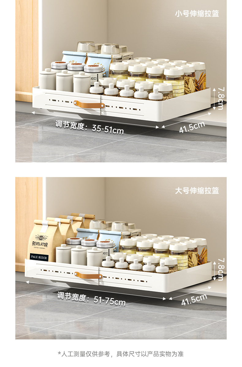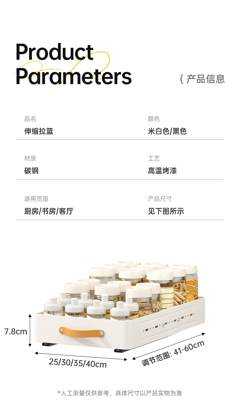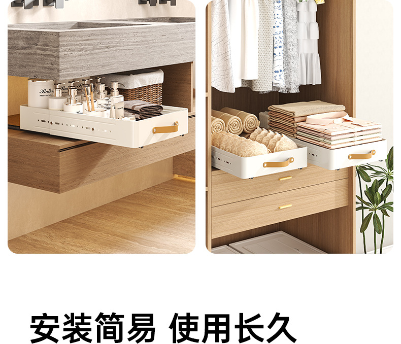 • 좌우 신축형] 유백색 수납함 41.5 깊이 51-75 폭
