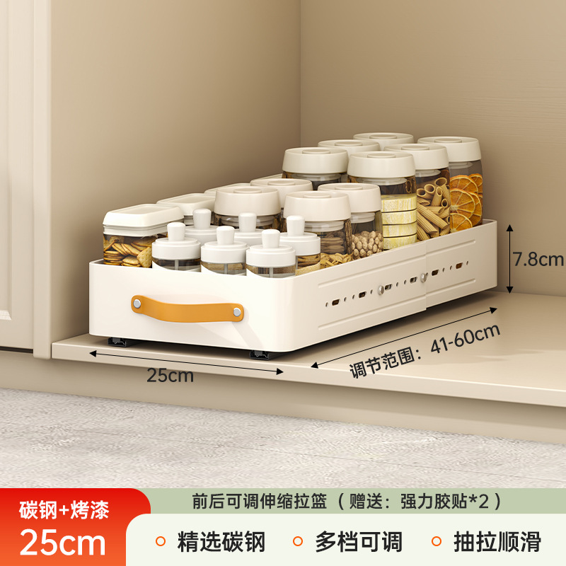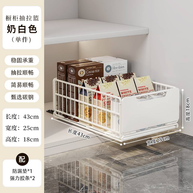 • 밀크화이트] 폭 25cm 인출식 수납바구니 - 접이식