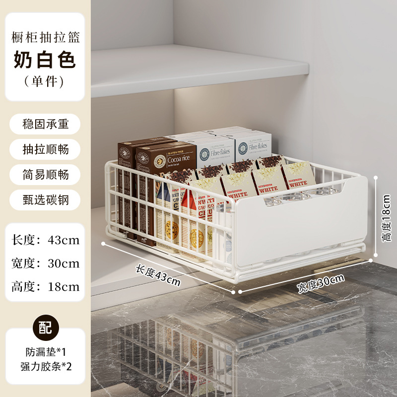 • 밀크화이트] 폭 30cm 인출식 수납바구니 - 접이식