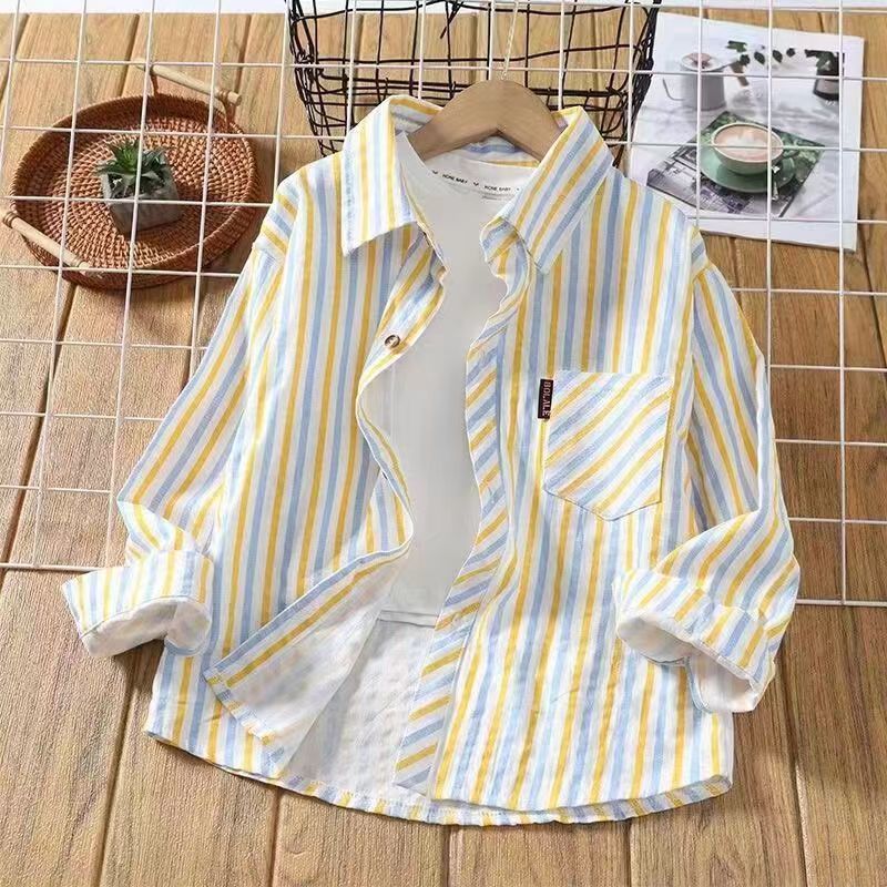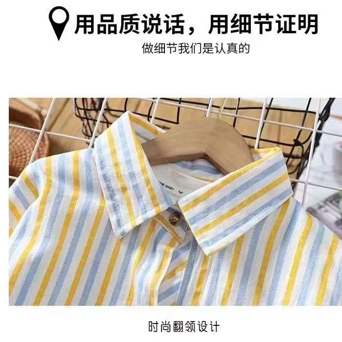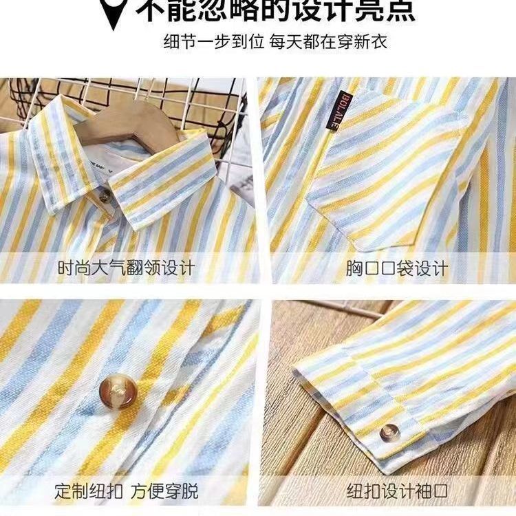 소년 셔츠 2025 새로운 여름 중대형 어린이 잘 생긴 아기 한국어 줄무늬 탑 느슨한 소년 셔츠스토어 가기