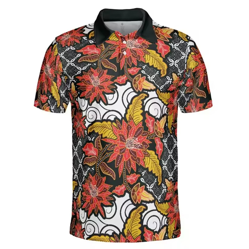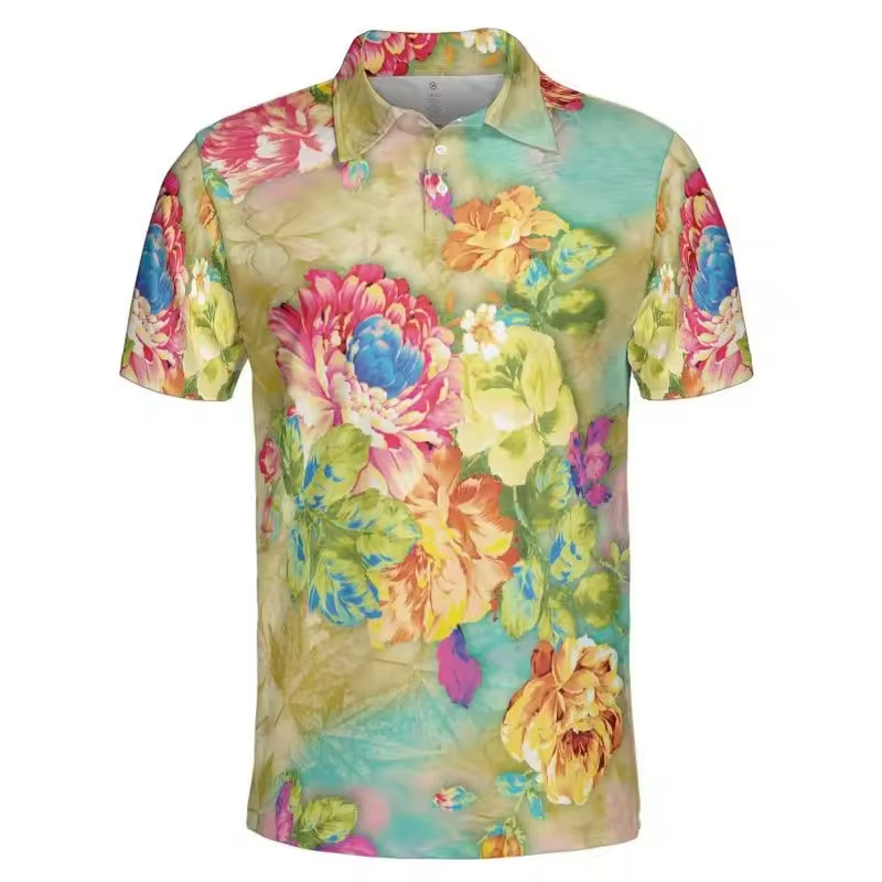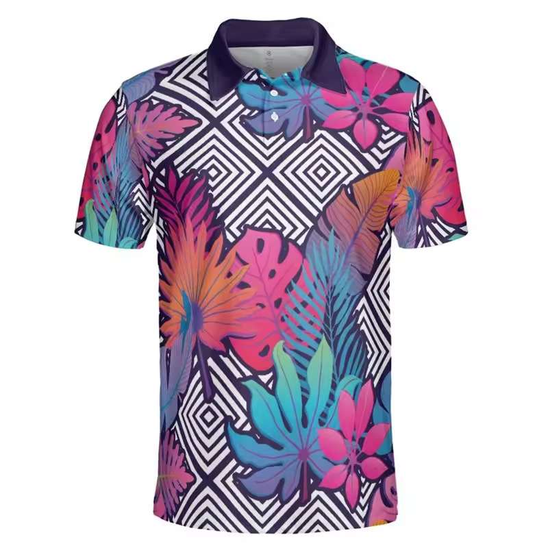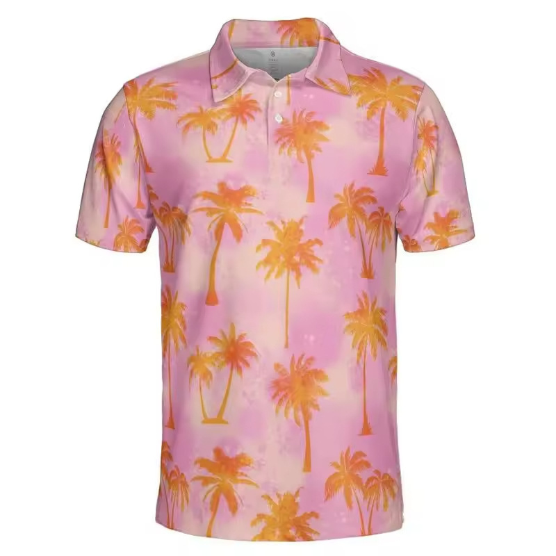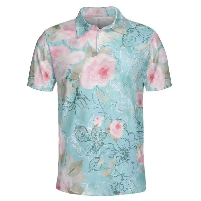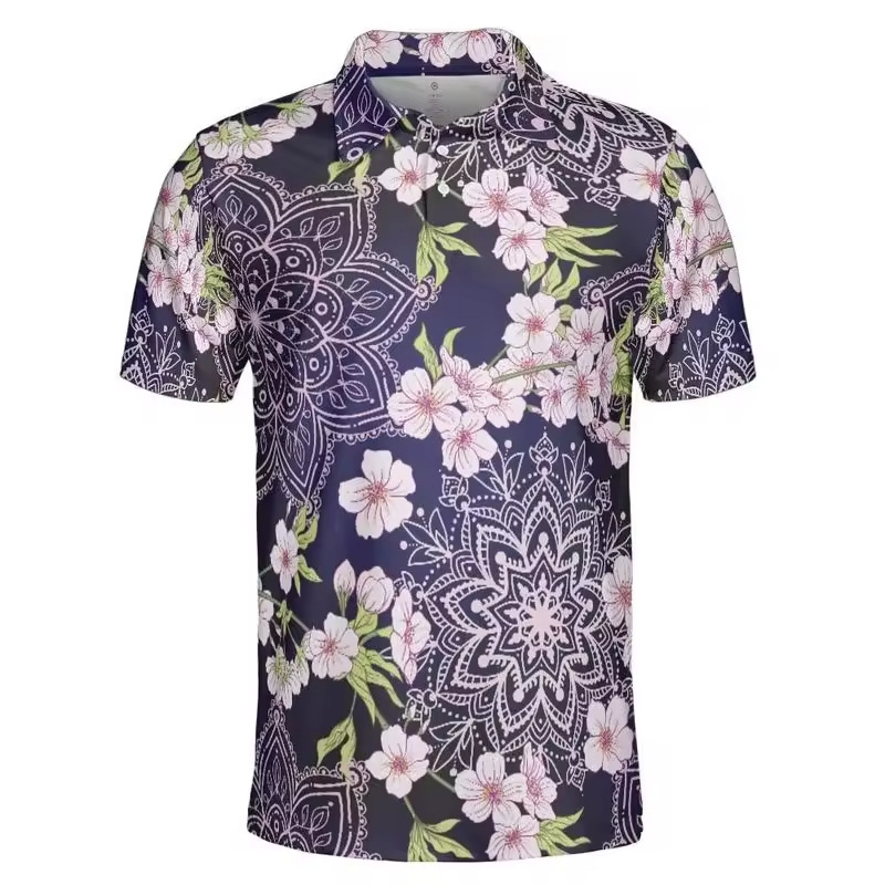 핑크 벚꽃 폴로 셔츠 남자의 야외 캐주얼 꽃 공장 인쇄 통기성 골프 셔츠 하라주쿠 유행 여름