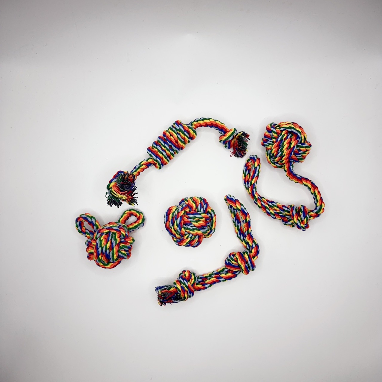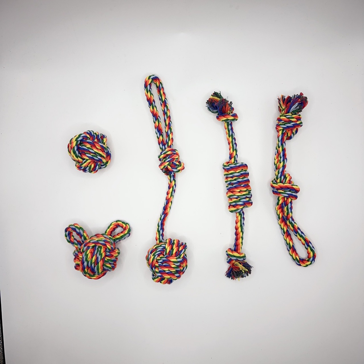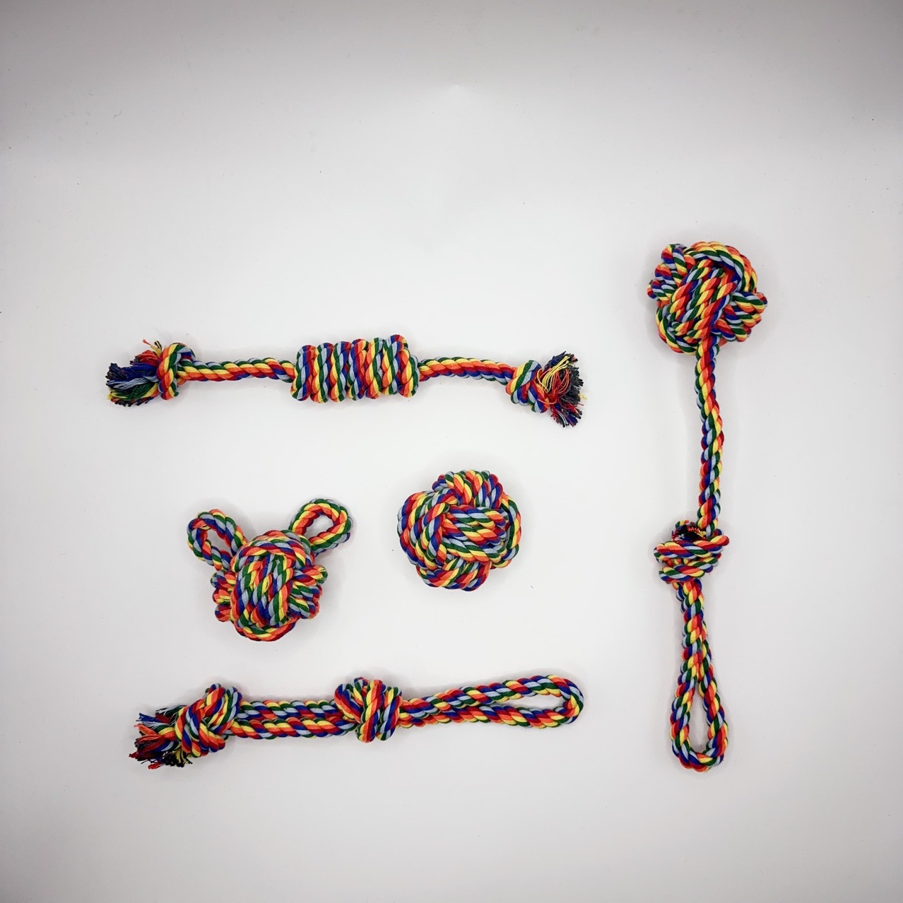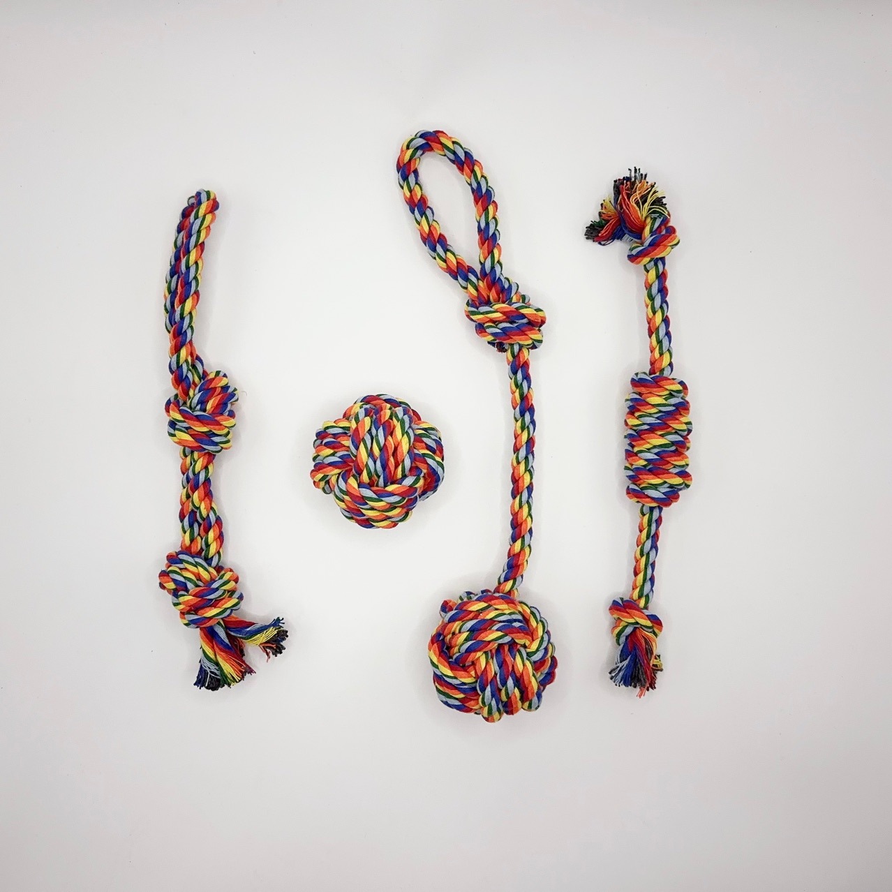애완견 장난감 무지개 삼중 로프 세트 매듭 장난감 공 지루함 해소 이갈이 방지 내구성 있는 씹기 장난감 해외 인기 상품