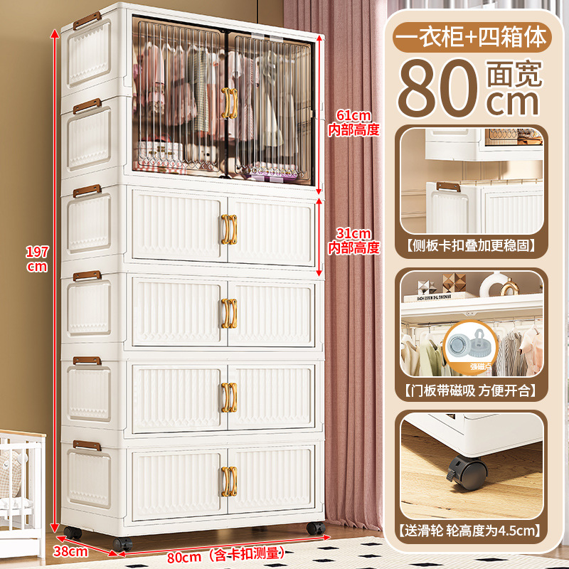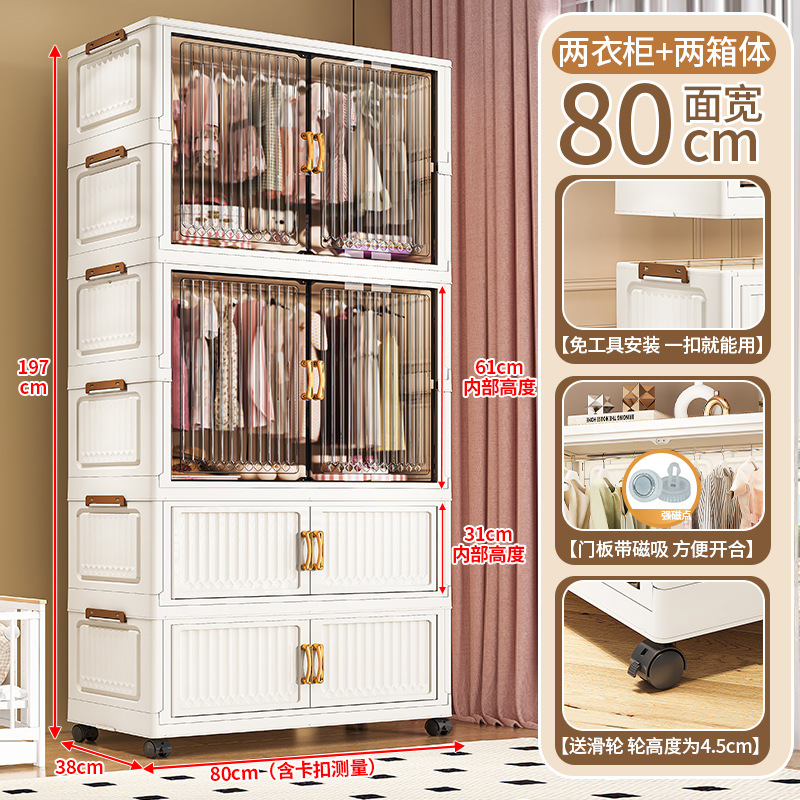 • 80CM [믹스앤매치-1 옷장 + 수납박스 4개]