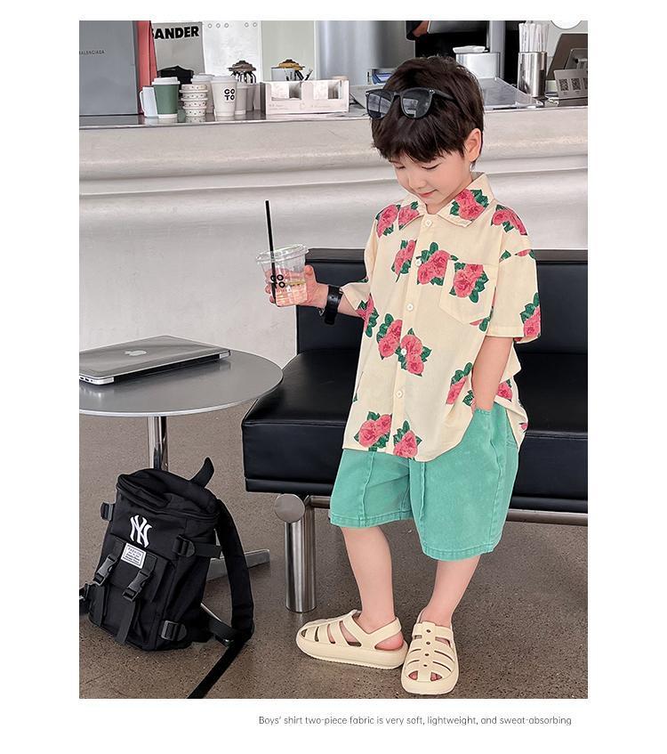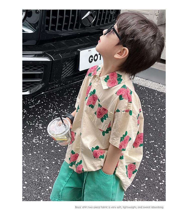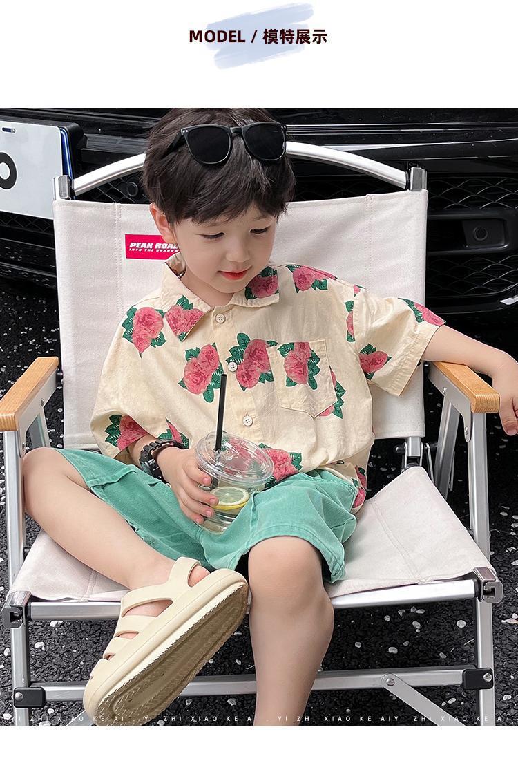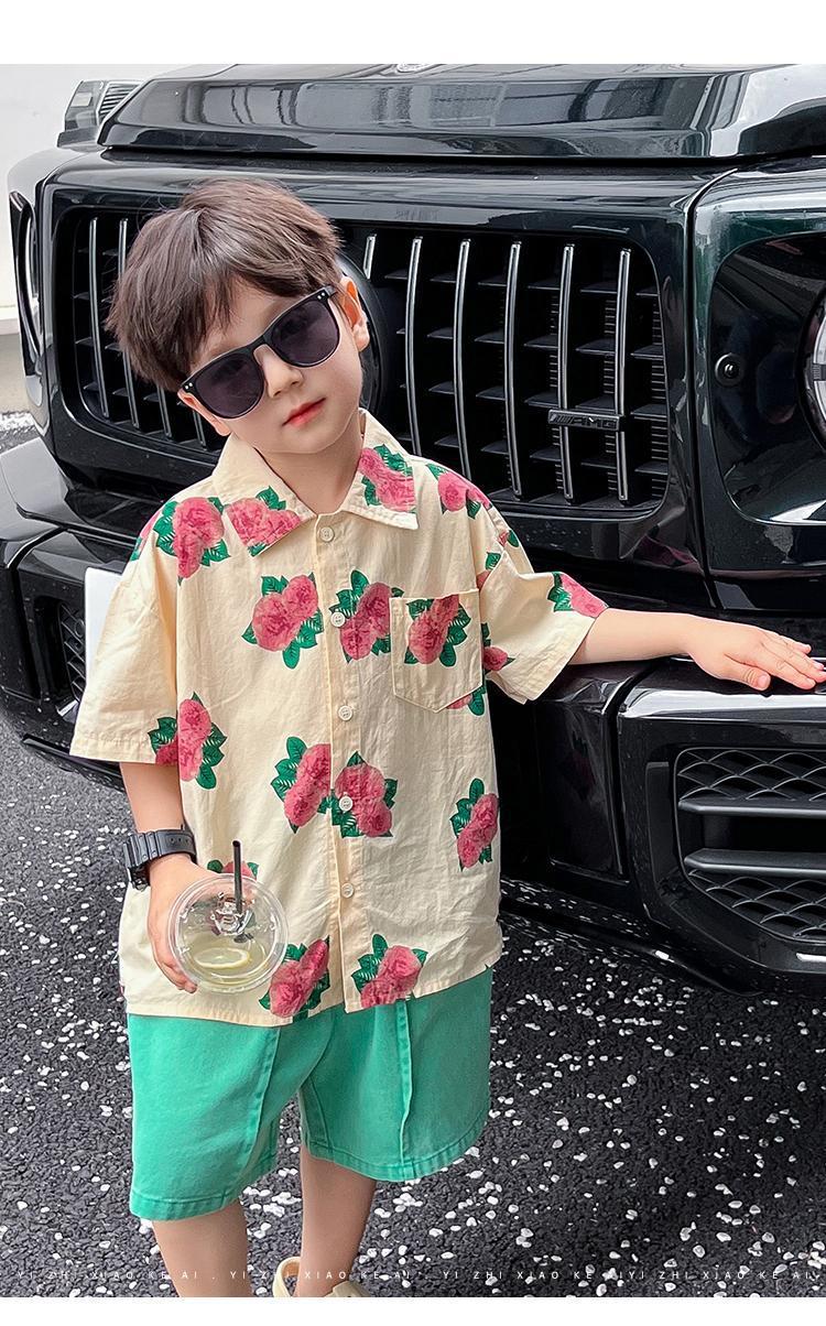 소년 셔츠 여름 셔츠 반팔 반바지 정장 잘 생긴 2025 홍콩 스타일 소년 해변스토어 가기