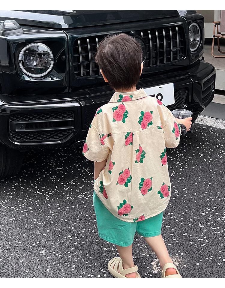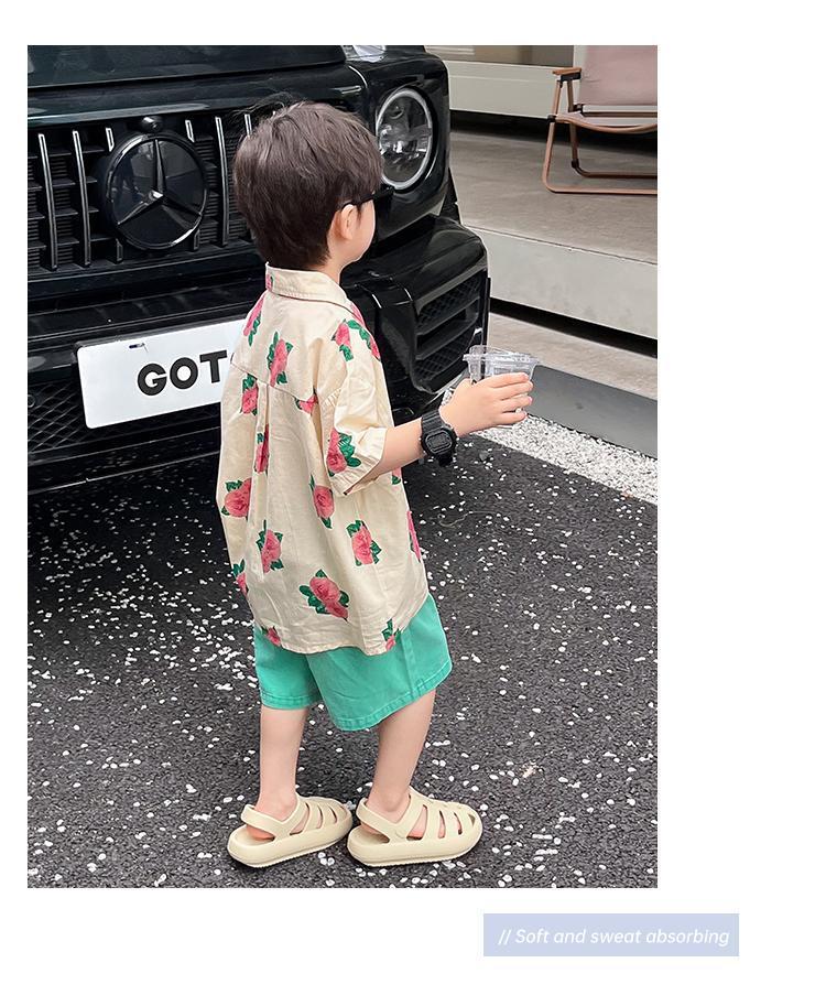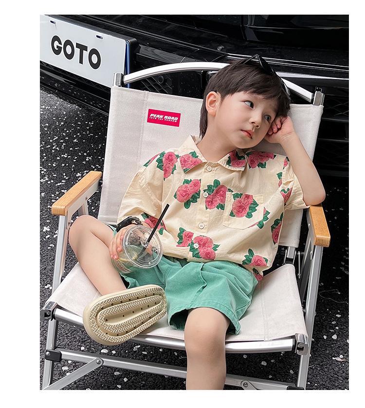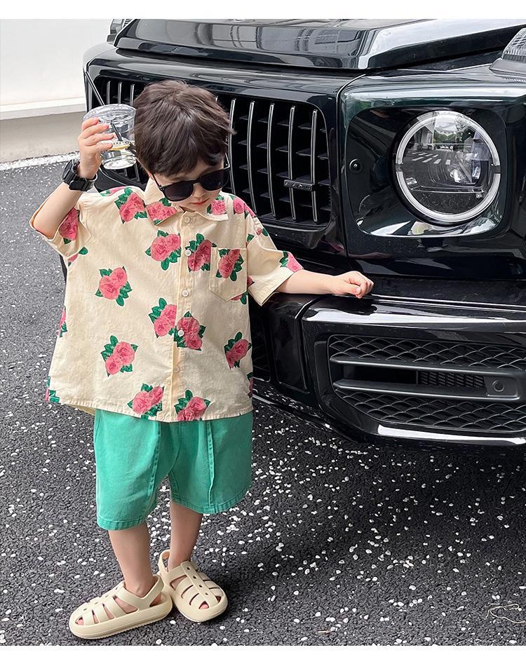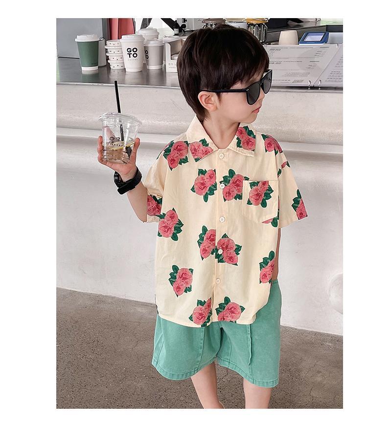 소년 셔츠 여름 셔츠 반팔 반바지 정장 잘 생긴 2025 홍콩 스타일 소년 해변스토어 가기