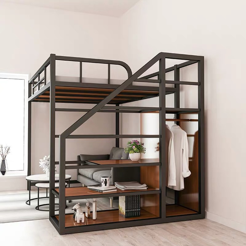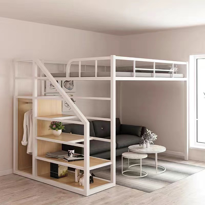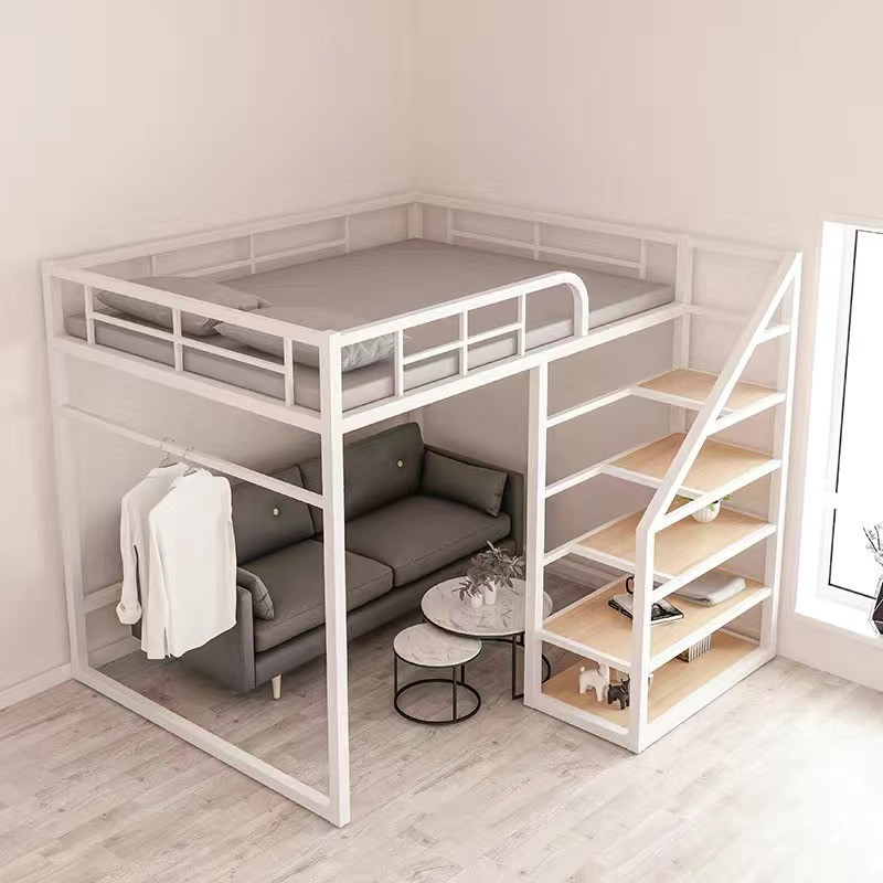 소형 복층 철제 침대, 2층 다기능 철제 침대, 2층 다락방, 공간 절약형 높은 침대, 높낮이 침대