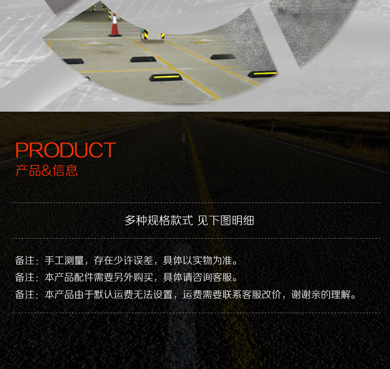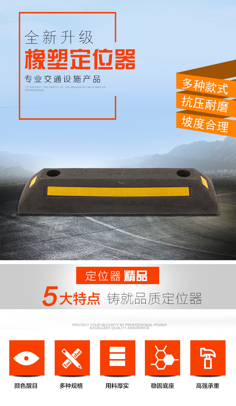 고무 및 플라스틱 차량 차단기, 주차 공간 리미터, 후진 차단기, 차고 충돌 방지 로케이터, 고무 휠 차량 차단기