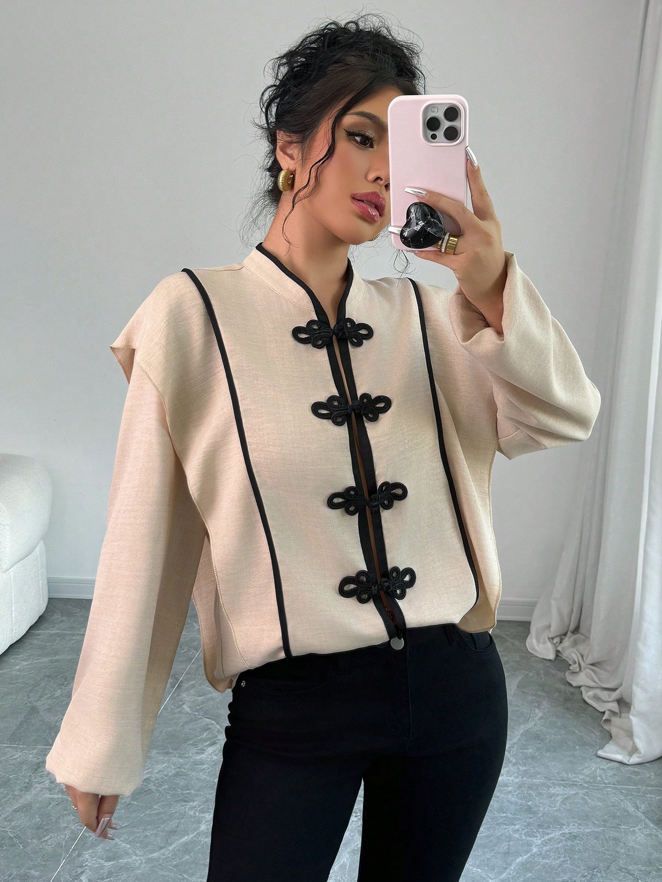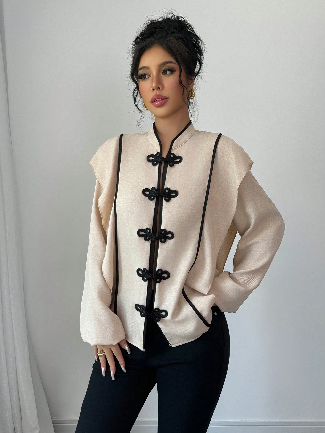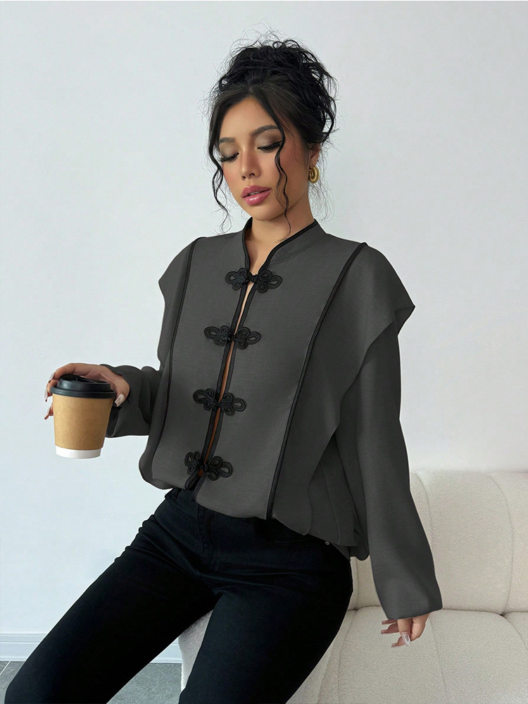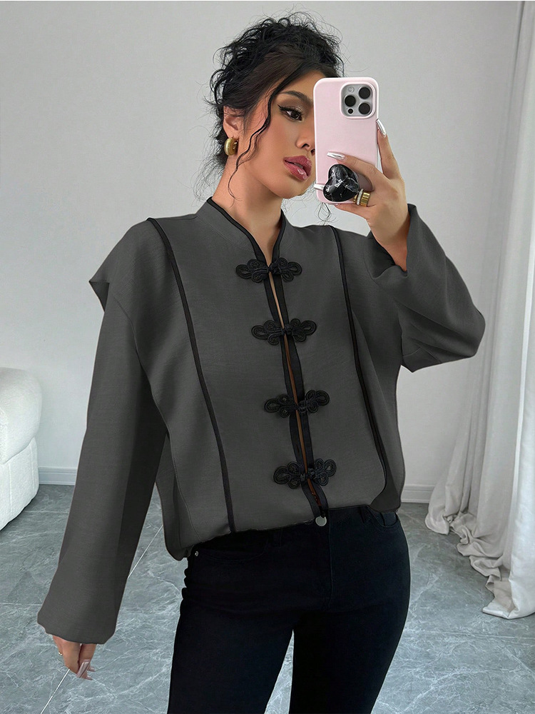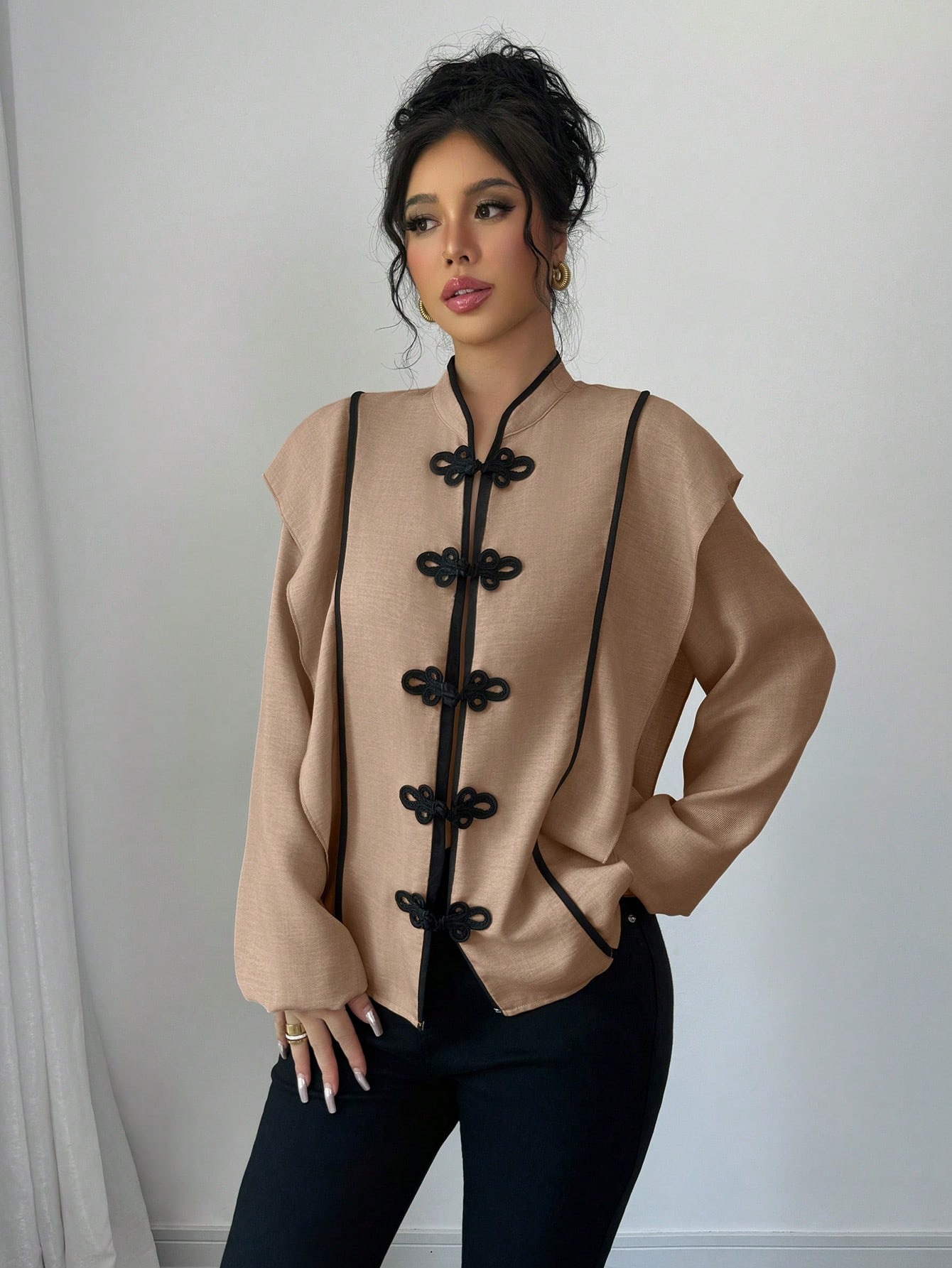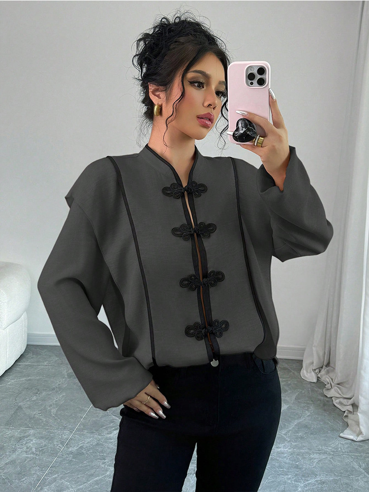 아마존 유럽 및 미국 해외배송 신상 여성 셔츠 중국식 매듭 디자인 민족풍 긴팔 상의