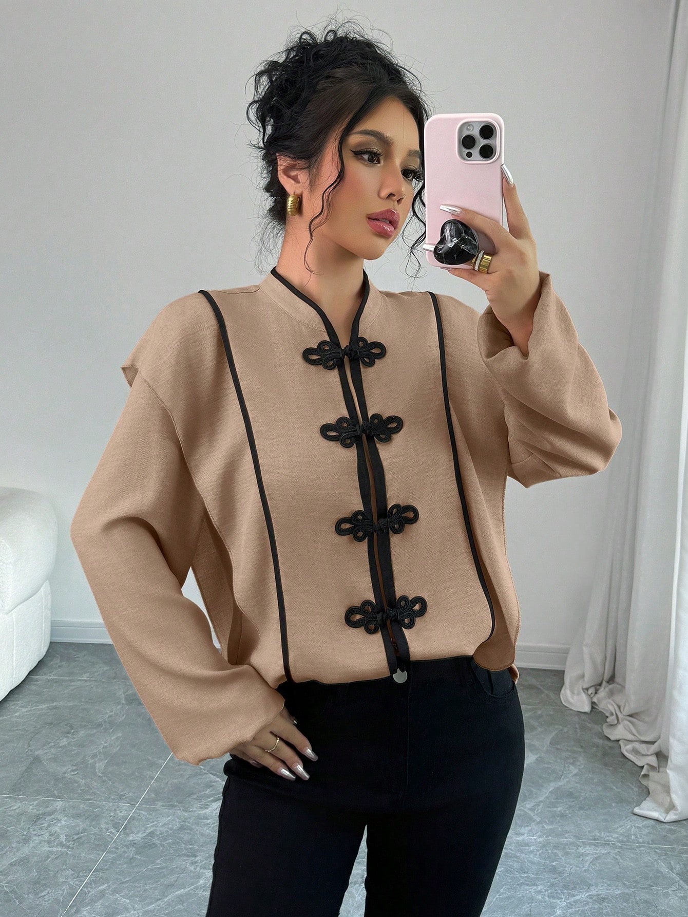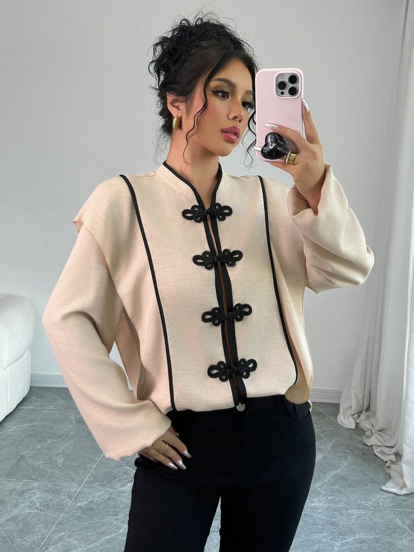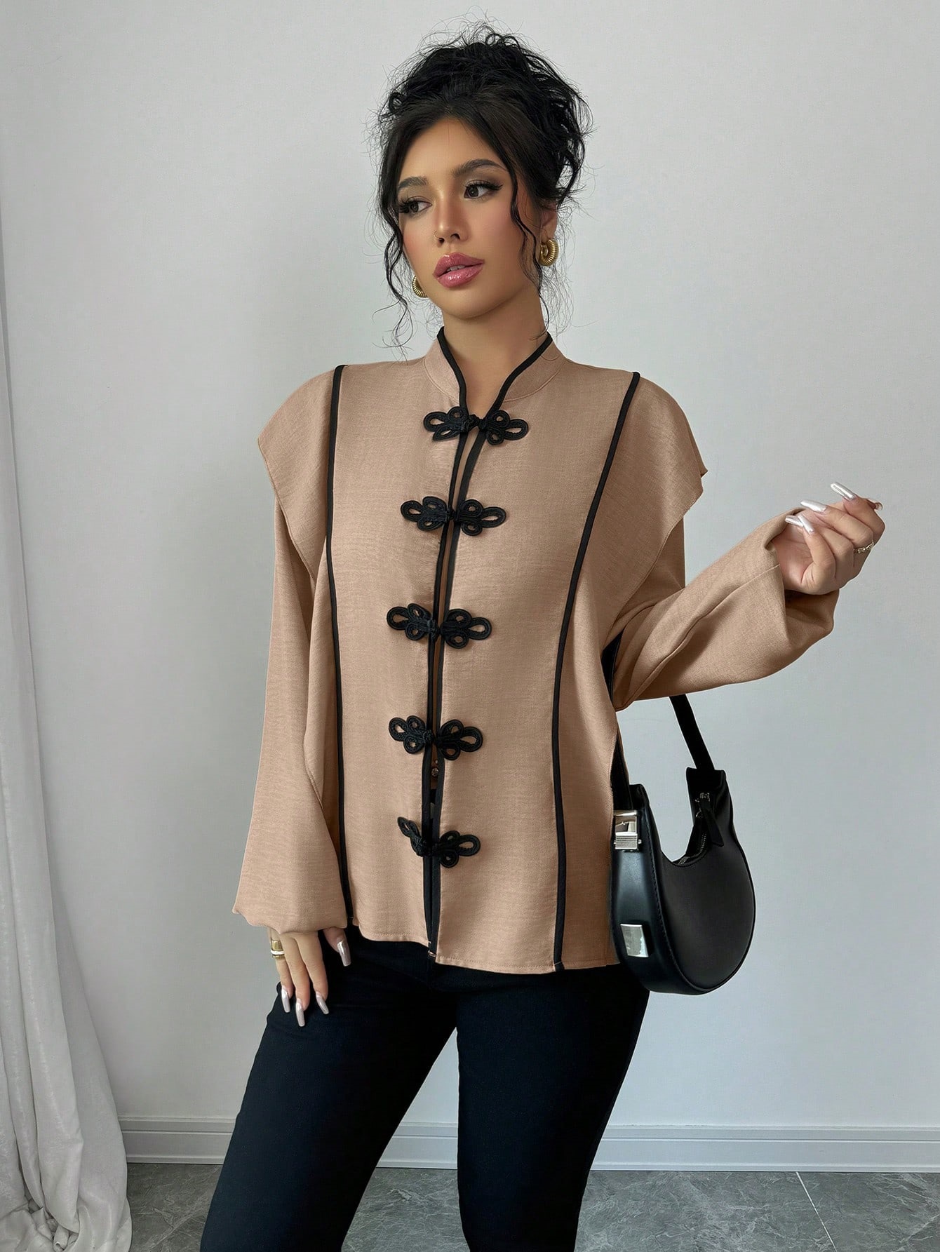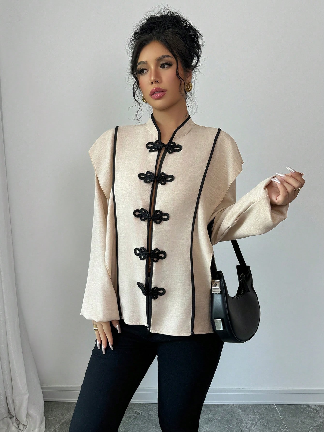 아마존 유럽 및 미국 해외배송 신상 여성 셔츠 중국식 매듭 디자인 민족풍 긴팔 상의