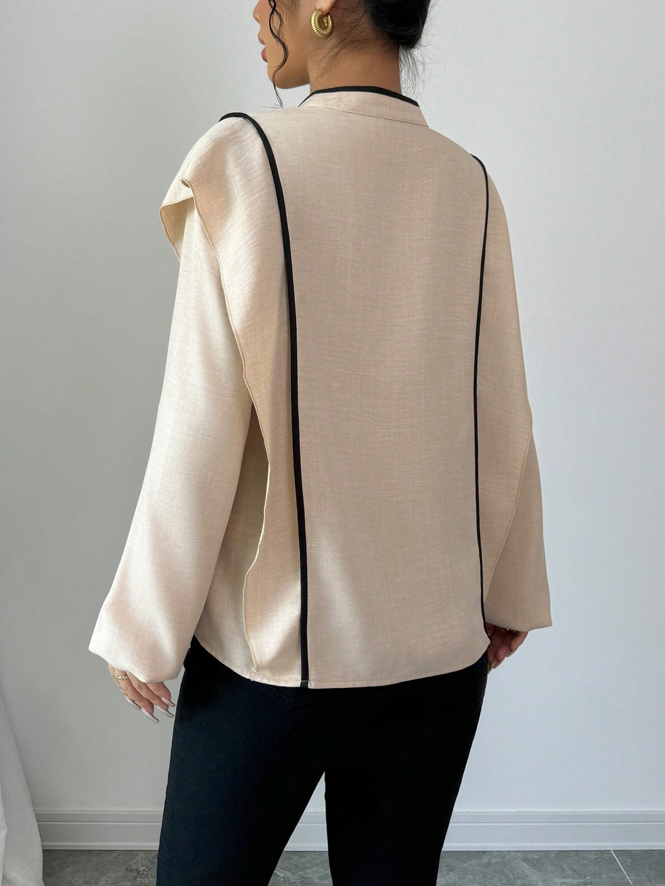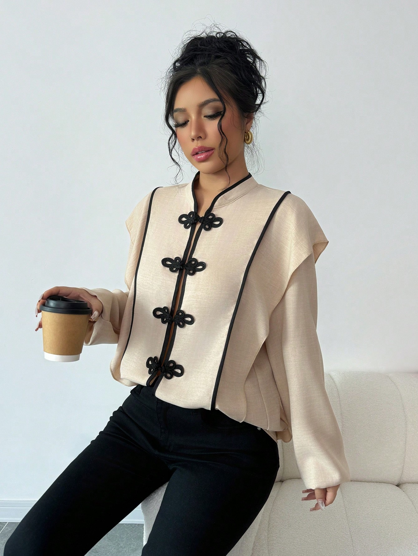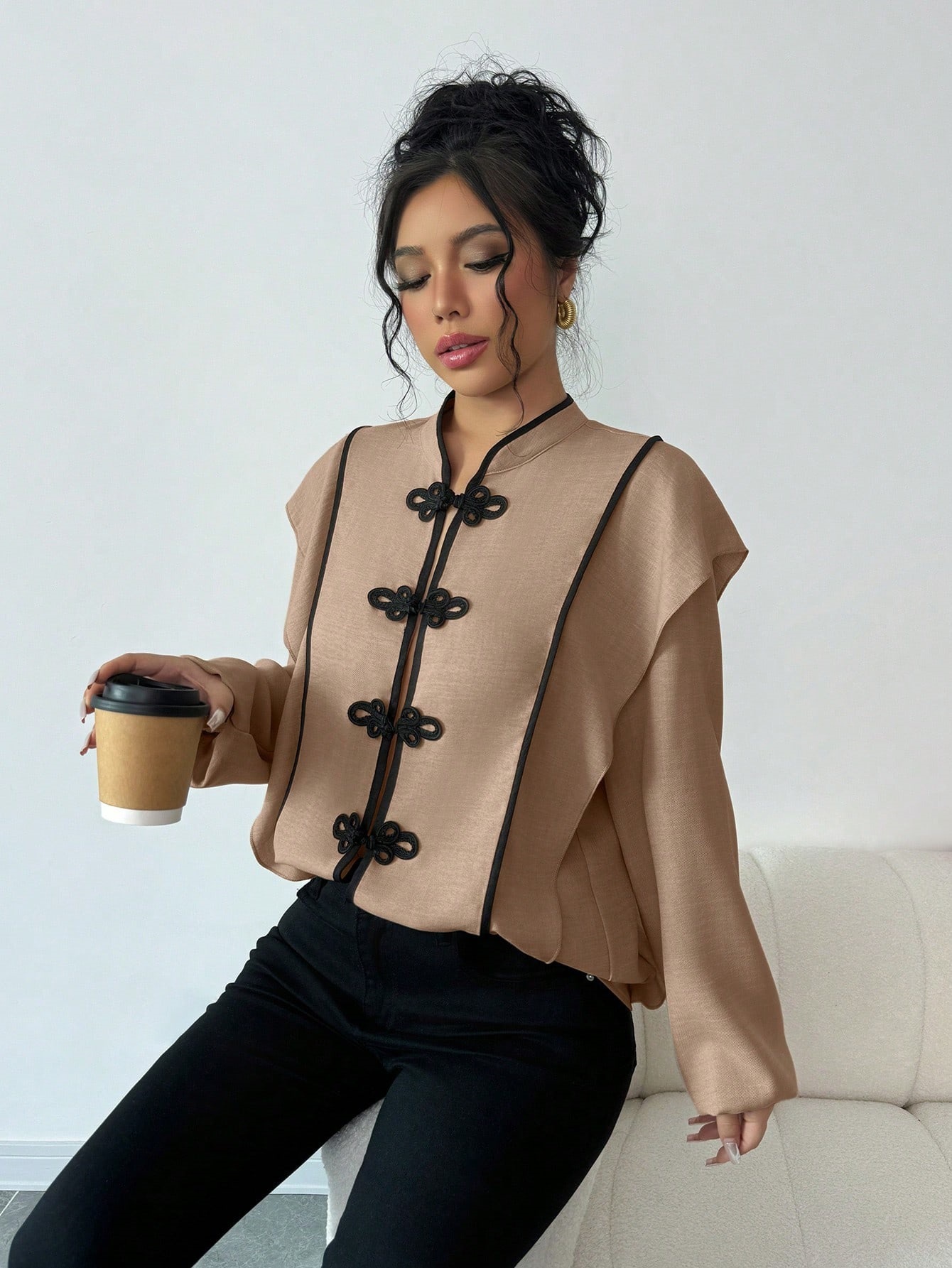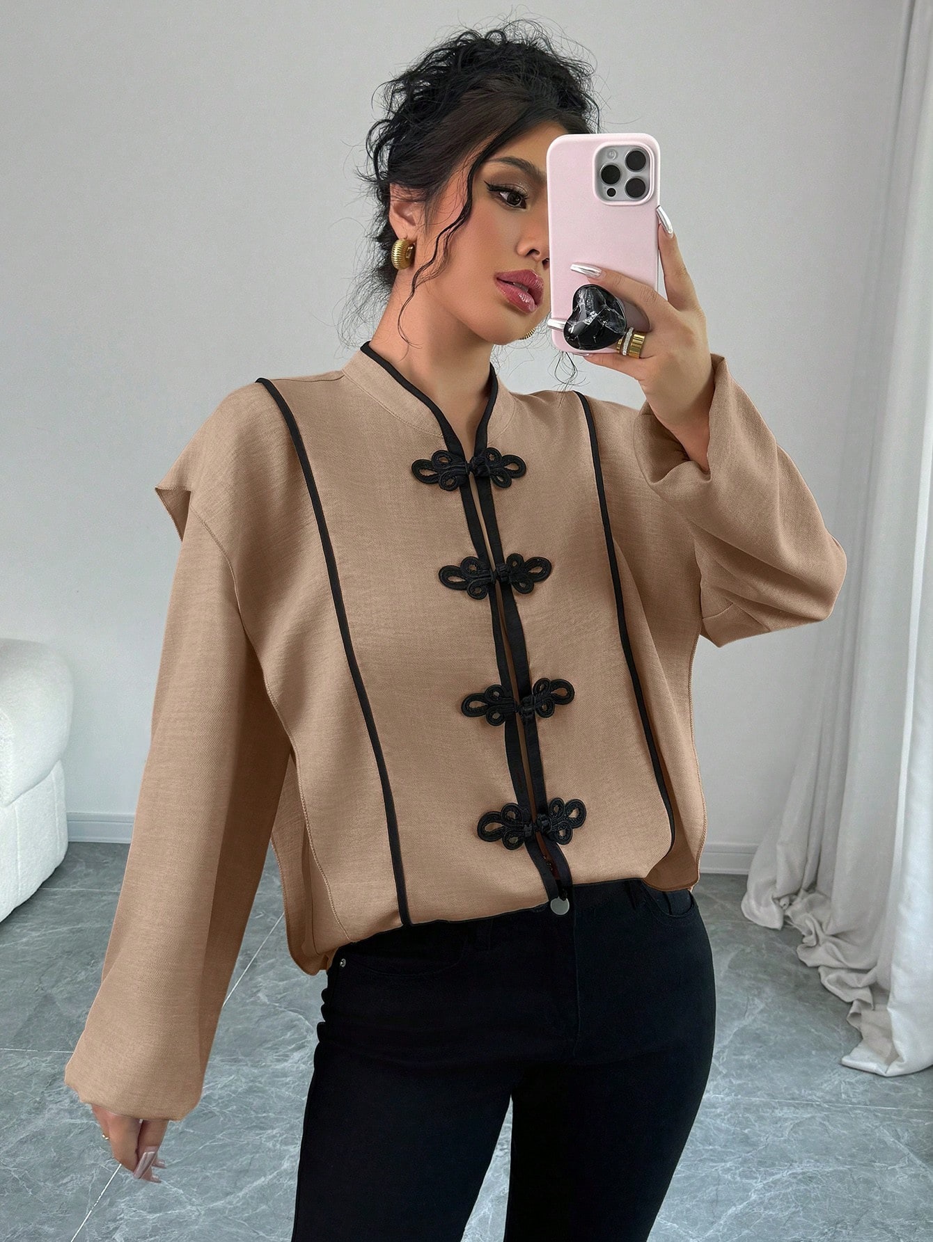 아마존 유럽 및 미국 해외배송 신상 여성 셔츠 중국식 매듭 디자인 민족풍 긴팔 상의