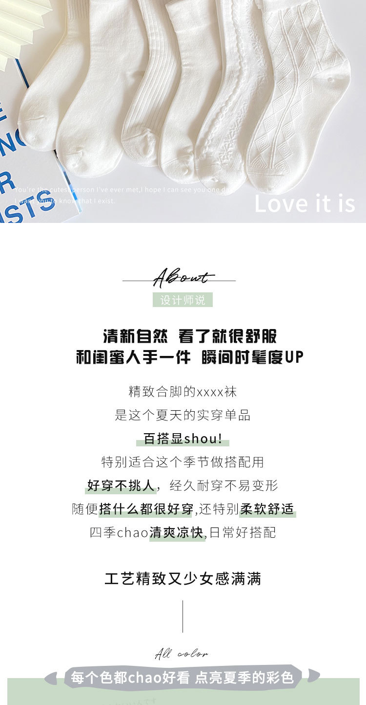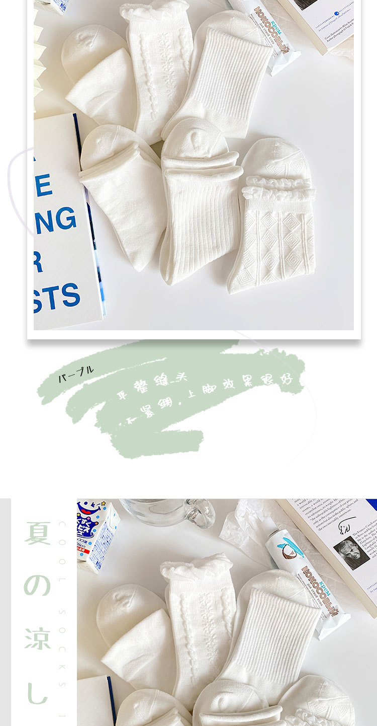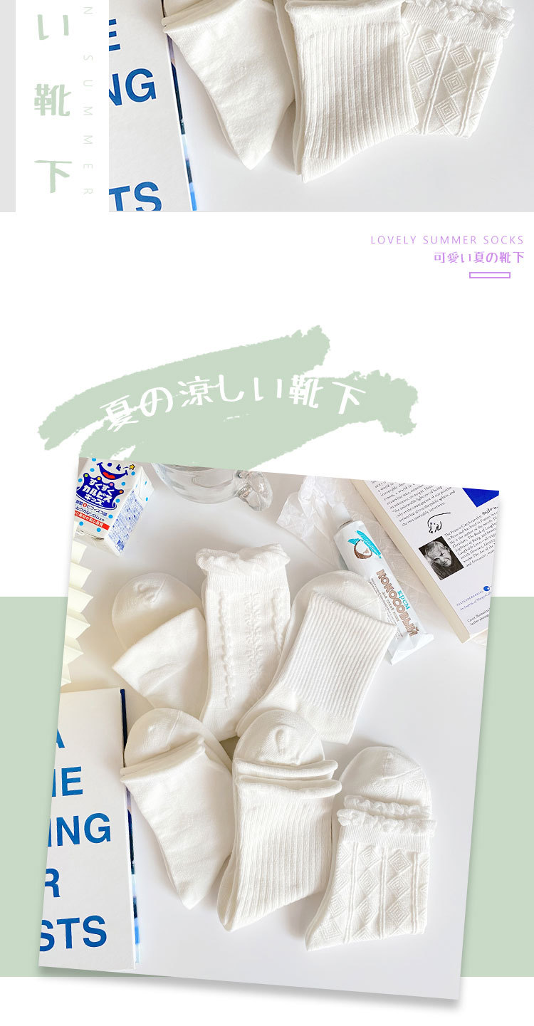 화이트 양말 여성 여름 귀여운 일본 Jk 레이스 메리 제인 작은 가죽 신발 미드 튜브 양말 여름 얇은 양말
