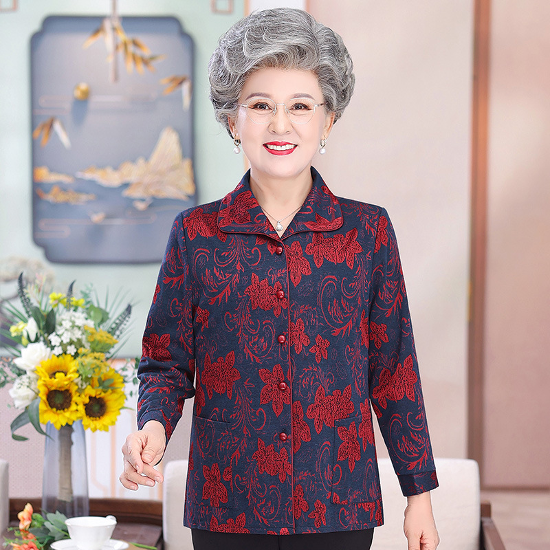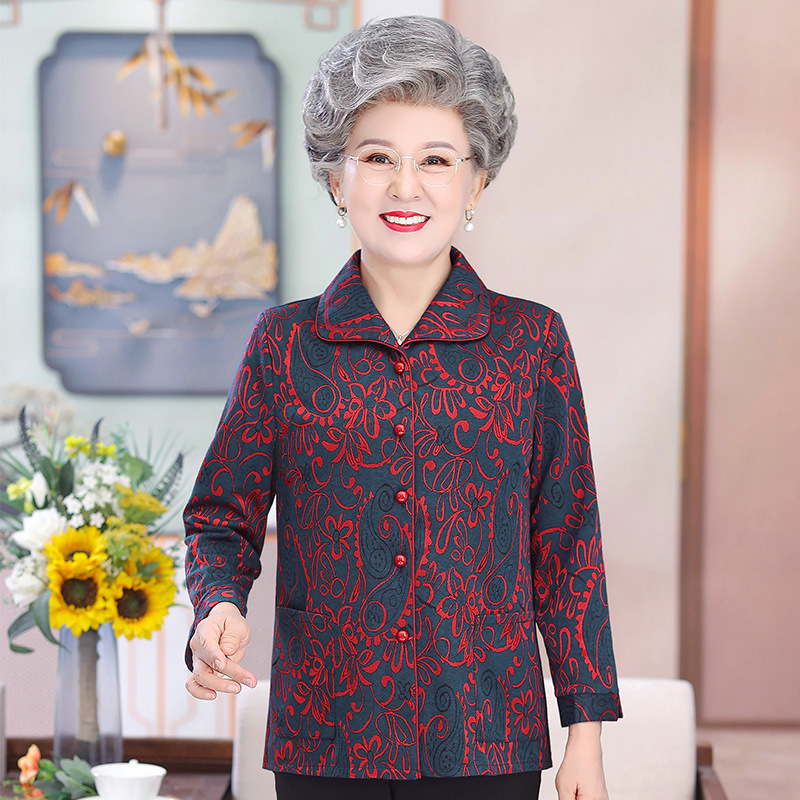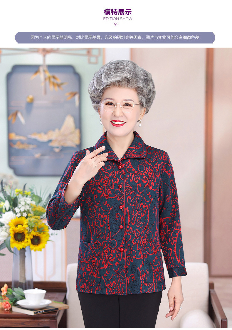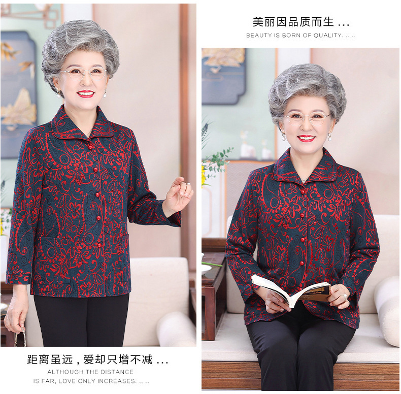 할머니 봄 긴팔 셔츠 중년 및 노인 여성 봄 여름 얇은 코트 60 세 어머니 탑 노부인 옷스토어 가기